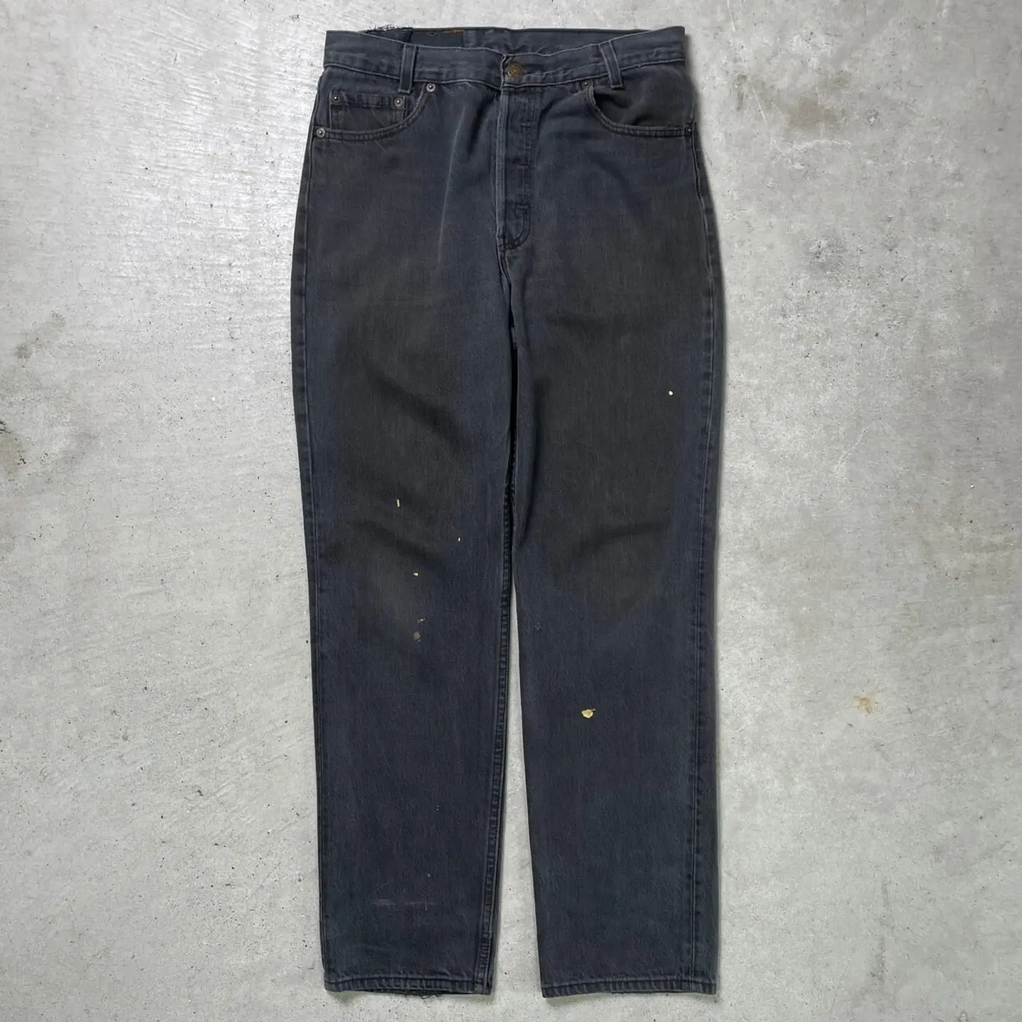 ■00年代 USA製 Levi's リーバイス 701 デニムパンツ メンズW31 古着 00s Y2K ヴィンテージ VINTAGE アメカジ 後染め 黒 グレー【デニムパンツ】/ブラック 【ブランド】Levi's リーバイス 【サイズ】表記 W31 L30 ※計測値をご確認ください。 ウエスト(平置き×2)…78 ワタリ幅…30.5 股上…28 股下…76.5 裾幅…19 【生産国】USA製 【素材】コットン100% 【状態】全体的に使用感による色あせや擦れが御座います。 フロントに数か所ペンキ汚れがあります。 右お尻ポケット、左ポケット下にダメージがあります。 画像にてご確認ください。 【c241008205】 ※古着は洗濯、検品などのケアを行っております。(新品・デッドストックは洗濯していません。) ※モニターの発色により実物と異なる場合がございます。予めご了承ください。 ※ 海外直輸入USED品になります。