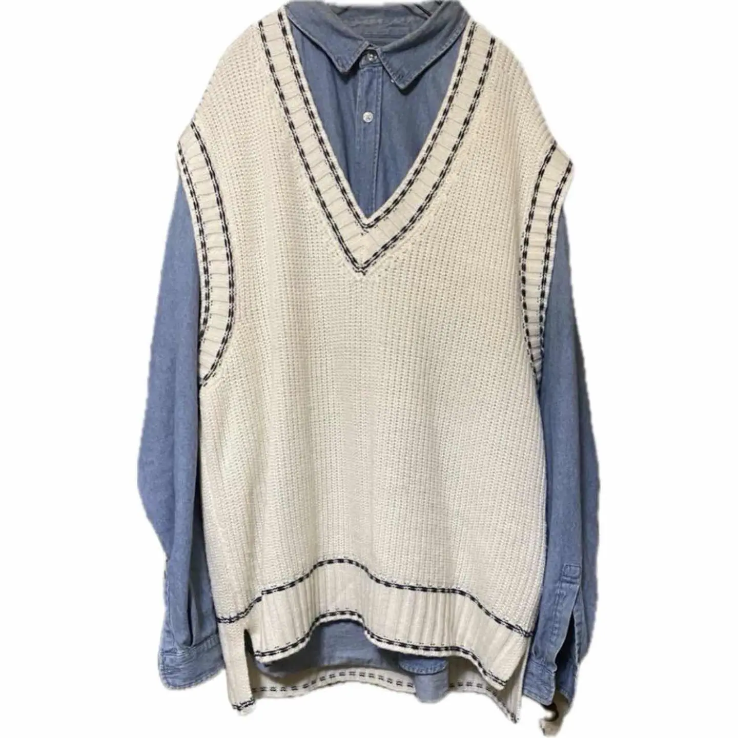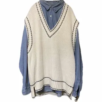 80s ビックサイズ プレッピーベスト 職人作成 1点物 美品 F 白