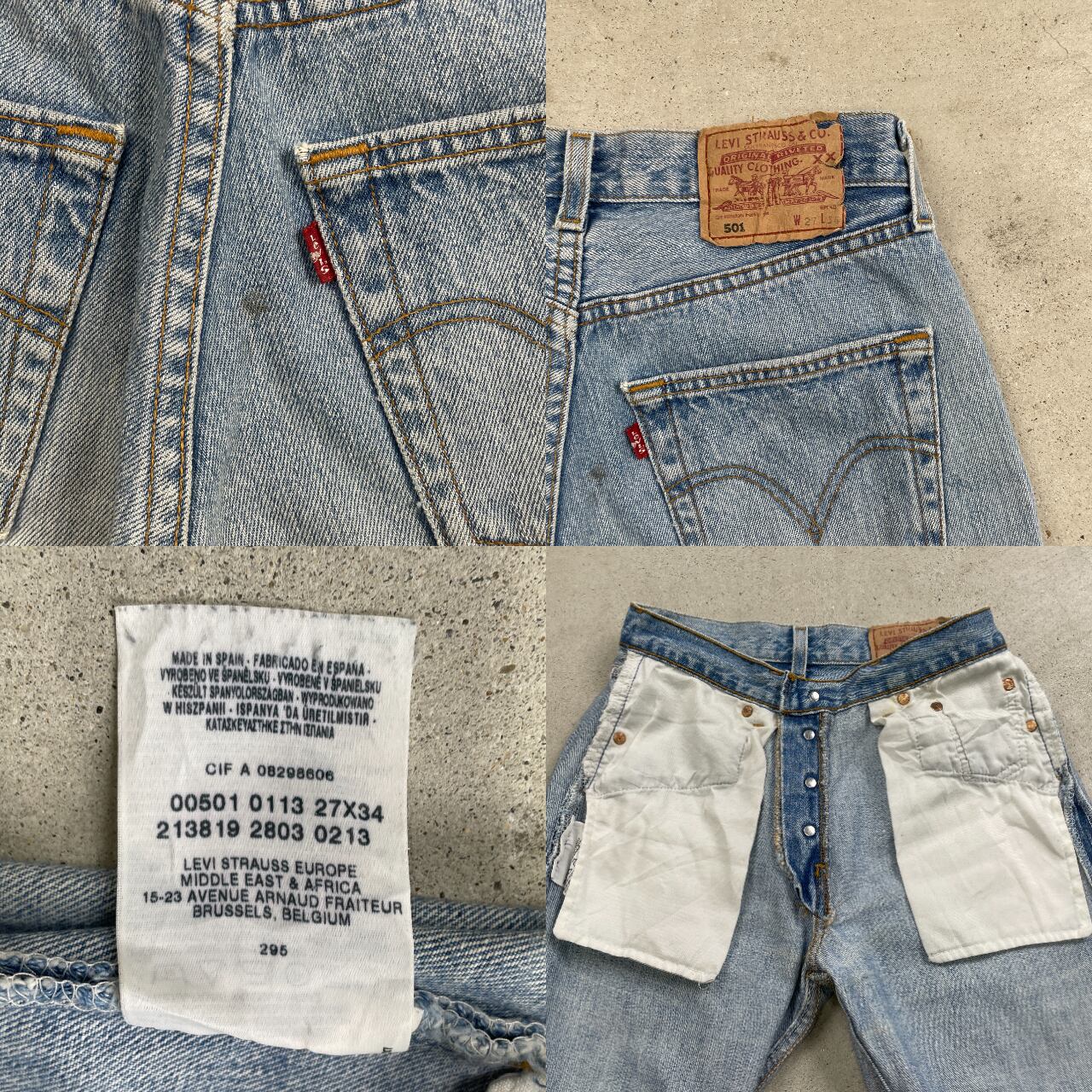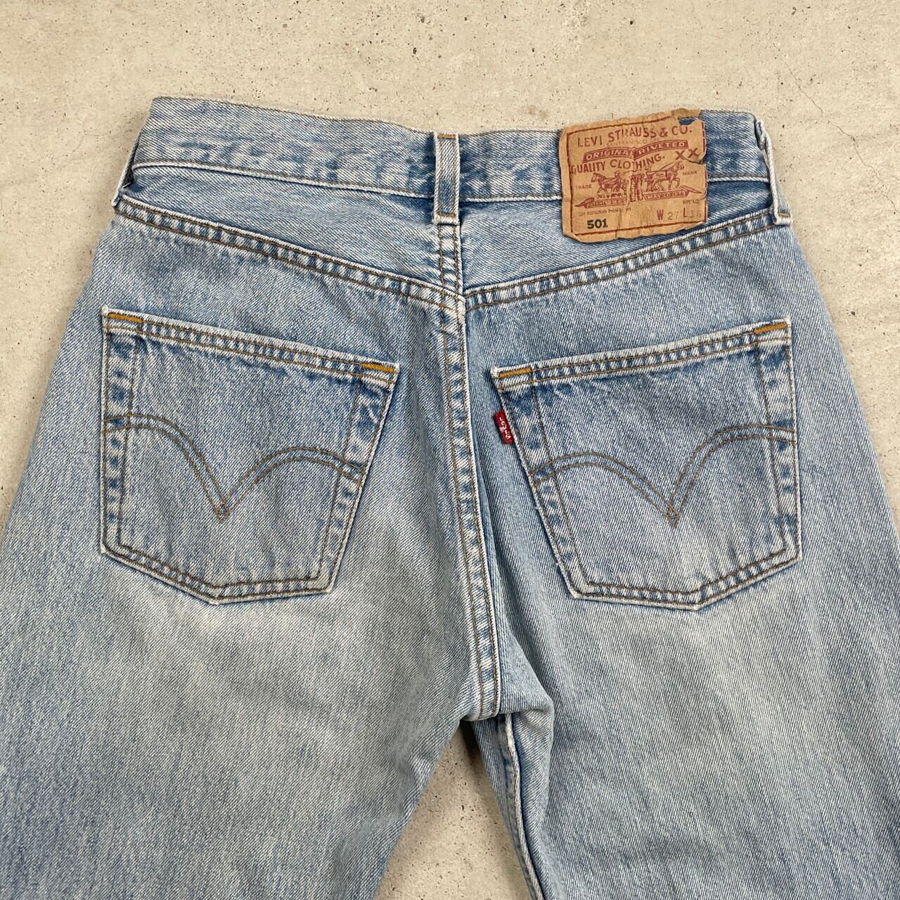 ■Levi's ユーロリーバイス 501 デニムパンツ ストレート レディースW27 メンズ 古着 アメカジ ジーンズ 青【デニムパンツ】/ブルー 【ブランド】Levi's リーバイス 【サイズ】表記 27×34 ※計測値をご確認ください。 ウエスト(平置き×2)…66 ワタリ幅…28 股上…25.5 股下…84 裾幅...19 【生産国】スペイン製 【素材】コットン100% 【状態】全体的にシミや汚れが御座います。 また色あせや擦れが御座います。 画像にてご確認ください。 【c240927102】 ※古着は洗濯、検品などのケアを行っております。(新品・デッドストックは洗濯していません。) ※モニターの発色により実物と異なる場合がございます。予めご了承ください。 ※ 海外直輸入USED品になります。