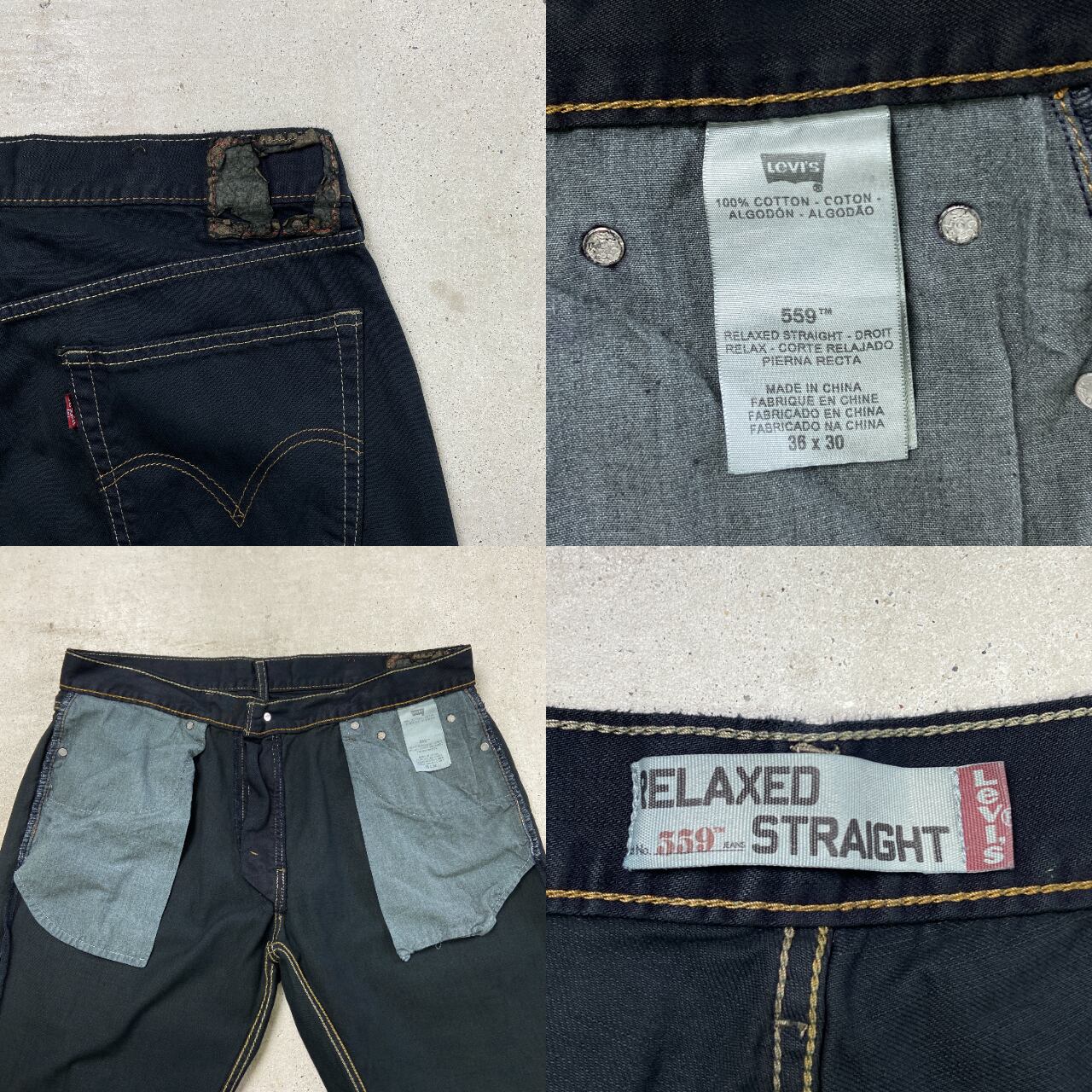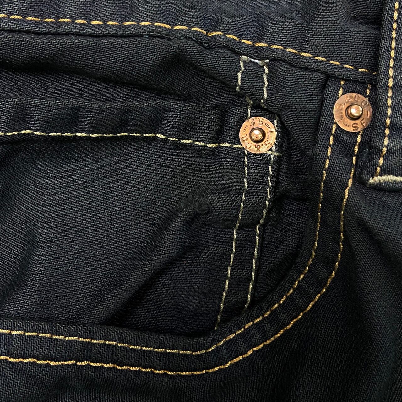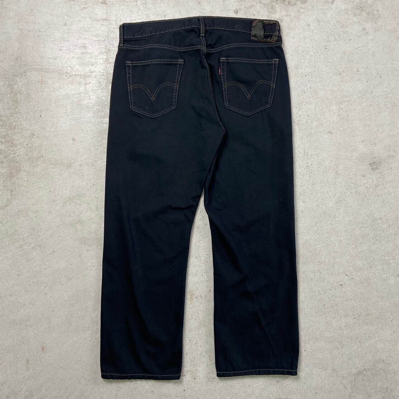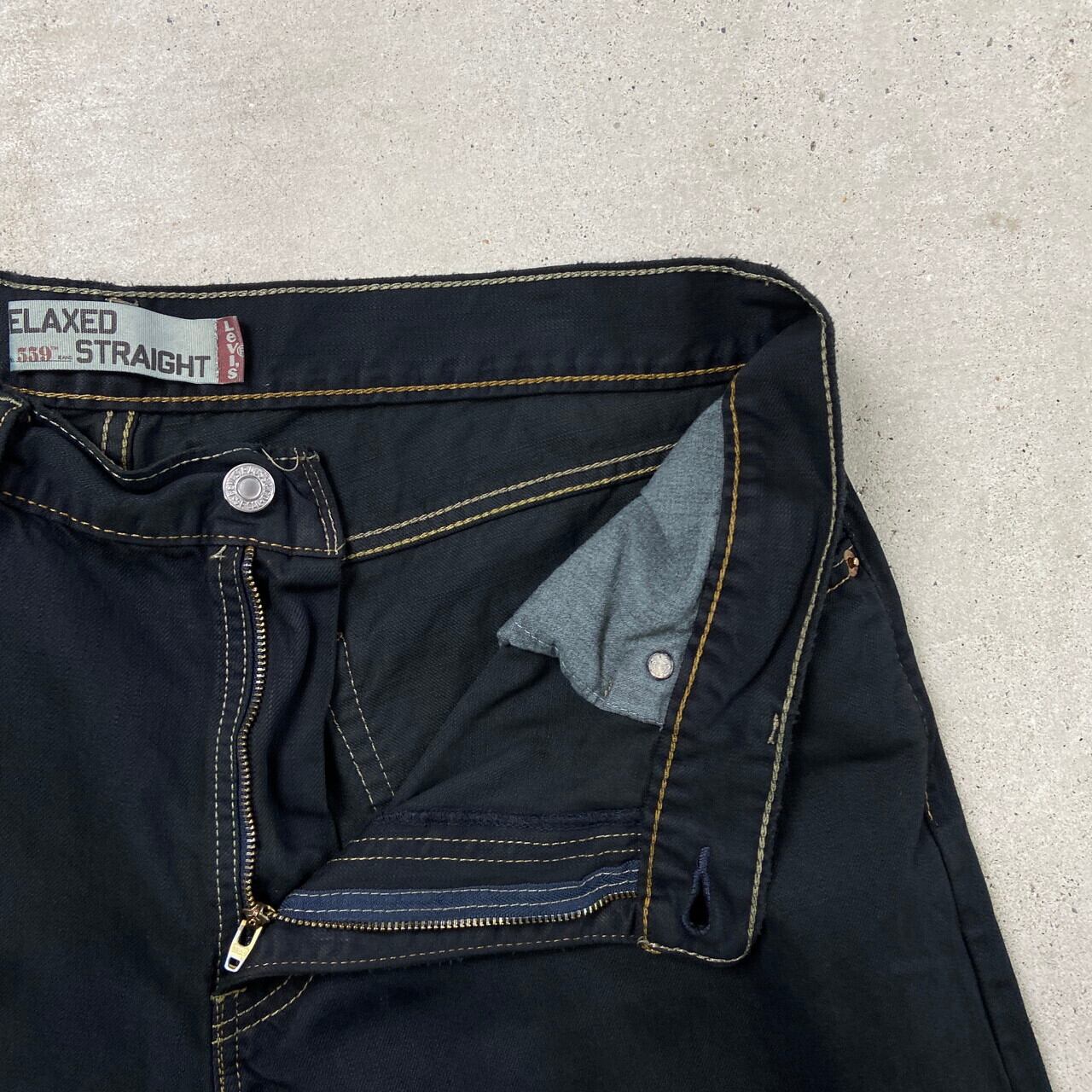■Levi's リーバイス 559 ブラックデニムパンツ ワイドストレート 後染め RELAXED STRAIGHT メンズW36 古着 Y2K ヴィンテージ VINTAGE ジーンズ 黒染め ワイドデニム 黒色【デニムパンツ】/ブラック ◎シルバータブのLOOSEに近い 程よくバギーした太ストレートシルエット 価格的にシルバータブよりも買いやすく、 緩く履けるデニムをお探しの方にピッタリのモデル こちらはブラックに後染めを施しており、 古着で探すとなかなか無い太く履けるブラックデニムにカスタムしました 染まらずにに浮かび上がったステッチもポイントです 【ブランド】Levi's リーバイス ボタン裏刻印:4102 【サイズ】表記 W36 L30 ※計測値をご確認ください。 ウエスト(平置き×2)…90 ワタリ幅…33 股上…28 股下…72 裾幅…22.5 【生産国】中国製 【素材】コットン100% 【状態】コインポケットや裾に擦れが御座います。 画像にてご確認ください。 【c240927073】 ※古着は洗濯、検品などのケアを行っております。(新品・デッドストックは洗濯していません。) ※モニターの発色により実物と異なる場合がございます。予めご了承ください。 ※ 海外直輸入USED品になります。