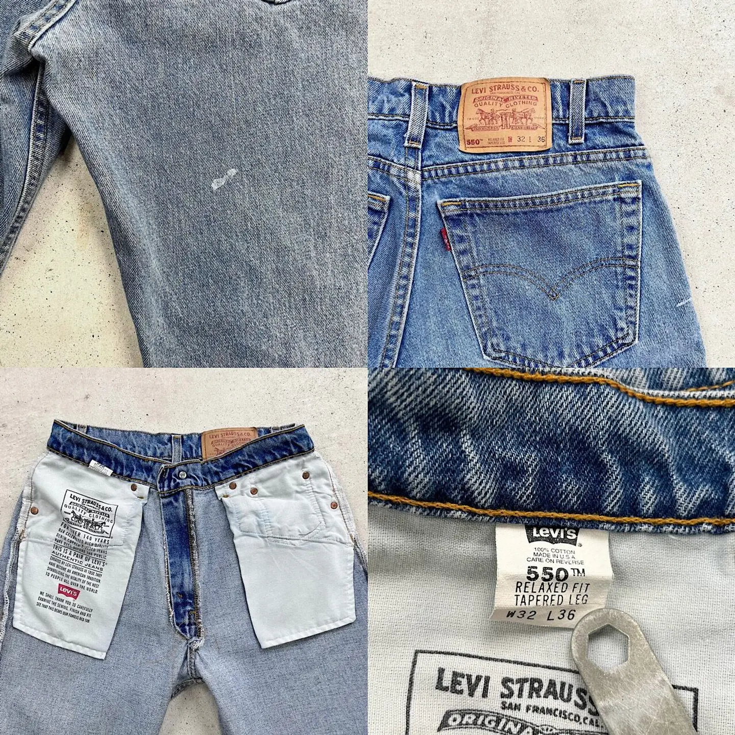 ■90年代 USA製 Levi's リーバイス 550 ワイドデニムパンツ メンズW32 古着 90s ヴィンテージ VINTAGE アメカジ RELAXED FIT テーパード ルーズデニム バギーデニム 【デニムパンツ】/ブルー 【ブランド】Levi's リーバイス ボタン裏刻印:525 【サイズ】表記 W32 L36 ※計測値をご確認ください。 ウエスト(平置き×2)…80 ワタリ幅…34.5 股上…30.5 股下…91 裾幅…18.5 【生産国】USA製 【素材】コットン100% 【状態】数ヶ所薄汚れ、ペンキ飛び等の使用感がございます。 画像にてご確認ください。 【c240927031】 ※古着は洗濯、検品などのケアを行っております。(新品・デッドストックは洗濯していません。) ※モニターの発色により実物と異なる場合がございます。予めご了承ください。 ※ 海外直輸入USED品になります。