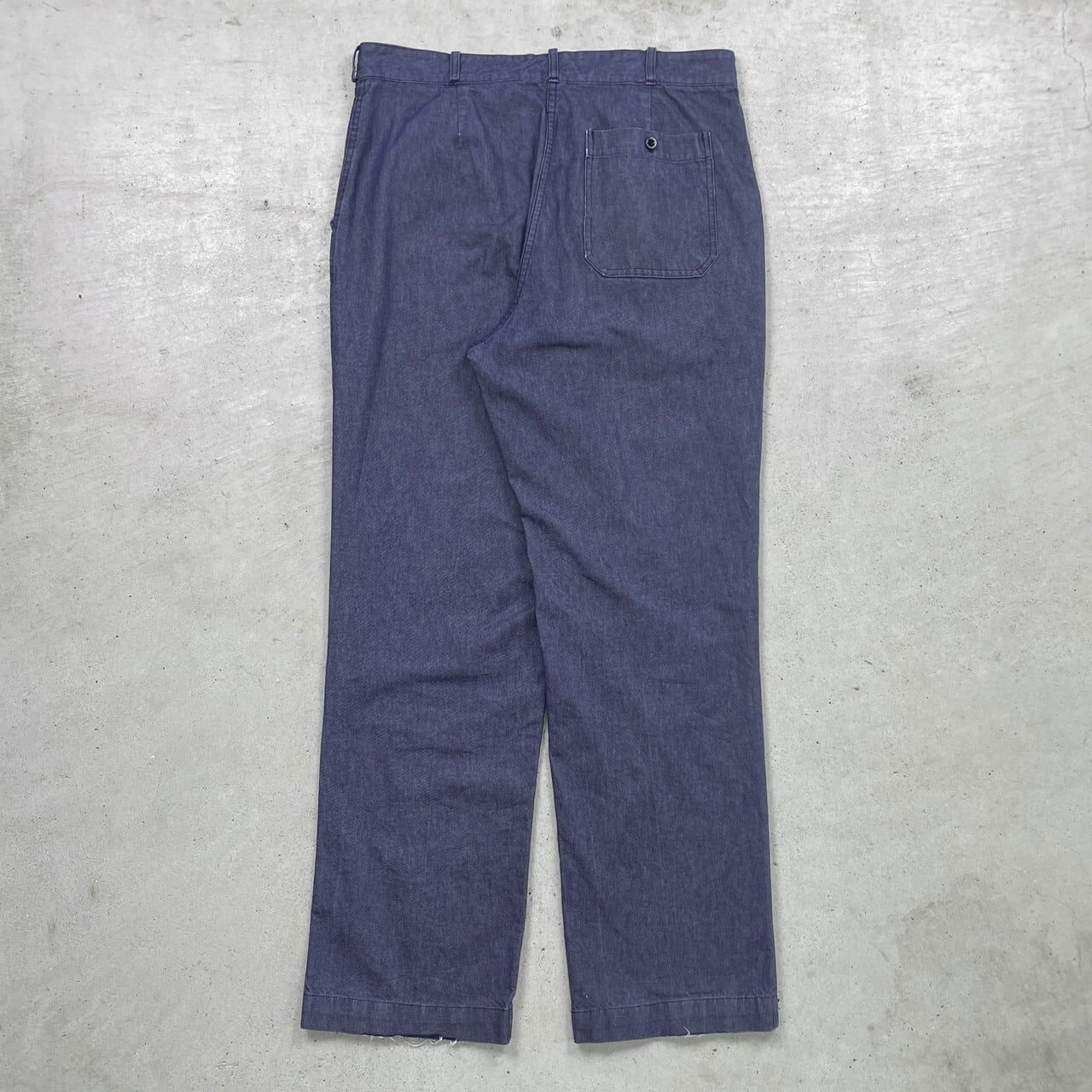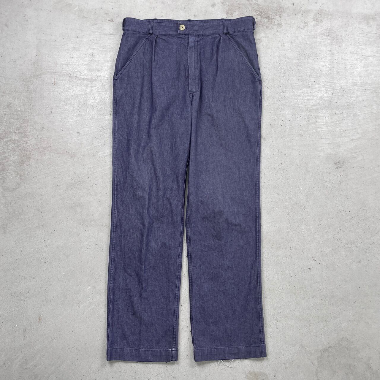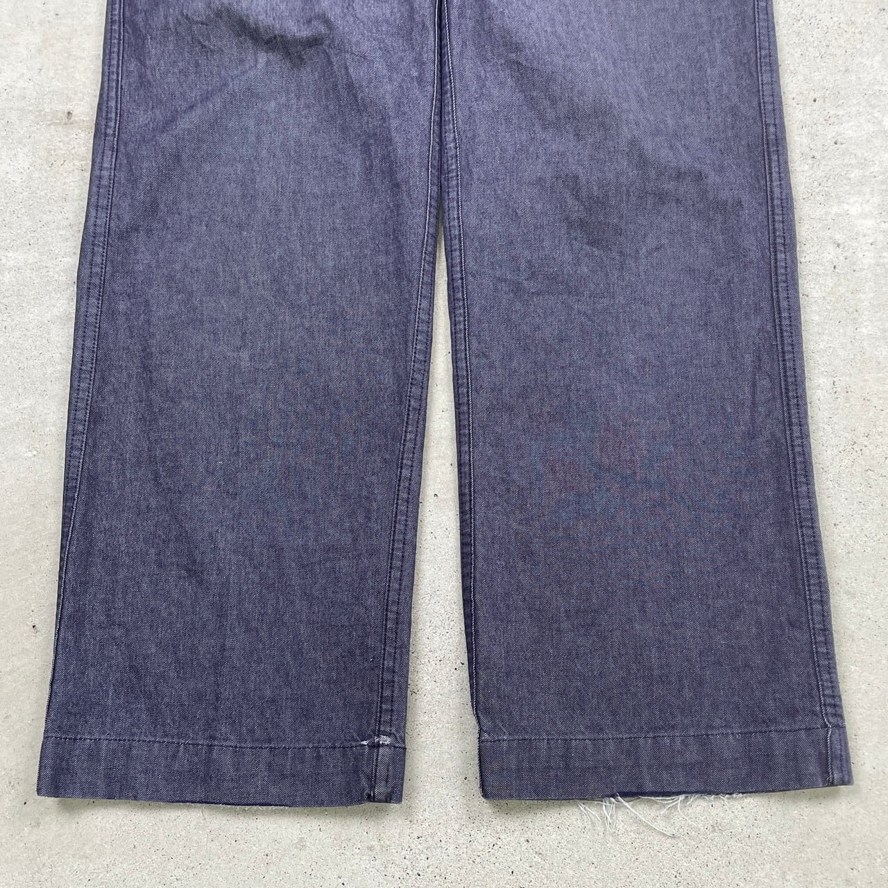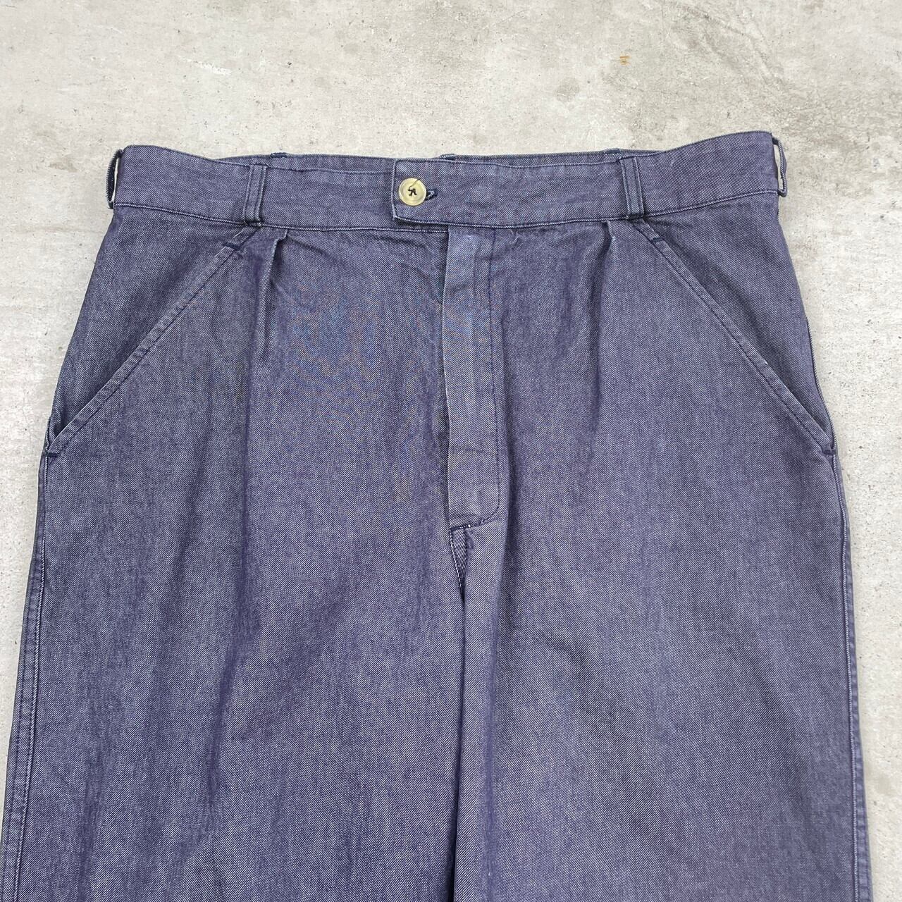 ■フランス軍 デニムパンツ トラウザー ワークパンツ メンズW35相当 古着 ユーロミリタリーパンツ ユーロワークパンツ フレンチワーク ワイド 紺色【ミリタリーパンツ】/ネイビー 【サイズ】表記 不明 ※計測値をご確認ください。 ウエスト(平置き×2)…88 ワタリ幅…31.5 股上…32.5 股下…79 裾幅…22.5 【生産国】不明 【素材】不明 【状態】内股や裾に擦れが御座います。 またバックポケットに汚れが御座います。 画像にてご確認ください。 【c240919072】 ※古着は洗濯、検品などのケアを行っております。(新品・デッドストックは洗濯していません。) ※モニターの発色により実物と異なる場合がございます。予めご了承ください。 ※ 海外直輸入USED品になります。