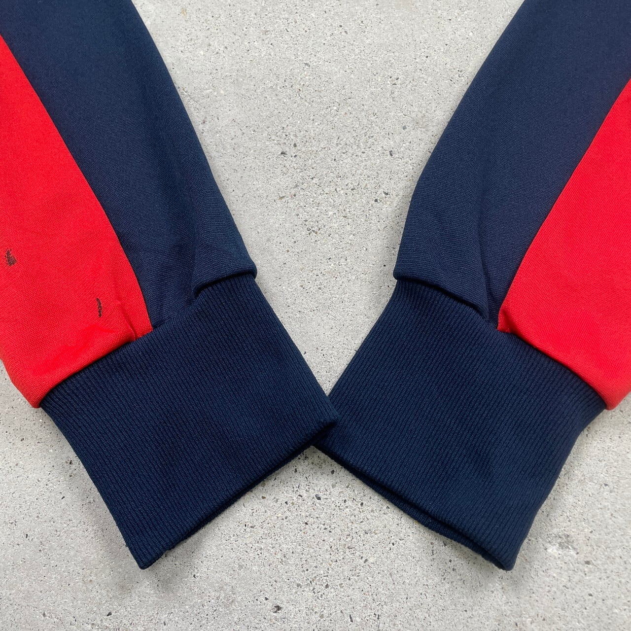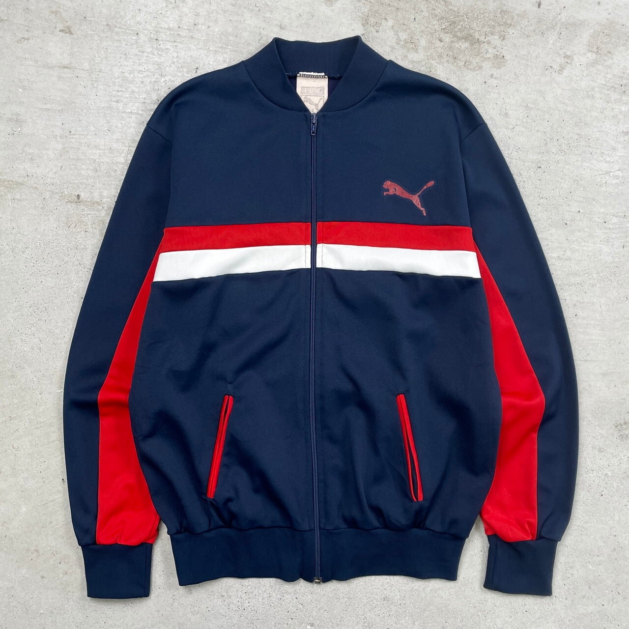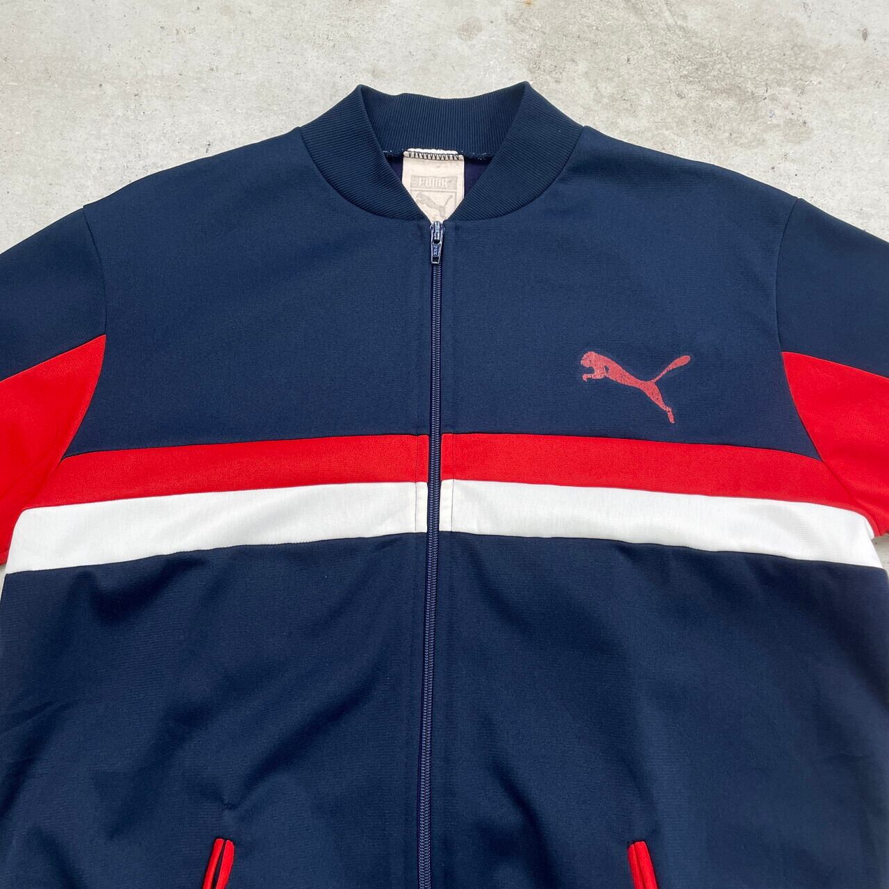 ■70年代 フランス製 puma プーマ トラックジャケット ジャージ メンズS-M相当 古着 70s ヴィンテージ VINTAGE ブルゾン 紺色 赤色 白色 【ジャージ・トラックジャケット】/ネイビー 【ブランド】puma 【サイズ】表記 2 ※計測値をご確認ください。 着丈…64.5 身幅…55.5 肩幅…47 袖丈…62 【生産国】フランス製 【素材】ポリエステル70% コットン30% 【状態】袖に汚れ、ポケット上にリペア跡が御座います。 また多少の使用感が御座います。 画像にてご確認ください。 【c240913054】 ※古着は洗濯、検品などのケアを行っております。(新品・デッドストックは洗濯していません。) ※モニターの発色により実物と異なる場合がございます。予めご了承ください。 ※ 海外直輸入USED品になります。