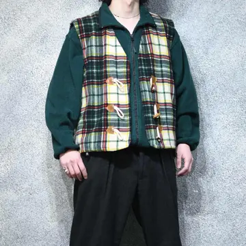 古着 オーバーサイズ フリースベスト デザインベスト ベスト チェック柄