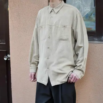 古着 フェイクスウェードシャツ ホールデザイン デザインシャツ ベージュ