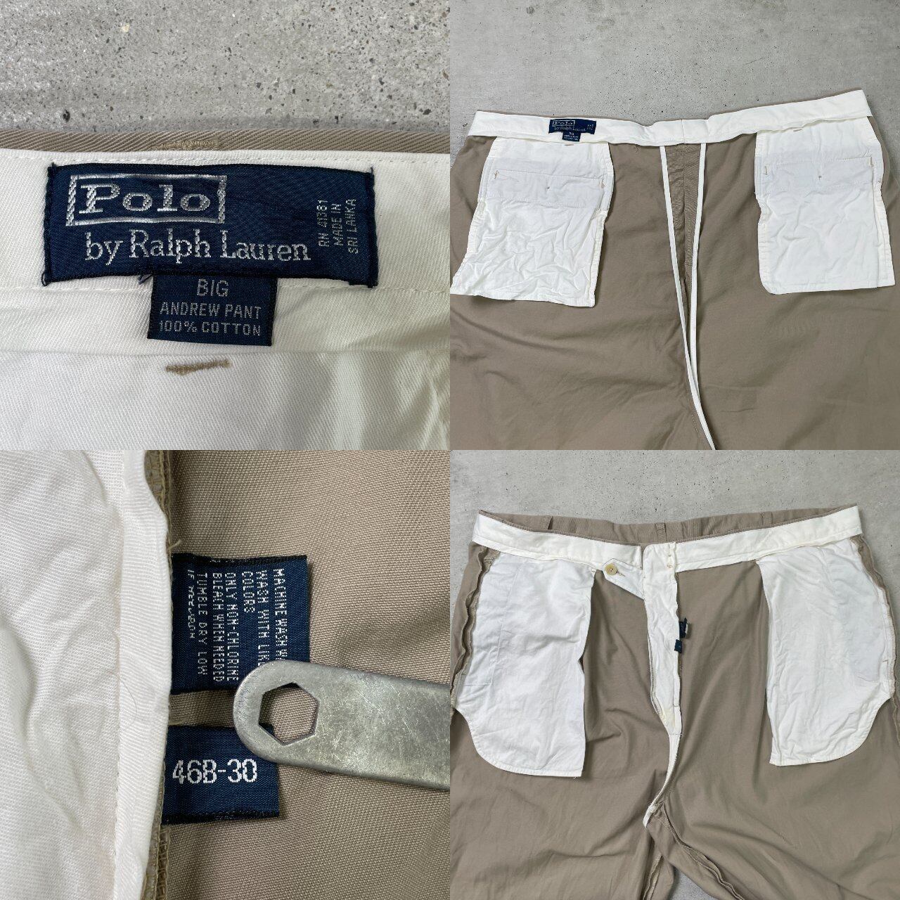 ■90年代 Polo by Ralph Lauren ポロバイラルフローレン ANDREW PANT 2タック ワイドチノパンツ ビッグサイズ メンズW46B 古着 90s VINTAGE ヴィンテージ ポロチノ サンドベージュ ビッグサイズ 大きいサイズ【チノパンツ,コットンパンツ】/ベージュ 【ブランド】Polo by Ralph Lauren ポロバイラルフローレン 【サイズ】表記 46B-30 ※計測値をご確認ください。 ウエスト(平置き×2)…116 ワタリ幅…38 股上…40 股下…77 裾幅…24 【生産国】スリランカ製 【素材】コットン100% 【状態】膝付近やお尻付近に汚れが御座います。 また多少の使用感が御座います。 画像にてご確認ください。 【c240903053】 ※古着は洗濯、検品などのケアを行っております。(新品・デッドストックは洗濯していません。) ※モニターの発色により実物と異なる場合がございます。予めご了承ください。 ※ 海外直輸入USED品になります。