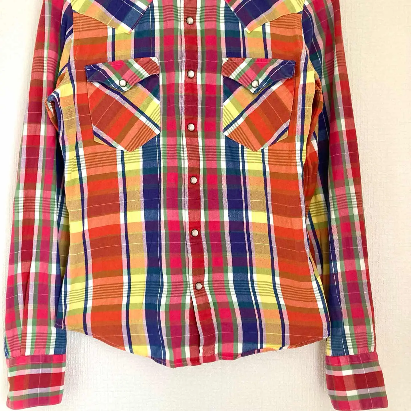 美しい色合いと独特なチェック柄が特徴の90s・00sヴィンテージシャツです。軽やかな長袖なので、季節を問わず着こなせます。ファッション性だけでなく、着心地も抜群です。デイリーコーデやカジュアルシーンで活躍する一枚です。 ブランド ラルフローレン Ralph lauren 商品名 ラルフローレン チェックシャツ 90s 00s ヴィンテージ レディース 長袖 マルチカラー 鮮やか サイズ 11サイズ 肩幅36.5㎝ 身幅45㎝ 着丈59㎝ 袖丈58㎝ カラー マルチカラー #ABY280 #ふくしるべのシャツ
