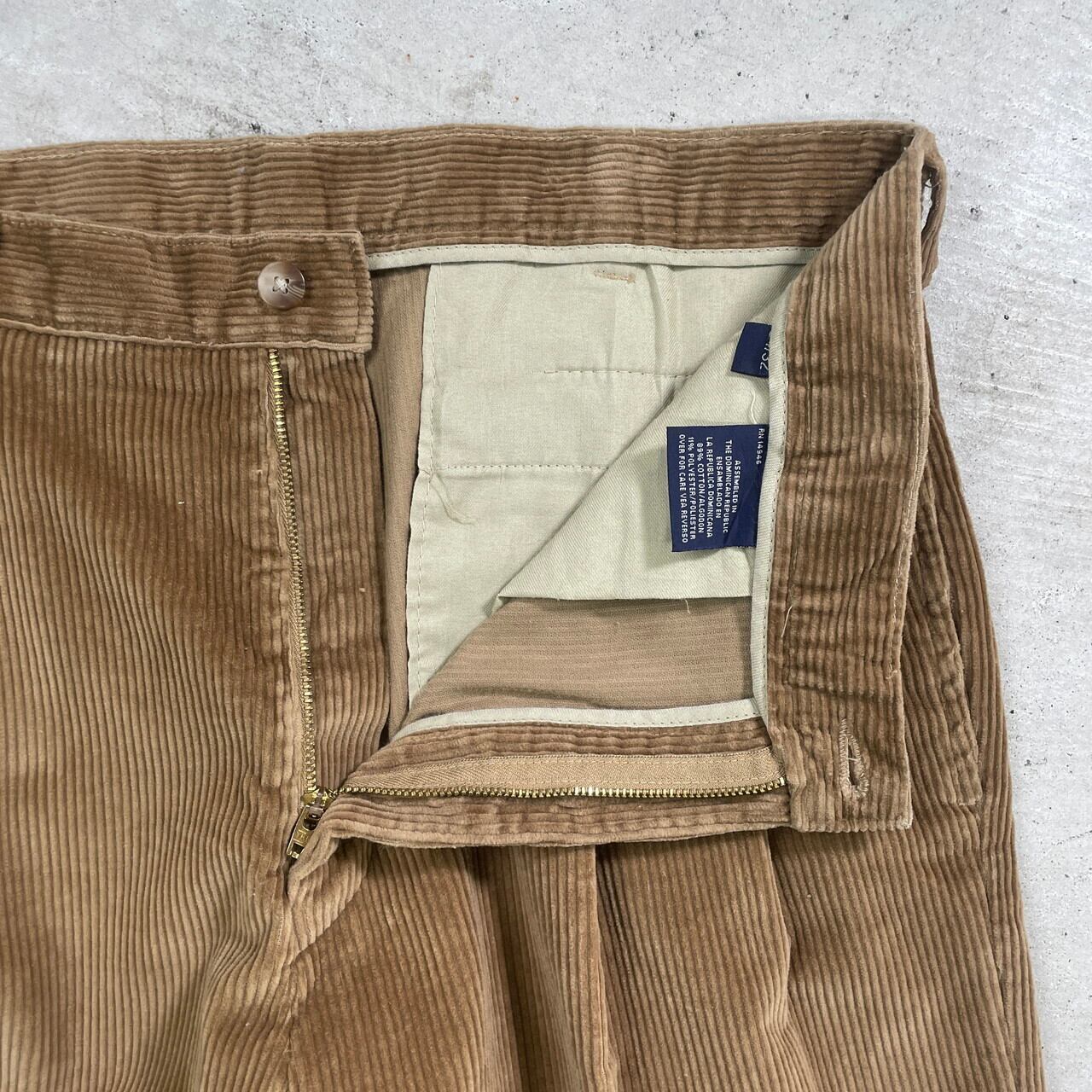 ■UNKNOWN コーデュロイパンツ ワイド 2タック 太畝 メンズW34 古着 アメカジ カフェオレブラウン 茶色【コーデュロイパンツ】/ブラウン 【ブランド】不明 【サイズ】表記 W34×L32 ※計測値をご確認ください。 ウエスト(平置き×2)…87 ワタリ幅…32.5 股上...31.5 股下…80 裾幅…22 【生産国】ドミニカ共和国製 【素材】89%コットン 11%ポリエステル 【状態】多少の使用感はございますが、 目立った汚れやダメージはなくまだまだ愛用していただけます。 画像にてご確認ください。 【c241116308】 ※古着は洗濯、検品などのケアを行っております。(新品・デッドストックは洗濯していません。) ※モニターの発色により実物と異なる場合がございます。予めご了承ください。 ※ 海外直輸入USED品になります。