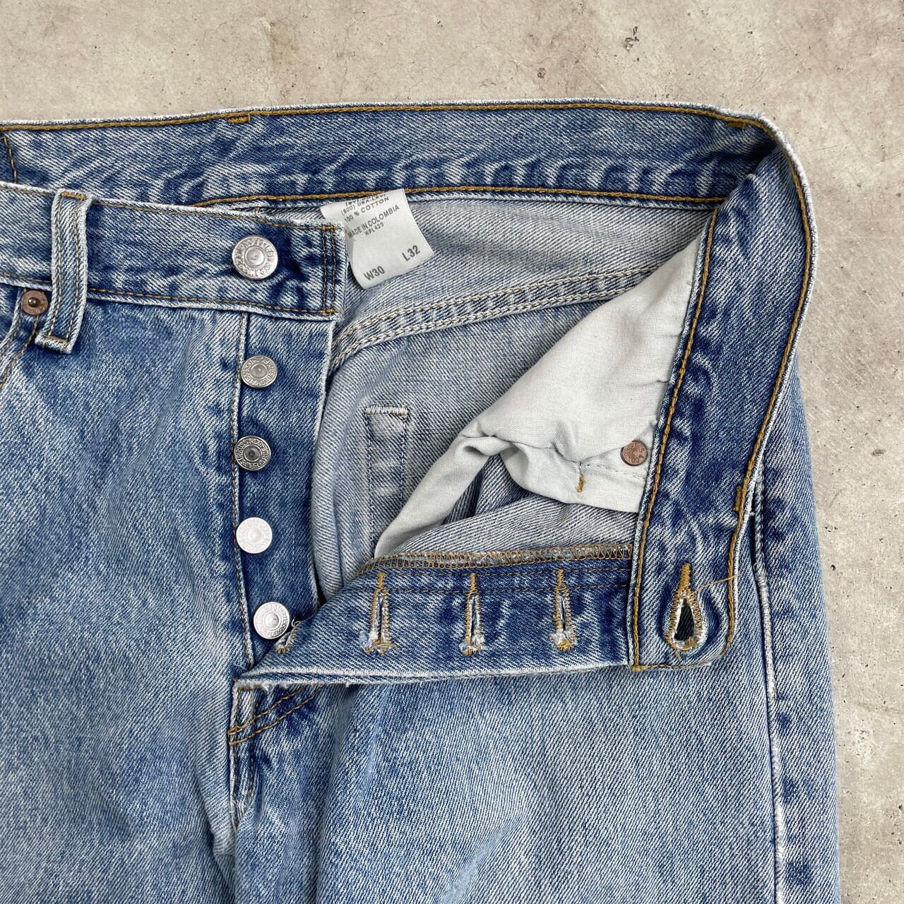 00年代 Levi's リーバイス 501 デニムパンツ ストレート メンズW30 古着 00s VINTAGE ヴィンテージ Y2K アメカジ 青色【デニムパンツ】/ブルー 【ブランド】Levi's リーバイス 【サイズ】表記 W03 L32 ※計測値をご確認ください。 ウエスト(平置き×2)…77 ワタリ幅…29 股上…27.5 股下…79.5 裾幅…20 【生産国】コロンビア製 【素材】コットン100% 【状態】フロント右膝に多少の汚れ、フロント両膝に擦れ、裾にほつれがございます。 画像にてご確認ください。 【c241116302】 ※古着は洗濯、検品などのケアを行っております。(新品・デッドストックは洗濯していません。) ※モニターの発色により実物と異なる場合がございます。予めご了承ください。 ※ 海外直輸入USED品になります。