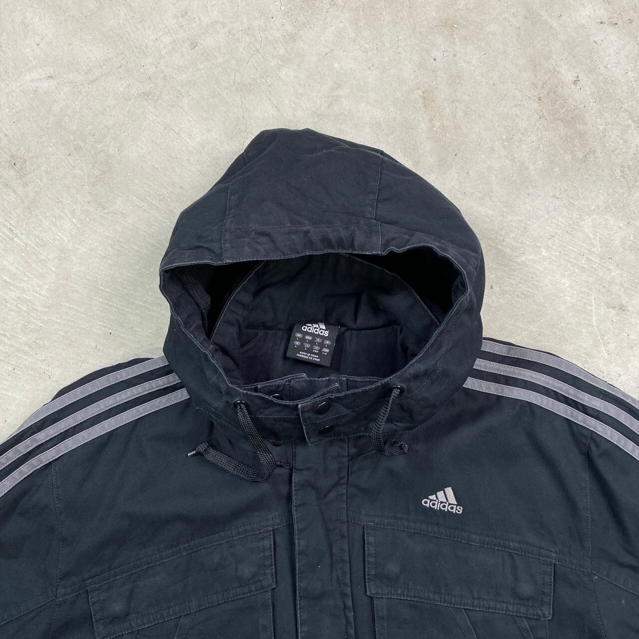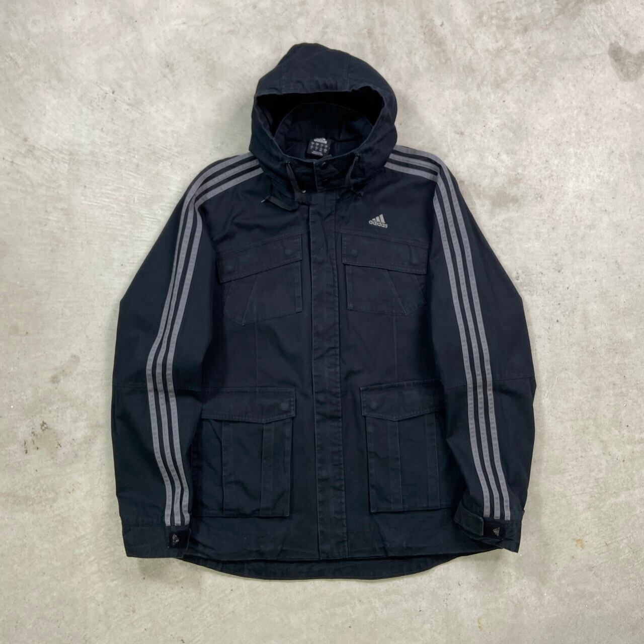 ■adidas アディダス M-65タイプ フィールドジャケット フード収納型 メンズXL相当 古着 ヴィンテージ VINTAGE メッシュライナー サイドライン 墨黒 【ミリタリージャケット】/ブラック 【ブランド】adidas 【サイズ】表記 USA L モデル身長172cm ※計測値をご確認ください。 着丈…78.5 身幅…63 肩幅…52 袖丈…66 【生産国】中国製 【素材】コットン100% 【状態】左下ポケットフラップのスナップボタンが変形により閉じられなくなっております。 また脇に汚れ、袖や全体的に色あせや擦れが御座います。 画像にてご確認ください。 【c241116003】 ※古着は洗濯、検品などのケアを行っております。(新品・デッドストックは洗濯していません。) ※モニターの発色により実物と異なる場合がございます。予めご了承ください。 ※ 海外直輸入USED品になります。