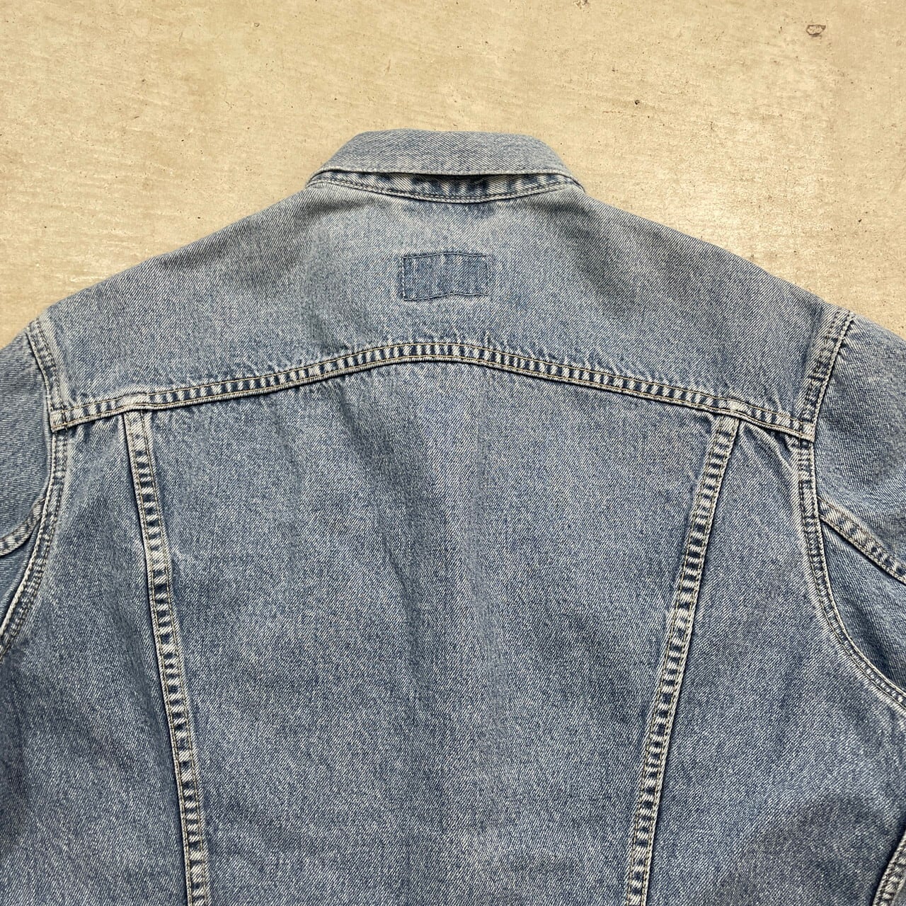 ■ Levi's ユーロリーバイス デニムジャケット メンズM相当 レディース 古着 アメカジ トラッカー【デニムジャケット】/ブルー 【ブランド】Levi's リーバイス 【サイズ】表記 XL(着用感メンズM相当) モデル身長172cm ※計測値をご確認ください。 着丈…57 身幅…55 肩幅…50 袖丈…61 【生産国】チュニジア製 【素材】コットン100% 【状態】全体的に使用感による色褪せや擦れがございます。 袖やボタン付近に若干のほつれがあります。 画像にてご確認ください。 【c241113209】 ※古着は洗濯、検品などのケアを行っております。(新品・デッドストックは洗濯していません。) ※モニターの発色により実物と異なる場合がございます。予めご了承ください。 ※ 海外直輸入USED品になります。