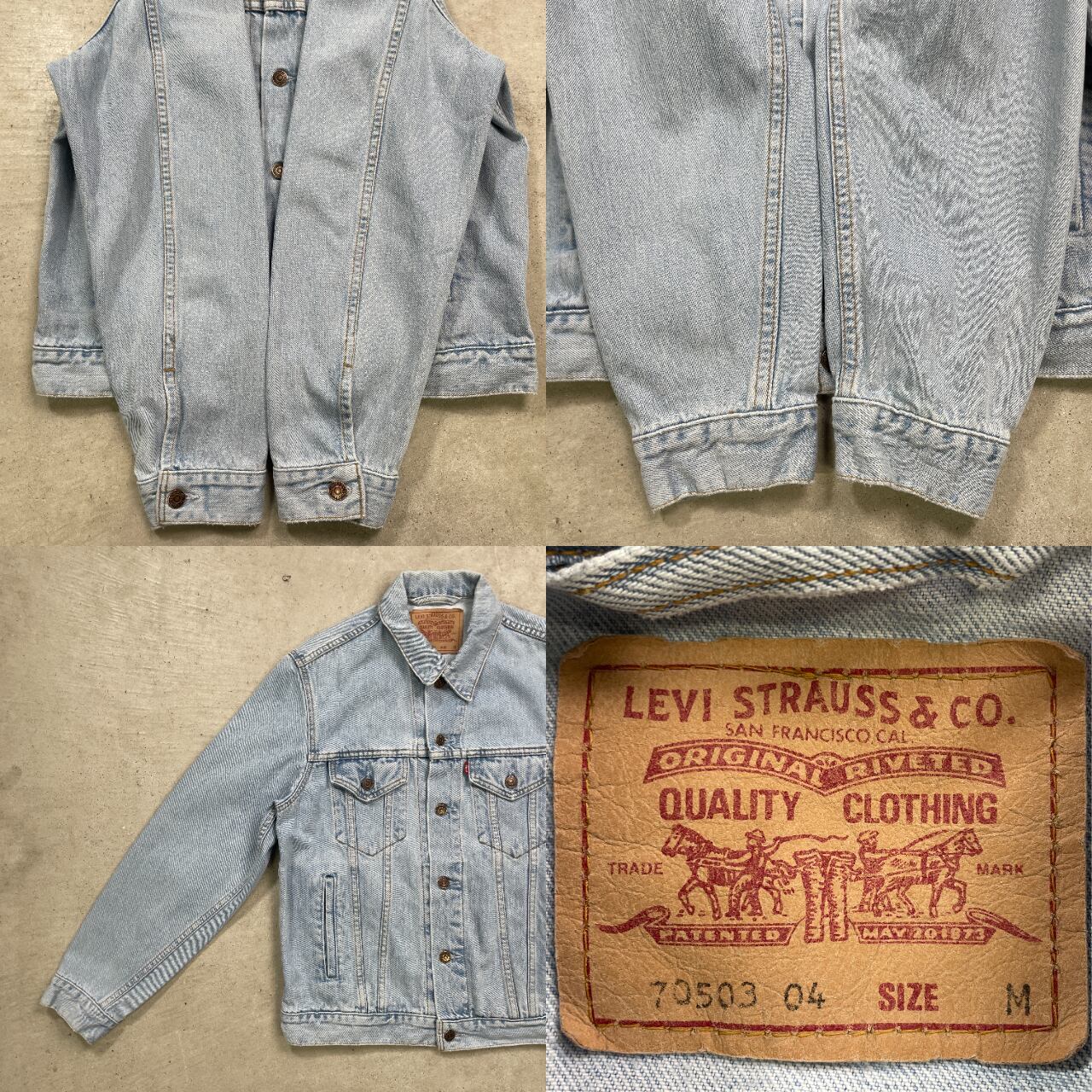 ■90年代 Levi's ユーロリーバイス 70503 04 デニムジャケット メンズM-L相当 古着 90s VINTAGE ヴィンテージ アメカジ トラッカージャケット 【デニムジャケット】/ブルー 【ブランド】Levi's リーバイス 【サイズ】表記 M モデル身長172cm ※計測値をご確認ください。 着丈…64.5 身幅…54.5 肩幅…45 袖丈…64 【生産国】不明 【素材】コットン100% 【状態】全体的に色あせや擦れが御座います。 画像にてご確認ください。 【c241108056】 ※古着は洗濯、検品などのケアを行っております。(新品・デッドストックは洗濯していません。) ※モニターの発色により実物と異なる場合がございます。予めご了承ください。 ※ 海外直輸入USED品になります。