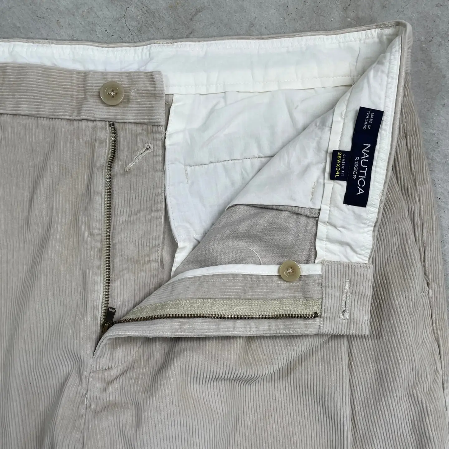 ■NAUTICA ノーティカ 太畝 ワイド 2タック コーデュロイパンツ メンズW36 古着 ホワイトベージュ【コーデュロイパンツ】/ベージュ 【ブランド】 NAUTICA ノーティカ 【サイズ】表記 36W×34L ※計測値をご確認ください。 ウエスト(平置き×2)…94 ワタリ幅…38 股上…33 股下…85 裾幅…25 【生産国】タイ製 【素材】コットン100% 【状態】全体的に使用感がありますが、目立った汚れ等はありません。 画像にてご確認ください。 【c241106218】 ※古着は洗濯、検品などのケアを行っております。(新品・デッドストックは洗濯していません。) ※モニターの発色により実物と異なる場合がございます。予めご了承ください。 ※ 海外直輸入USED品になります。