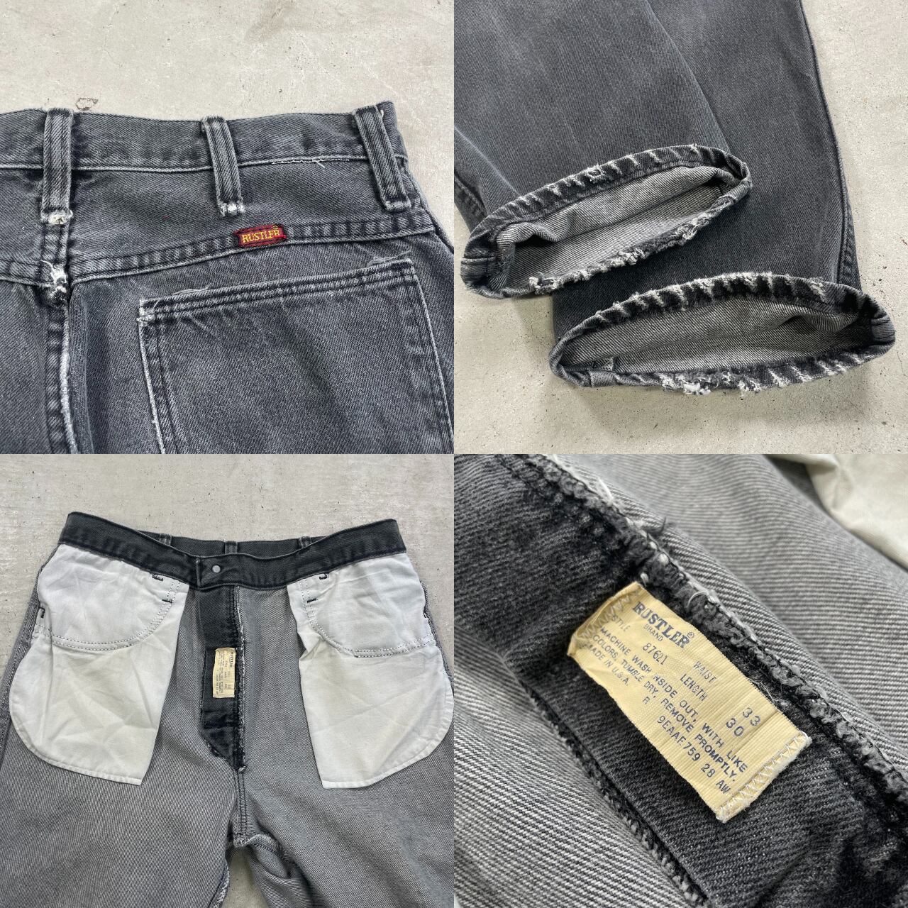 ■80年代 USA製 RUSTLER ブラックデニムパンツ ストレートパンツ メンズW31相当 古着 80s VINTAGE ヴィンテージ アメカジ ジーンズ フェードブラック【デニムパンツ】/ブラック 【ブランド】RUSTLER ラスター 【サイズ】表記 33×30(実寸約W31) ※計測値をご確認ください。 ウエスト(平置き×2)…80 ワタリ幅…31 股上…28 股下...72 裾幅…20 【生産国】USA製 【素材】コットン100% 【状態】色落ち等の使用感は御座います。 バックポケットにダメージがあります。 画像にてご確認ください。 【c241106209】 ※古着は洗濯、検品などのケアを行っております。(新品・デッドストックは洗濯していません。) ※モニターの発色により実物と異なる場合がございます。予めご了承ください。 ※ 海外直輸入USED品になります。