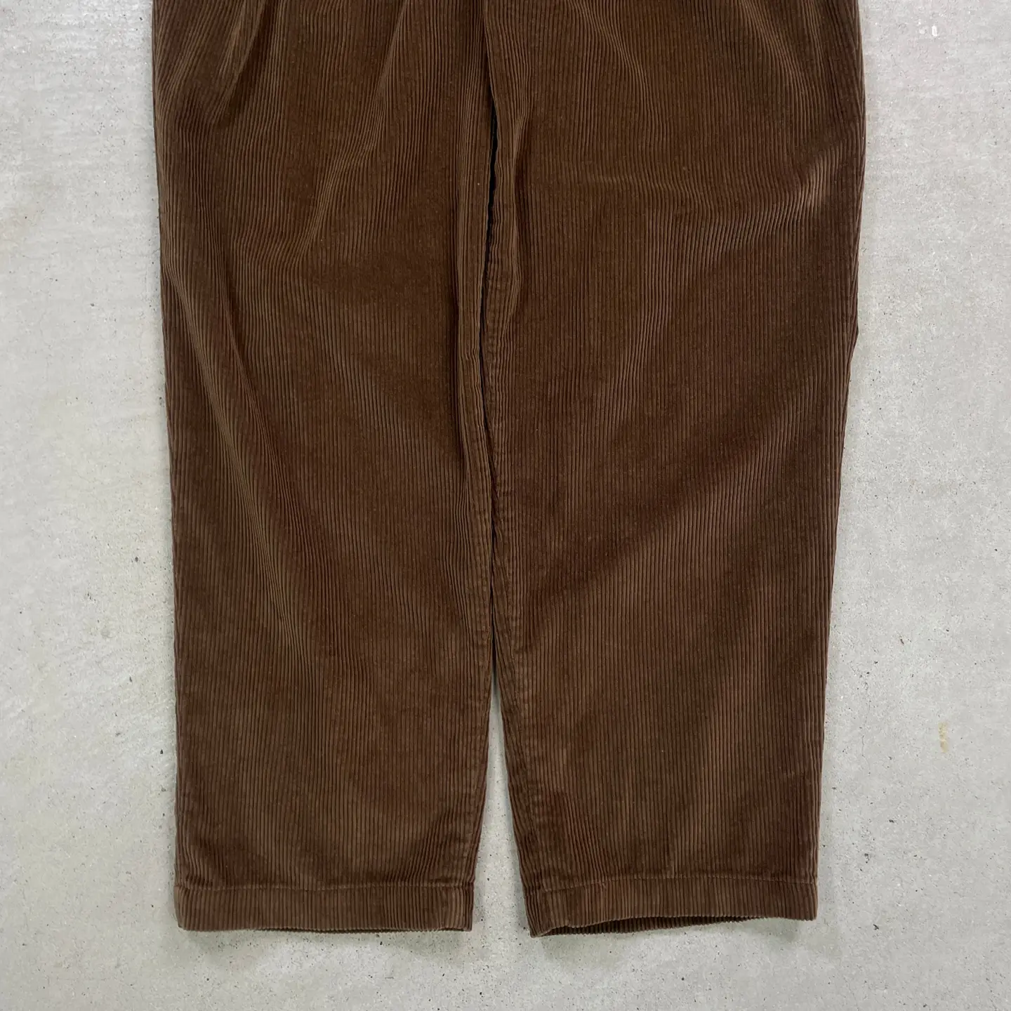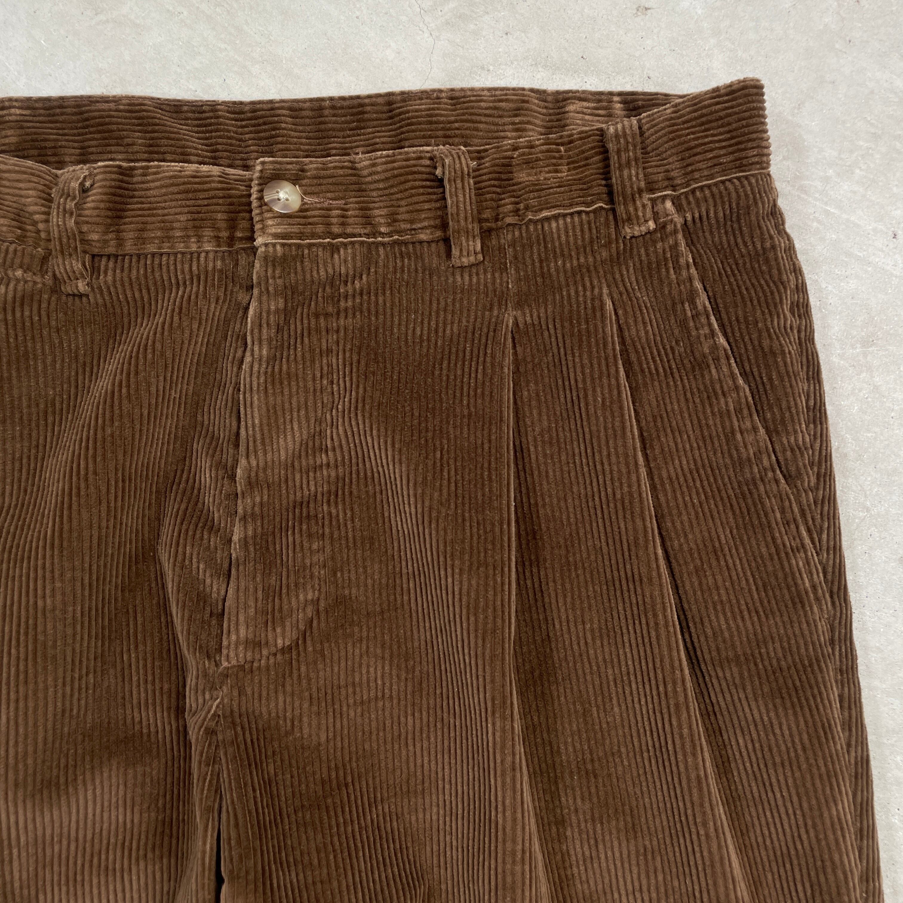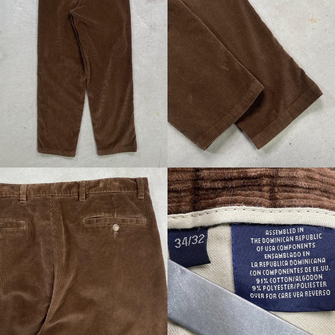■コーデュロイパンツ 2タック メンズW36 古着 テーパード ブラウン 茶色【コーデュロイパンツ】/ブラウン 【ブランド】不明 【サイズ】表記W34 L32 ※計測値をご確認ください。 ウエスト(平置き×2)…88 ワタリ幅…42 股上…39.5 股下…79 裾幅…22.5 【生産国】不明(ジップ裏の刻印にはUSAの記載が御座います。) 【素材】コットン91%ポリエステル9% 【状態】全体的に多少の使用感が御座いますが、目立ったダメージや汚れは御座いません。。 画像にてご確認ください。 【c241106121】 ※古着は洗濯、検品などのケアを行っております。(新品・デッドストックは洗濯していません。) ※モニターの発色により実物と異なる場合がございます。予めご了承ください。 ※ 海外直輸入USED品になります。