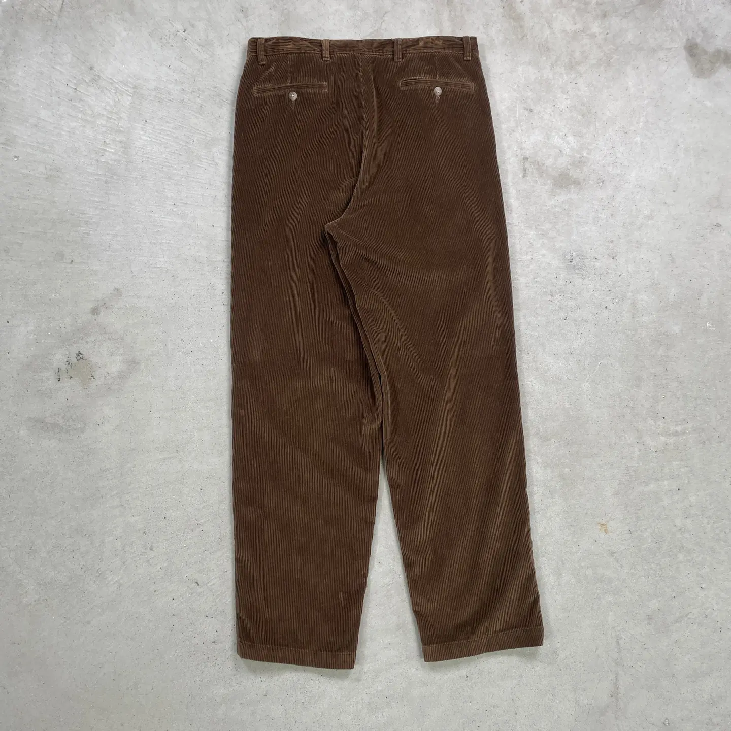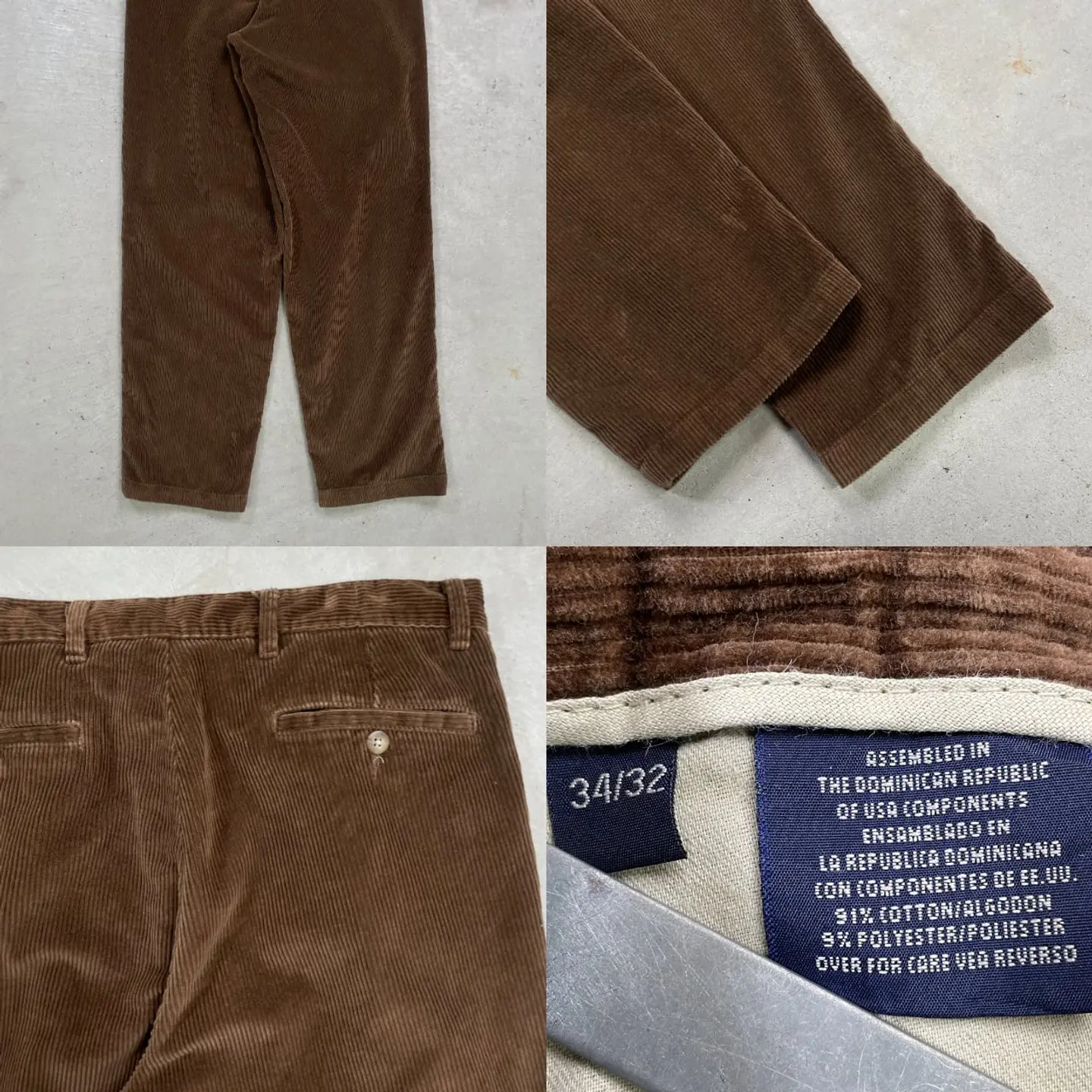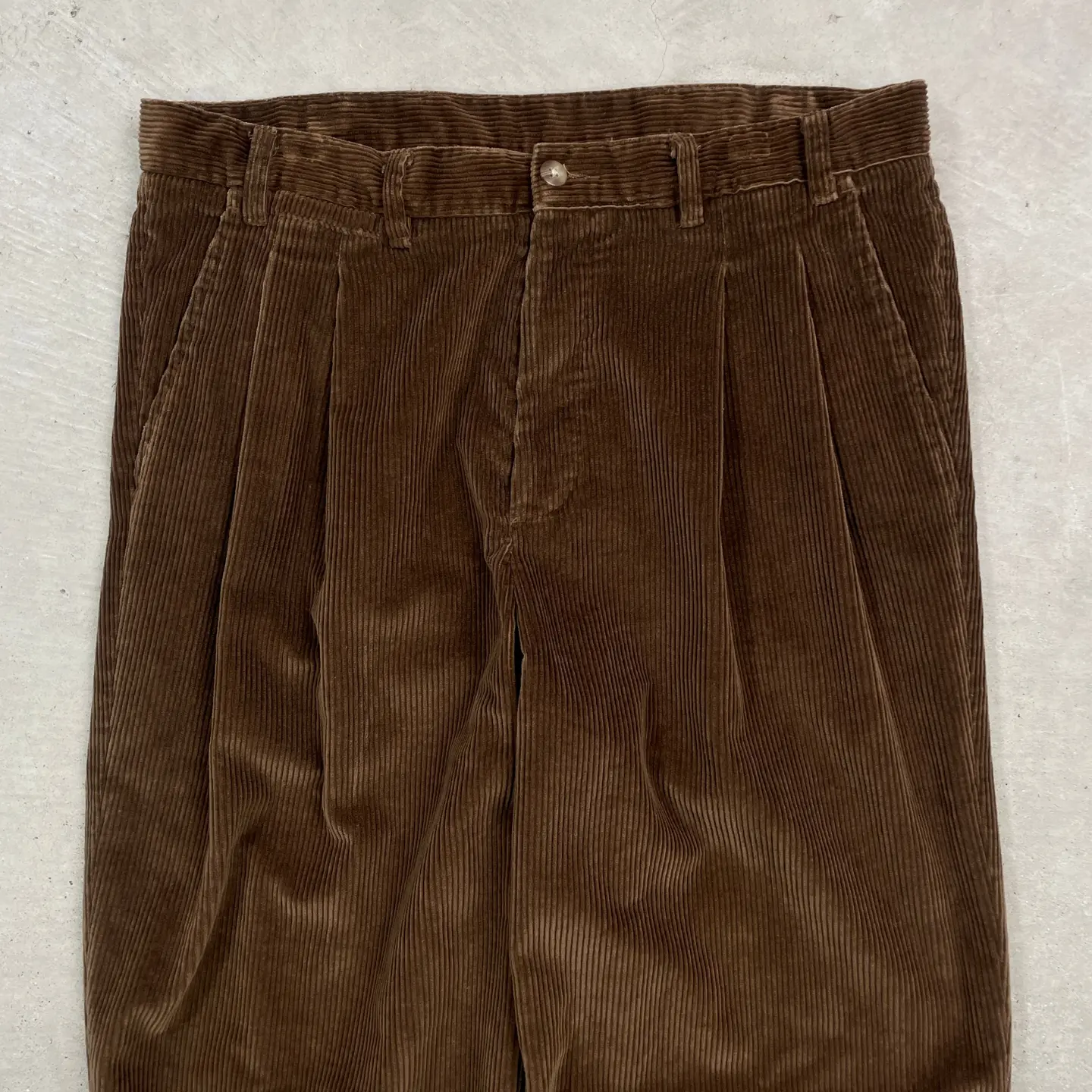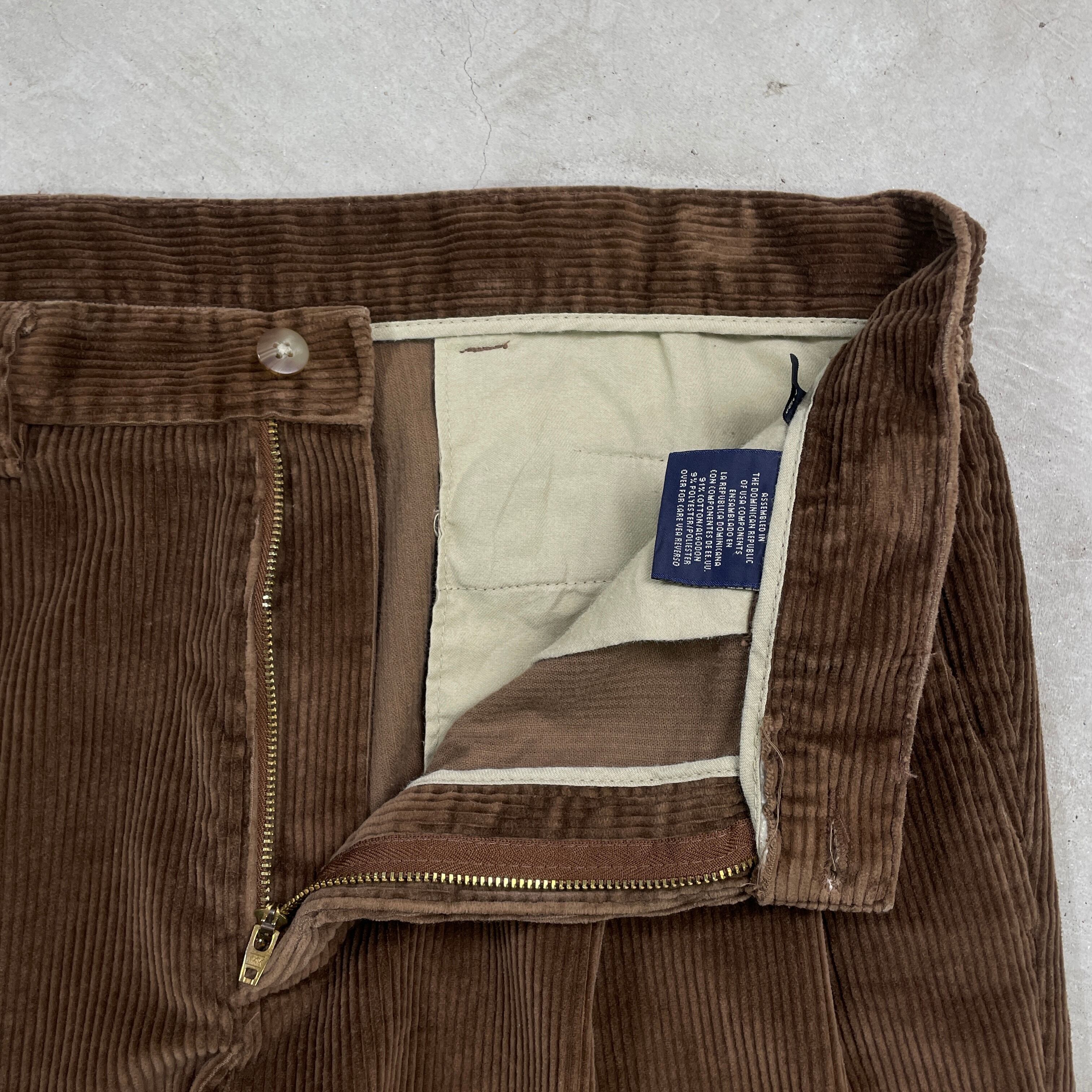 ■コーデュロイパンツ 2タック メンズW36 古着 テーパード ブラウン 茶色【コーデュロイパンツ】/ブラウン 【ブランド】不明 【サイズ】表記W34 L32 ※計測値をご確認ください。 ウエスト(平置き×2)…88 ワタリ幅…42 股上…39.5 股下…79 裾幅…22.5 【生産国】不明(ジップ裏の刻印にはUSAの記載が御座います。) 【素材】コットン91%ポリエステル9% 【状態】全体的に多少の使用感が御座いますが、目立ったダメージや汚れは御座いません。。 画像にてご確認ください。 【c241106121】 ※古着は洗濯、検品などのケアを行っております。(新品・デッドストックは洗濯していません。) ※モニターの発色により実物と異なる場合がございます。予めご了承ください。 ※ 海外直輸入USED品になります。