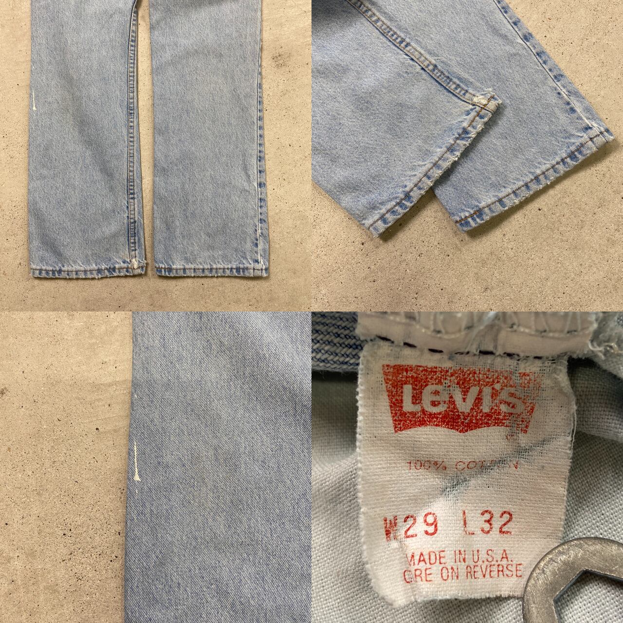 ■90年代 USA製 Levi's リーバイス 517 ブーツカット フレアデニムパンツ オレンジタブ メンズW29 レディース 古着 アメカジ 90s VINTAGE ヴィンテージ 青 【デニムパンツ】/ブルー 【ブランド】Levi's リーバイス 【サイズ】表記 W29 L32 (実寸約L30) 裾上げされています。 ※計測値をご確認ください。 ウエスト(平置き×2)…72 ワタリ幅…28 股上…27 股下…76 裾幅…20.5 【生産国】USA製 【素材】コットン100% 【状態】全体的に使用感による色褪せや擦れが御座います。 フロント左ポケット、バックポケットにリペア跡があります。 数ヶ所シミ汚れがあります。 バックサイド腿付近にペンキ飛びがあります。 画像にてご確認ください。 【c241031215】 ※古着は洗濯、検品などのケアを行っております。(新品・デッドストックは洗濯していません。) ※モニターの発色により実物と異なる場合がございます。予めご了承ください。 ※ 海外直輸入USED品になります。