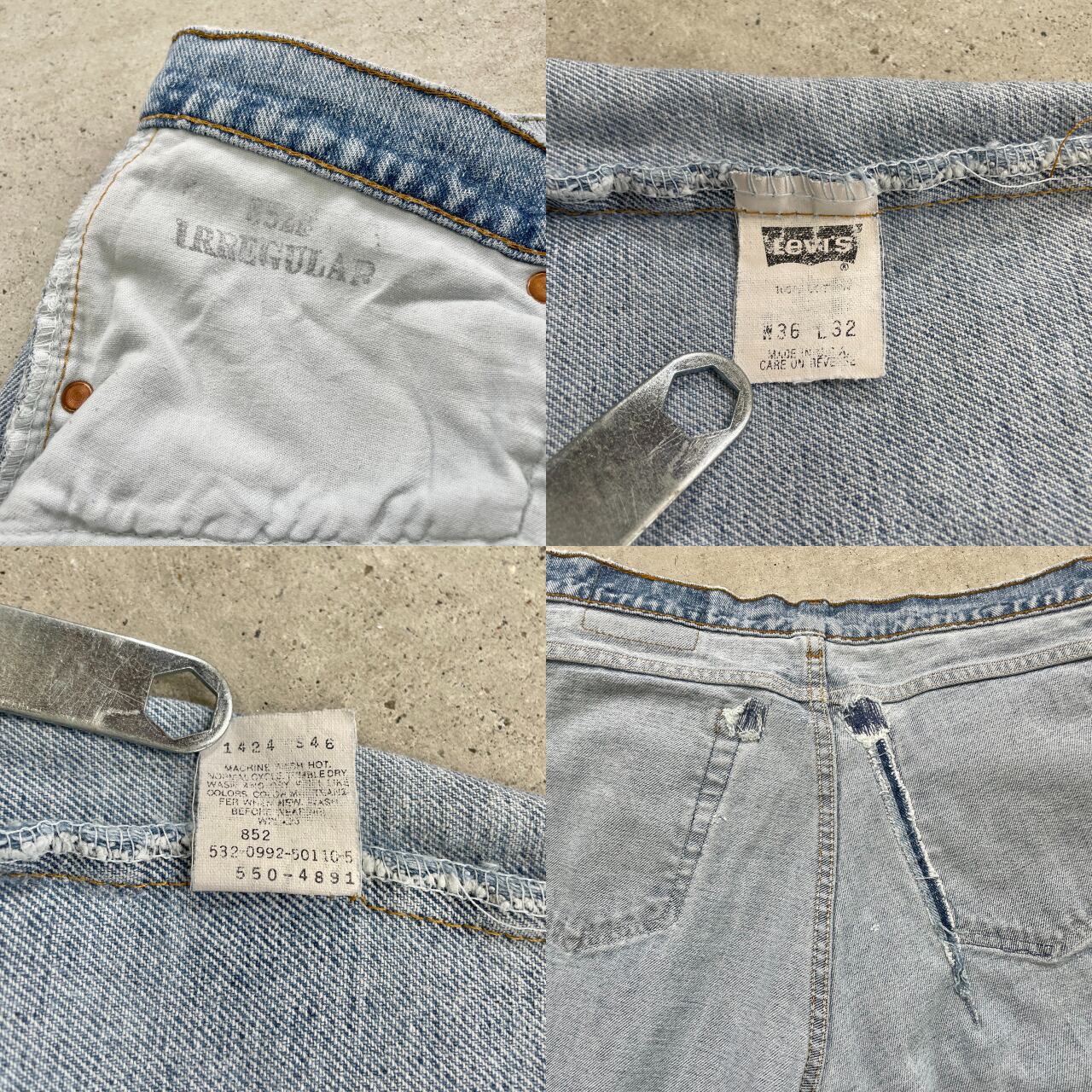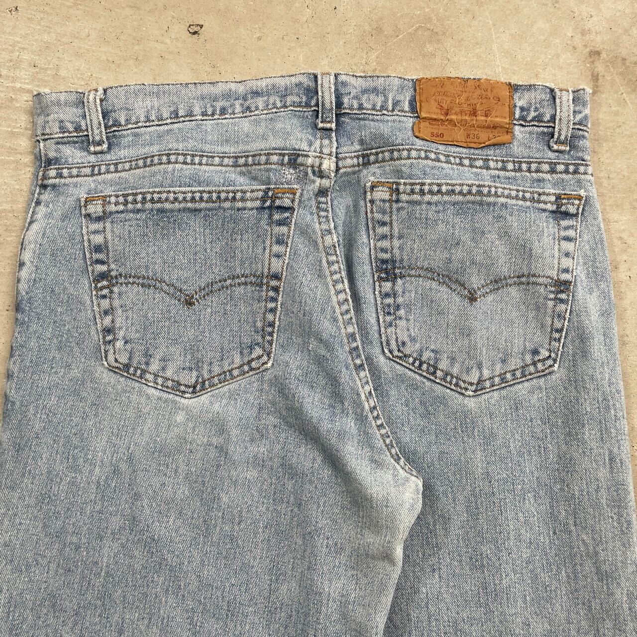 ■90年代 USA製 Levi's リーバイス 550 テーパード ワイドデニムパンツ RELAXED FIT メンズW35相当 古着 90s ヴィンテージ VINTAGE アメカジ バギーデニム ルーズデニム ワイドデニム【デニムパンツ】/ブルー 【ブランド】Levi's リーバイス ボタン裏刻印:532 【サイズ】表記 W36 L32(実寸約W35) ※計測値をご確認ください。 ウエスト(平置き×2)…89 ワタリ幅…34 股上…31 股下…80 裾幅…18.5 【生産国】USA製 【素材】コットン100% 【状態】全体的に使用感による色あせや擦れ、毛羽立ちがあります。 バックポケット付近に一部リペア跡があります。 両サイド上部、股、裾にほつれがあります。 画像にてご確認ください。 【c241031206】 ※古着は洗濯、検品などのケアを行っております。(新品・デッドストックは洗濯していません。) ※モニターの発色により実物と異なる場合がございます。予めご了承ください。 ※ 海外直輸入USED品になります。