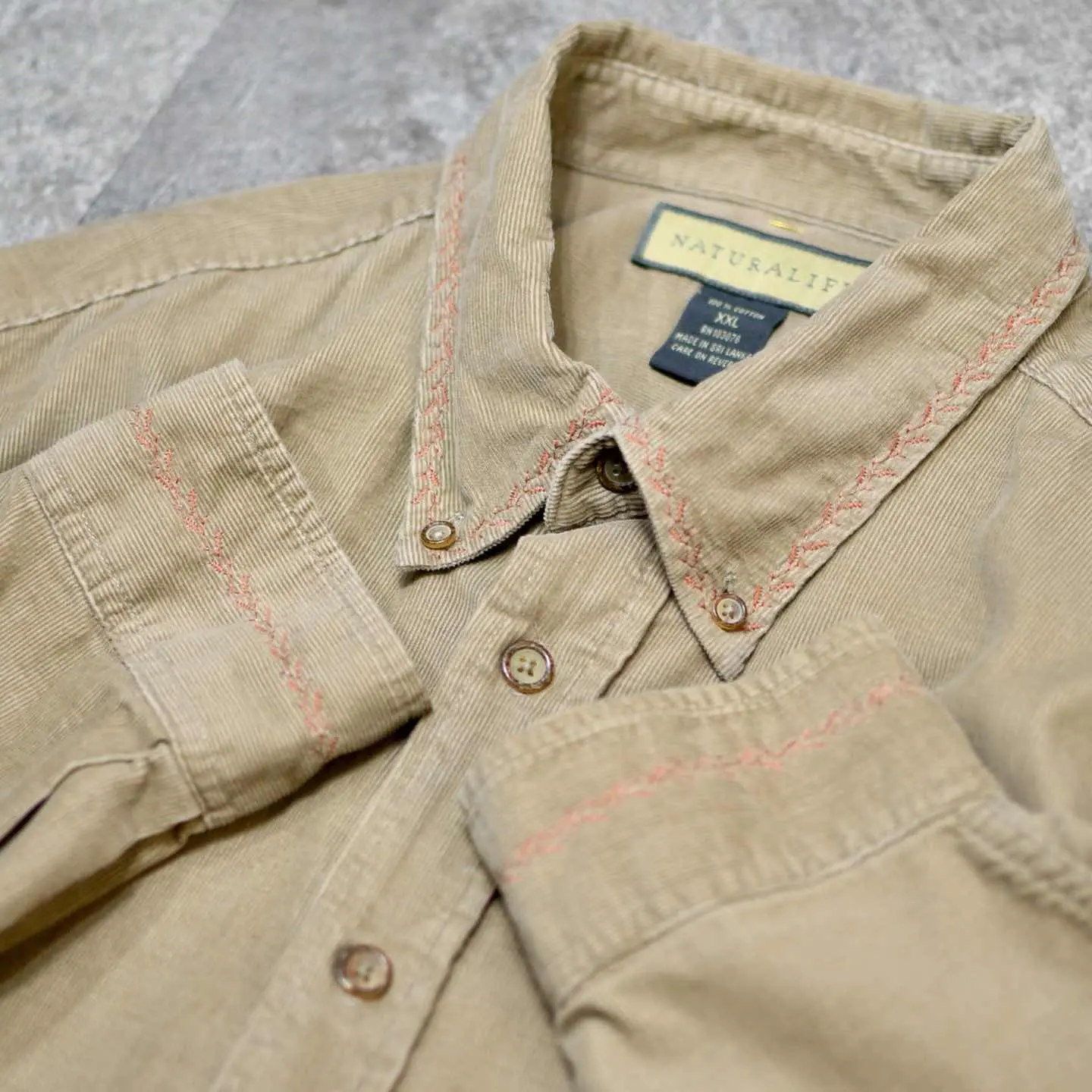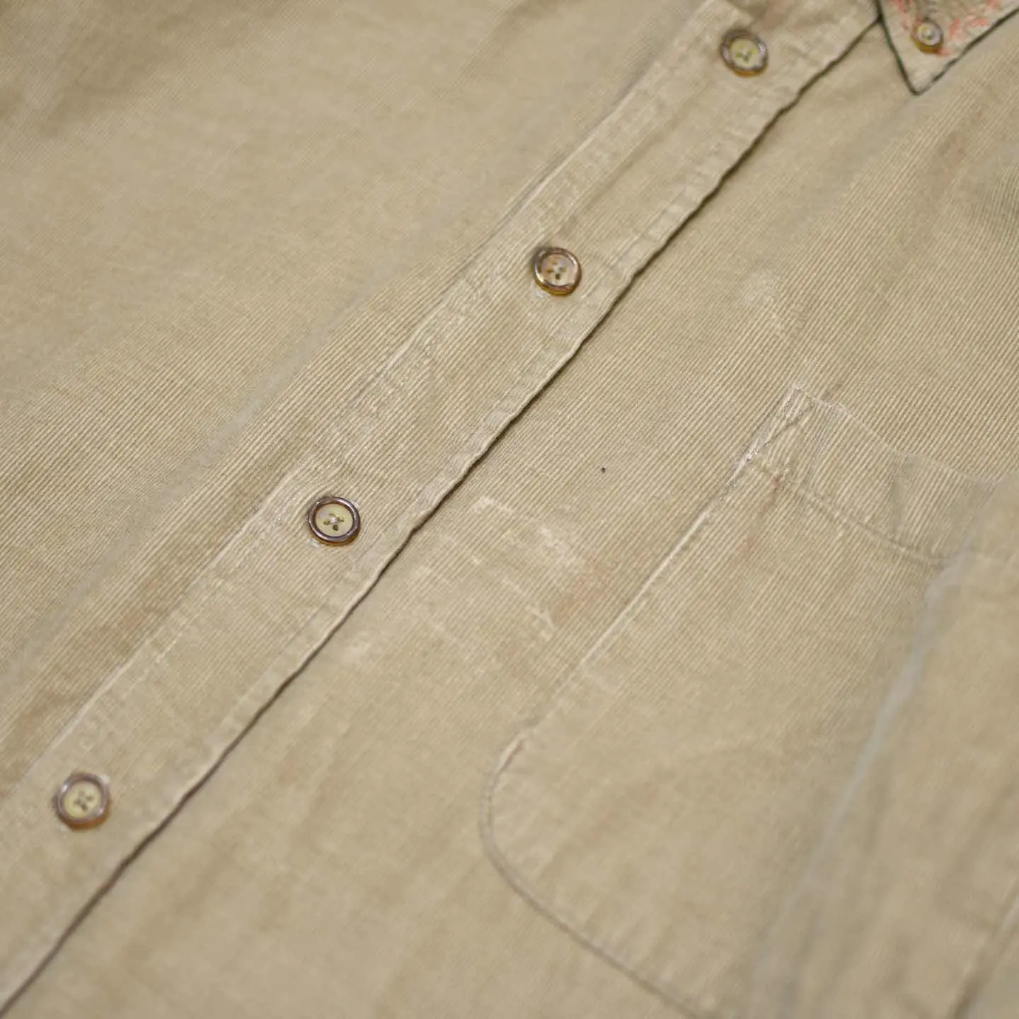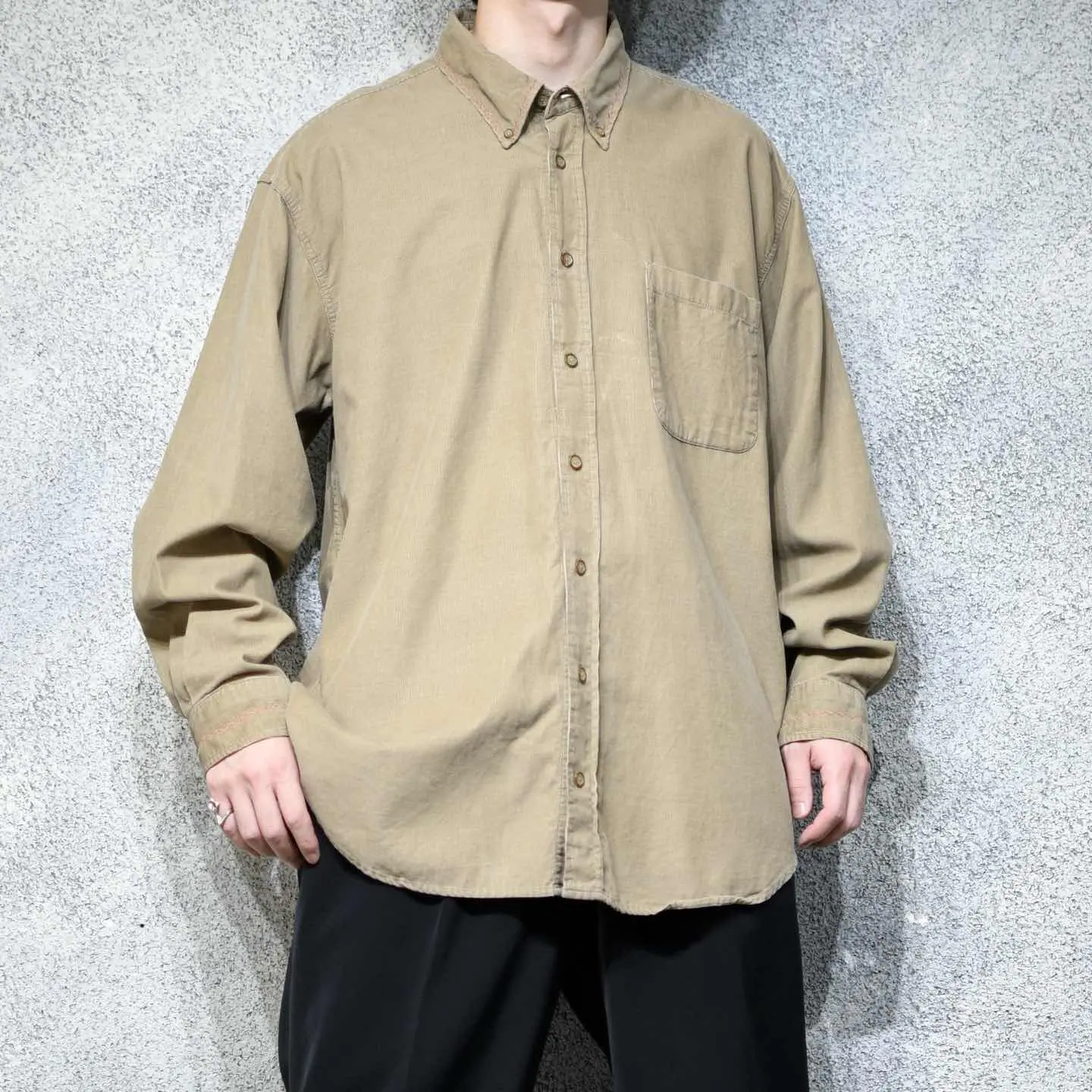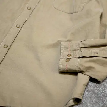 着丈78cm(前)85cm(後) 肩幅58cm 身幅72cm 袖丈62cm fabric/cotton 着用画像 177cm/64kg 襟と袖に葉の刺繍を施し、"ありそうでない" そんな1着を提案。 コーデュロイシャツに刺繍を入れることで、 しっかり季節感を取り入れつつも、程よく個性を 乗せた雰囲気を纏うことが出来る1着。 コーデに"丁度いい一癖"を求める方へ。 ※生地に若干の傷みあり。 ※撮影状況により、実物と多少色が異なる場合が ございます。 ※古着を取り扱っているため、気づかない汚れや ほつれ等がある場合がございます。 予めご了承ください。 ※サイズは着用感で選んでおり、表記サイズではございません。 古着 オーバーサイズ old vintage ヴィンテージ used 80's 90's アメリカ古着 ユーロ古着 メンズ レディース POLO RALPH LAUREN Eddie Bauer OLD GAP Eddie Bauer LANDS' END ランズエンド LLBean エルエルビーン オールドギャップ エディーバウアー ラルフローレン ブルックスブラザーズ Brooks Brothers ボタンダウンシャツ 長袖シャツ シャツ リメイク古着 ベージュ などがお好きな方 #vintage #オーバーサイズ #old #used #90s #80s #古着 #ヴィンテージ #アメリカ古着 #ユーロ古着 #古着男子 #古着女子 #LLBean #エルエルビーン #EddieBauer #エディーバウアー #oldgap #オールドギャップ #LANDSEND #ランズエンド #NAUTICA #ノーティカ #ラルフローレン #POLORALPHLAUREN #ブルックスブラザーズ #BrooksBrothers #コーデュロイシャツ #刺繍 #デザインシャツ #長袖シャツ #シャツ #ボタンダウンシャツ #リメイク古着 #リメイク