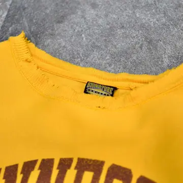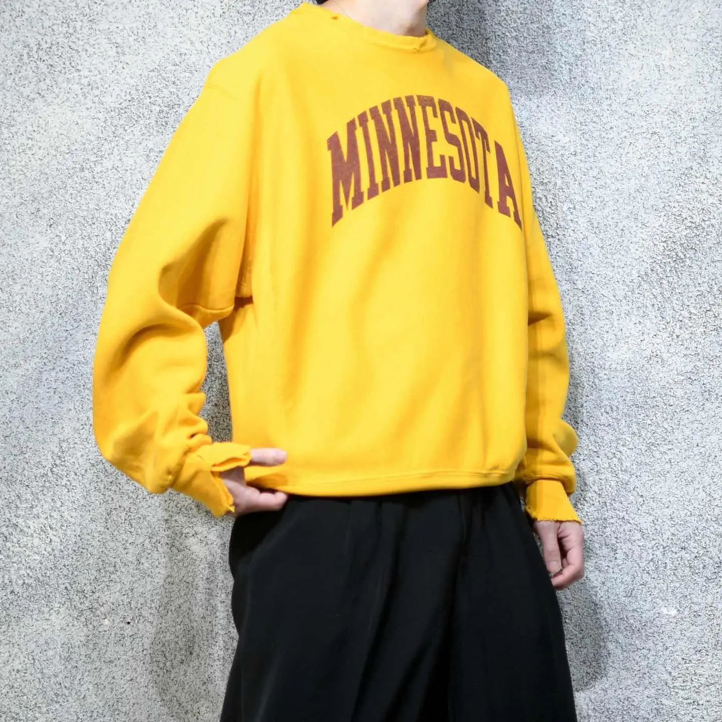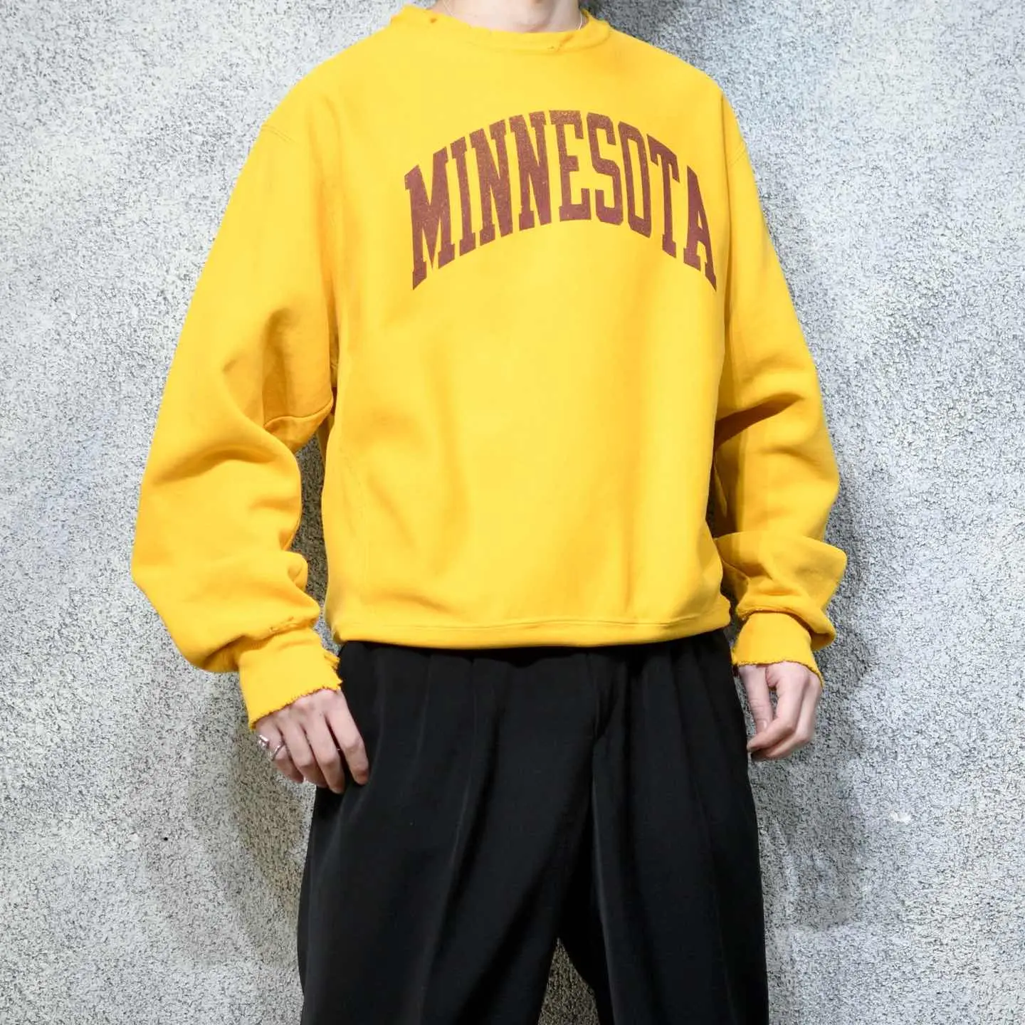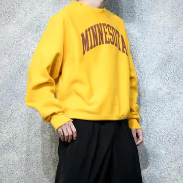 着丈68cm 肩幅59cm 身幅68cm 袖丈71cm fabric/cotton・poly 着用画像 177cm/64kg 使い込まれたボロさ。 そして本家リバースウィーブの、がしっとした 生地感ではなく、滑らかで肌触りのいい生地で なんだかそのボロさと、対称的な印象を持つ ところにも惹かれました。 黄色のボディにブラウンカラー。 好配色かつ、"良い状態" 雑に着るスウェットとしておすすめです。 ※撮影状況により、実物と多少色が異なる場合が ございます。 ※古着を取り扱っているため、気づかない汚れや ほつれ等がある場合がございます。 予めご了承ください。 ※サイズは着用感で選んでおり、表記サイズではございません。 古着 オーバーサイズ old vintage ヴィンテージ used 80's 90's アメリカ古着 ユーロ古着 メンズ レディース POLO RALPH LAUREN Eddie Bauer OLD GAP Eddie Bauer LANDS' END ランズエンド LLBean エルエルビーン オールドギャップ エディーバウアー ラルフローレン ブルックスブラザーズ Brooks Brothers 黄色 イエロー プリントスウェット スウェット トレーナー ダメージスウェット などがお好きな方 #vintage #オーバーサイズ #old #used #90s #80s #古着 #ヴィンテージ #アメリカ古着 #ユーロ古着 #古着男子 #古着女子 #LLBean #エルエルビーン #EddieBauer #エディーバウアー #oldgap #オールドギャップ #LANDSEND #ランズエンド #NAUTICA #ノーティカ #ラルフローレン #POLORALPHLAUREN #ブルックスブラザーズ #BrooksBrothers #スウェット #トレーナー #プリントスウェット #ダメージスウェット #カレッジスウェット #ボロ