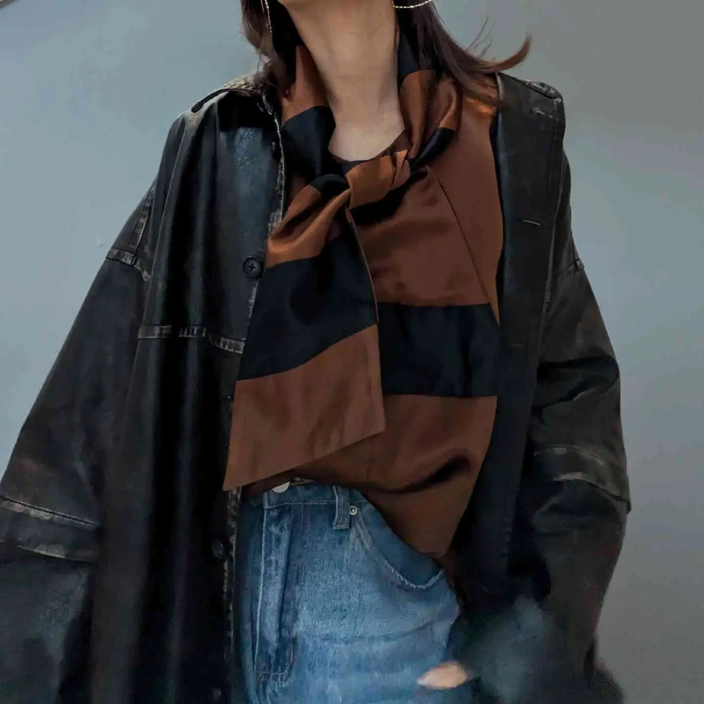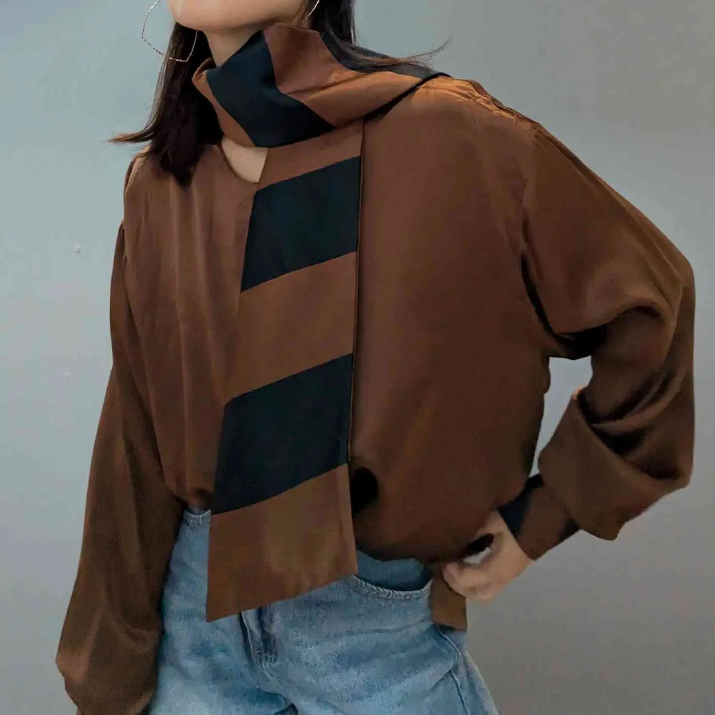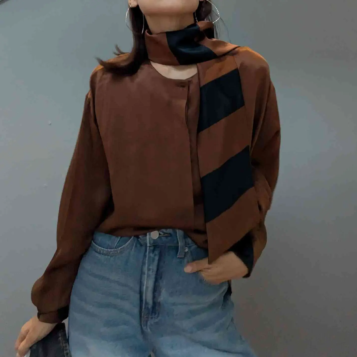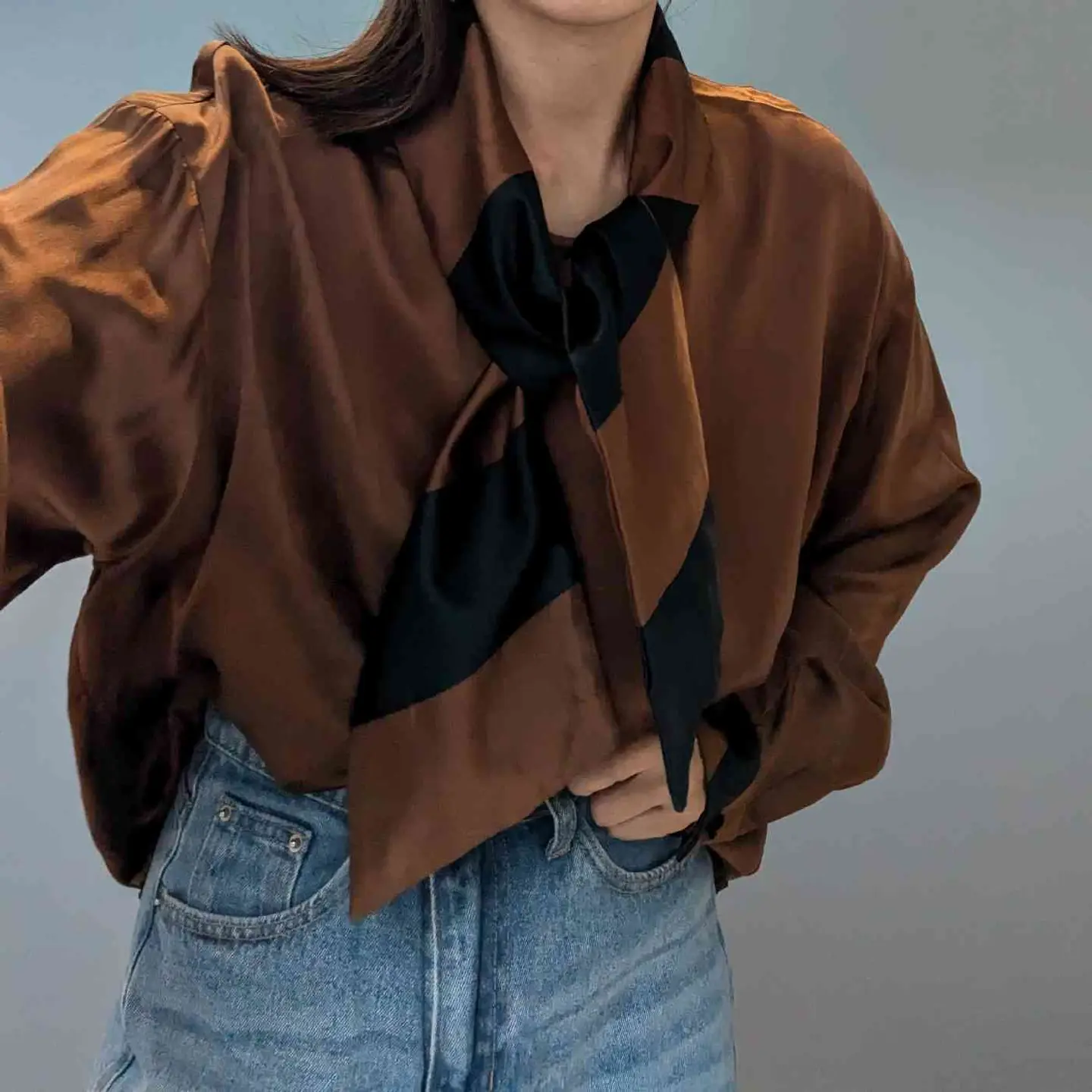 Italy vintage silk100% ribbon tie blouse