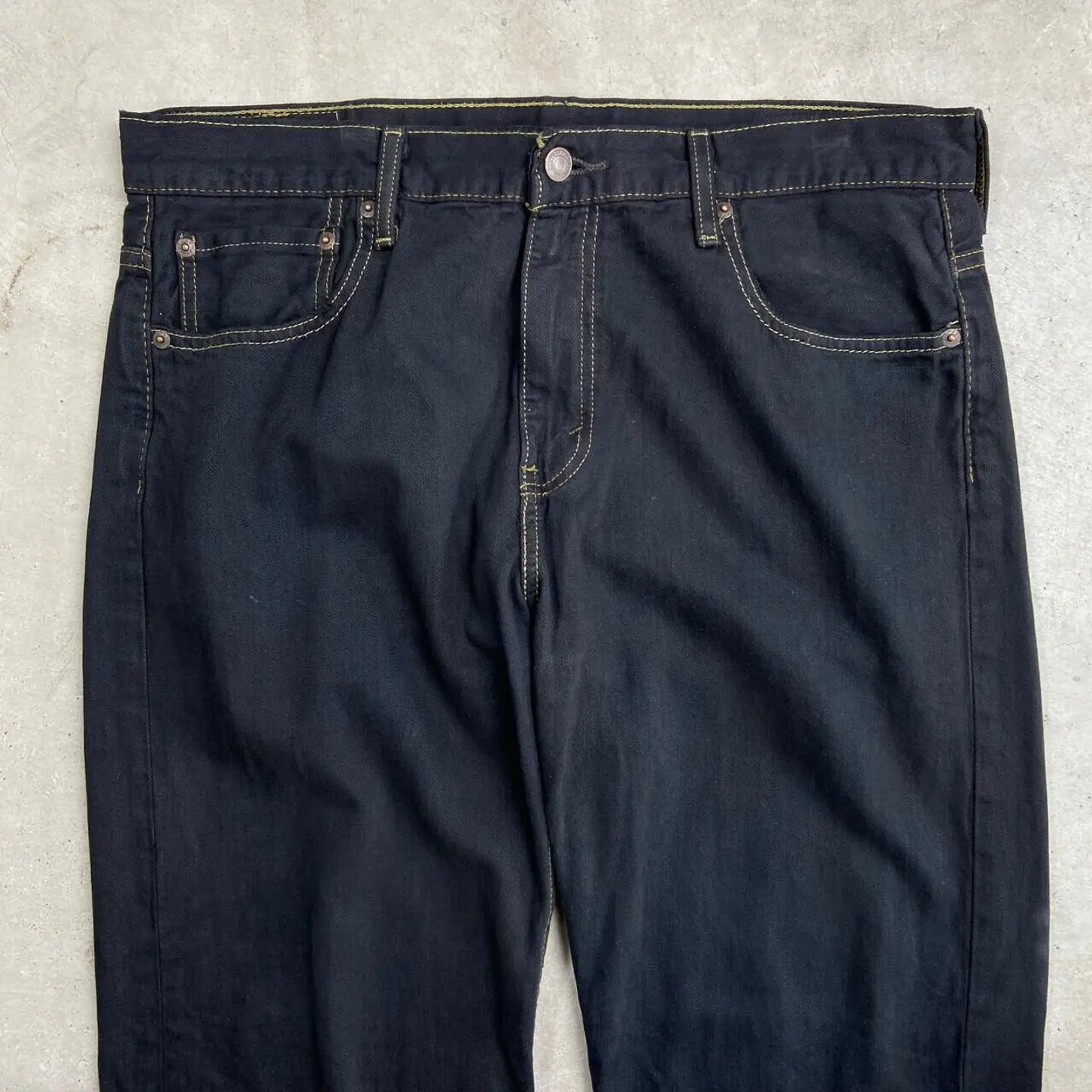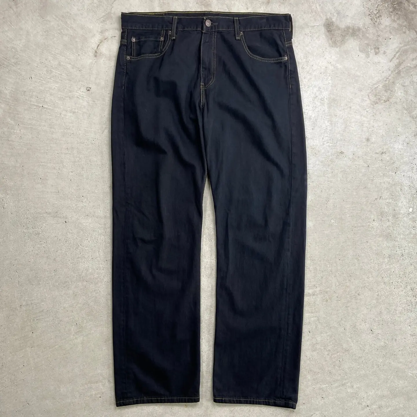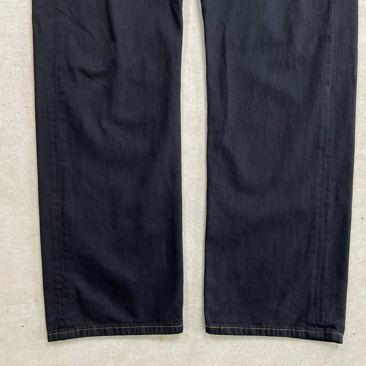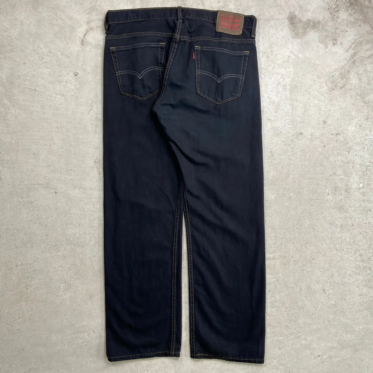 ■ Levi's リーバイス 559 ブラックデニムパンツ リラックスストレート 後染め メンズW35相当 古着 アメカジ ヴィンテージ VINTAGE ジーンズ ワイドデニム 黒色【デニムパンツ】/ブラック ◎シルバータブのLOOSEに近い 程よくバギーした太ストレートシルエット 価格的にシルバータブよりも買いやすく、 緩く履けるデニムをお探しの方にピッタリのモデル こちらはブラックに後染めを施しており、 古着で探すとなかなか無い太く履けるブラックデニムにカスタムしました 染まらずにに浮かび上がったステッチもポイントです 【ブランド】Levi's リーバイス ボタン裏刻印:4001 【サイズ】表記不明(実寸約W35 L31) ※計測値をご確認ください。 ウエスト(平置き×2)…90 ワタリ幅…33.5 股上…29 股下…79 裾幅…22 【生産国】不明 【素材】コットン100% 【状態】タグが一部欠損しています。 使用感による色褪せや擦れがございます。 画像にてご確認ください。 【c241127209】 ※古着は洗濯、検品などのケアを行っております。(新品・デッドストックは洗濯していません。) ※モニターの発色により実物と異なる場合がございます。予めご了承ください。 ※ 海外直輸入USED品になります。