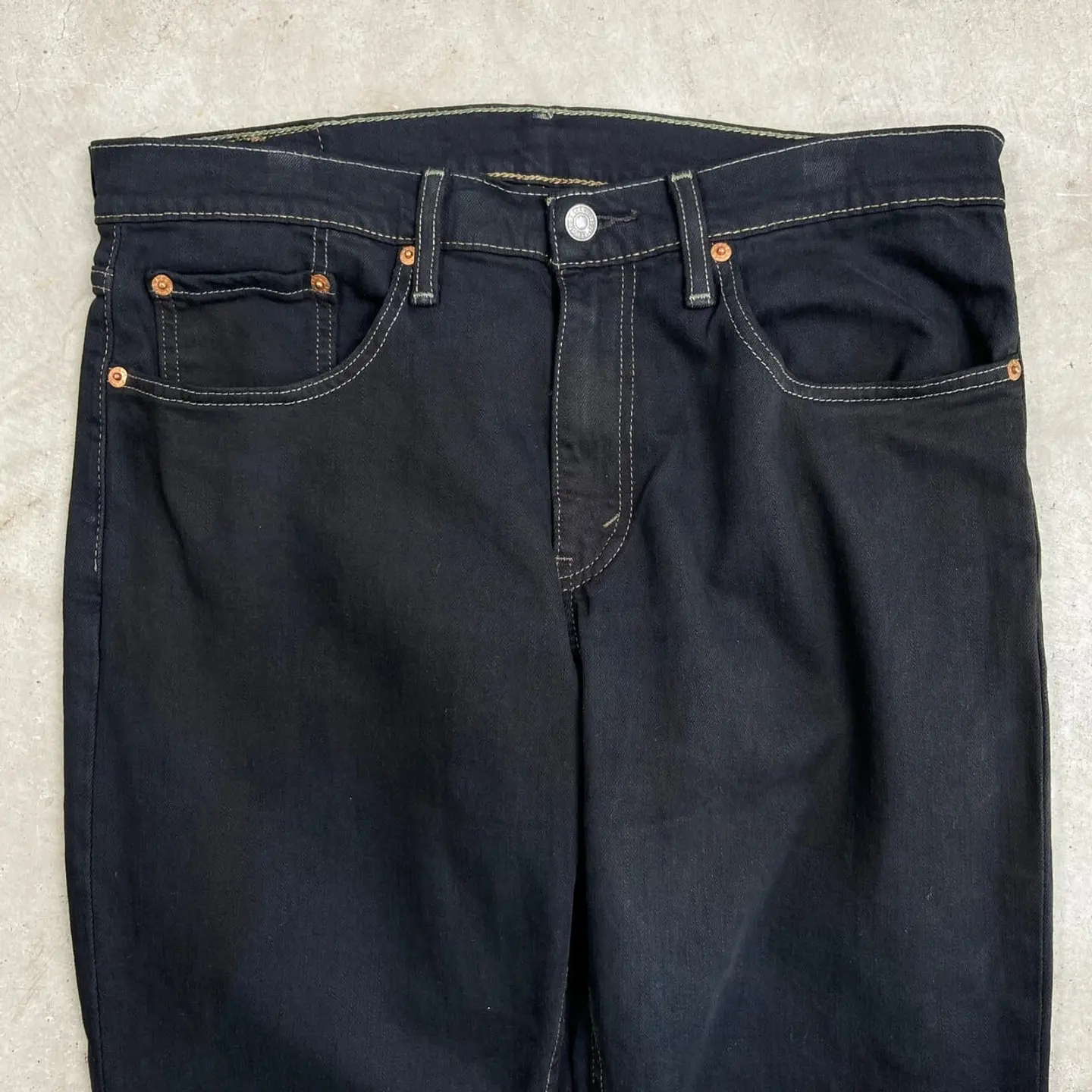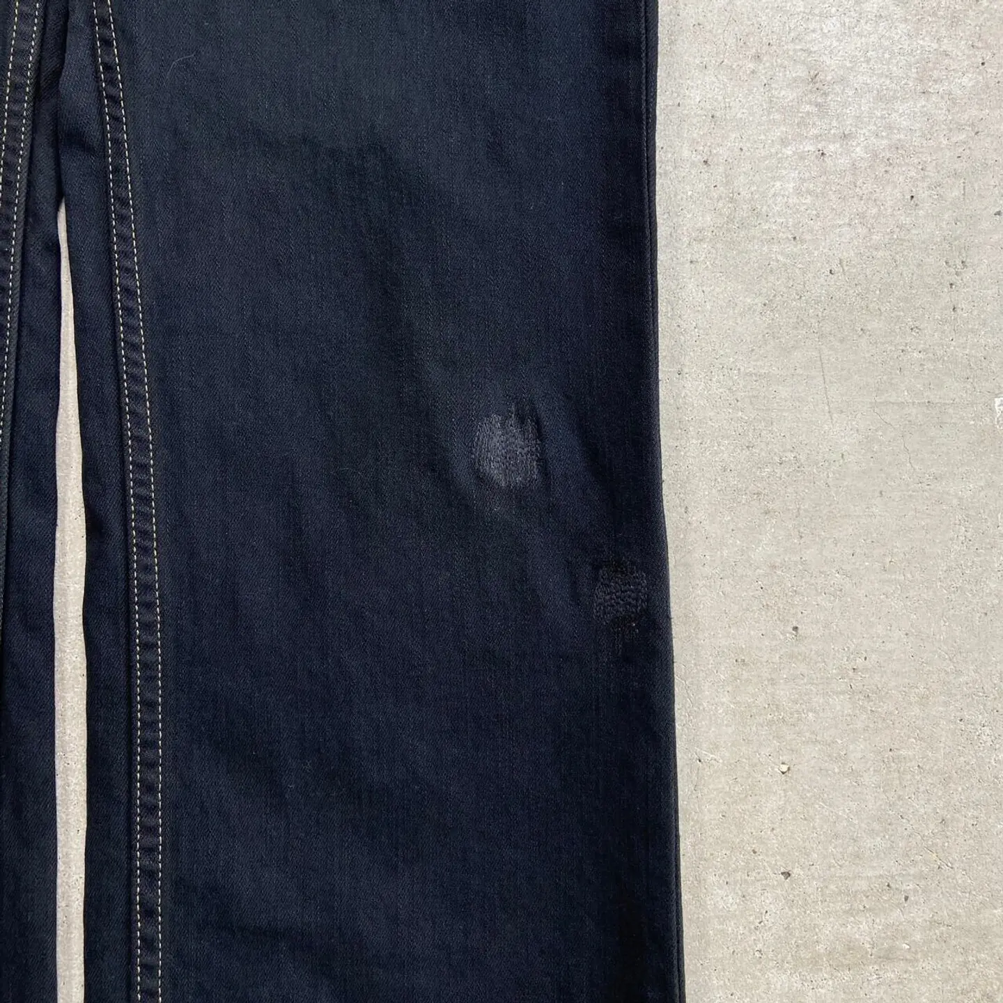 ■ Levi's リーバイス 559 ブラックデニムパンツ リラックスストレート 後染め メンズW32 古着 アメカジ ヴィンテージ VINTAGE ジーンズ ワイドデニム 黒色【デニムパンツ】/ブラック ◎シルバータブのLOOSEに近い 程よくバギーした太ストレートシルエット 価格的にシルバータブよりも買いやすく、 緩く履けるデニムをお探しの方にピッタリのモデル こちらはブラックに後染めを施しており、 古着で探すとなかなか無い太く履けるブラックデニムにカスタムしました 染まらずにに浮かび上がったステッチもポイントです 【ブランド】Levi's リーバイス ボタン裏刻印:4051 【サイズ】表記 W32 L32 ※計測値をご確認ください。 ウエスト(平置き×2)…84 ワタリ幅…32.5 股上…27 股下…78 裾幅…22 【生産国】コロンビア製 【素材】コットン100% 【状態】フロント膝部分にリペア跡があります。 画像にてご確認ください。 【c241127208】 ※古着は洗濯、検品などのケアを行っております。(新品・デッドストックは洗濯していません。) ※モニターの発色により実物と異なる場合がございます。予めご了承ください。 ※ 海外直輸入USED品になります。
