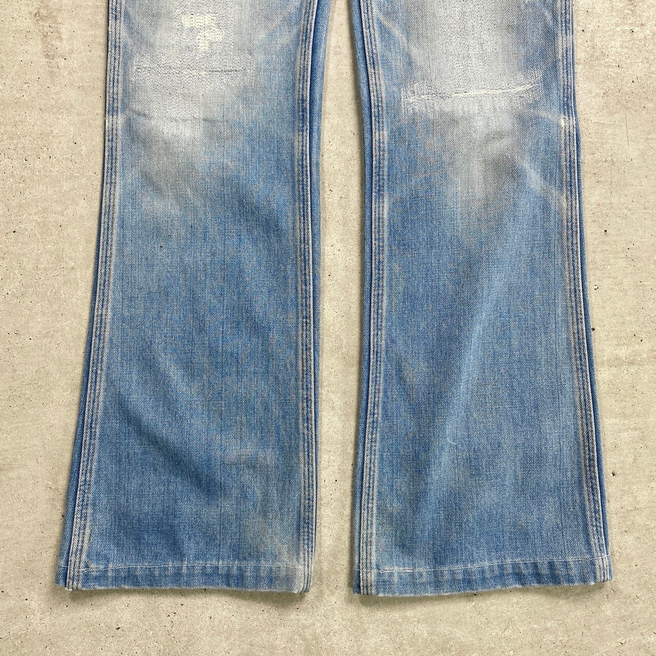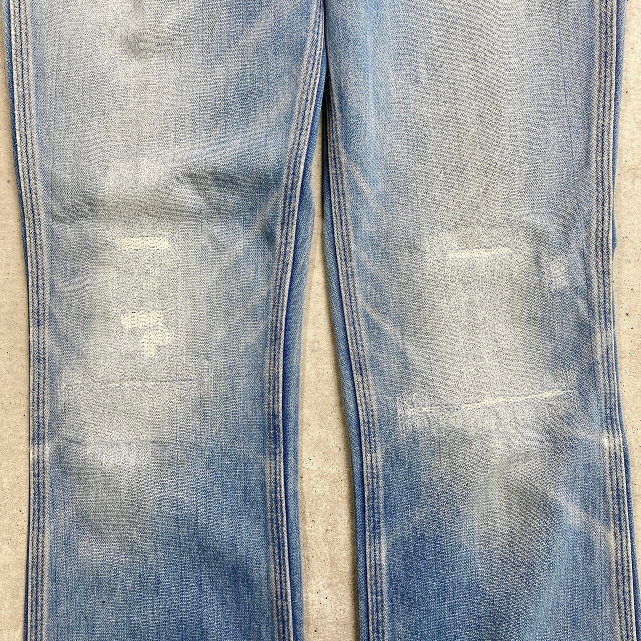 ■70年代 USA製 Wrangler ラングラー フレアデニムパンツ ブーツカット 945 IDEAL カムロック メンズW28 レディース 古着 70s ヴィンテージ VINTAGE アメカジ 青色【デニムパンツ】/ブルー 【ブランド】Wrangler 【サイズ】表記 不明 ※計測値をご確認ください。 ウエスト(平置き×2)…70 ワタリ幅…28 股上…30 股下…82 裾幅…22.5 【生産国】USA製 【素材】表記不明 【状態】膝にリペア、タタキが御座います。 また全体的に色あせや汚れ、擦れが御座います。 画像にてご確認ください。 【c241127060】 ※古着は洗濯、検品などのケアを行っております。(新品・デッドストックは洗濯していません。) ※モニターの発色により実物と異なる場合がございます。予めご了承ください。 ※ 海外直輸入USED品になります。