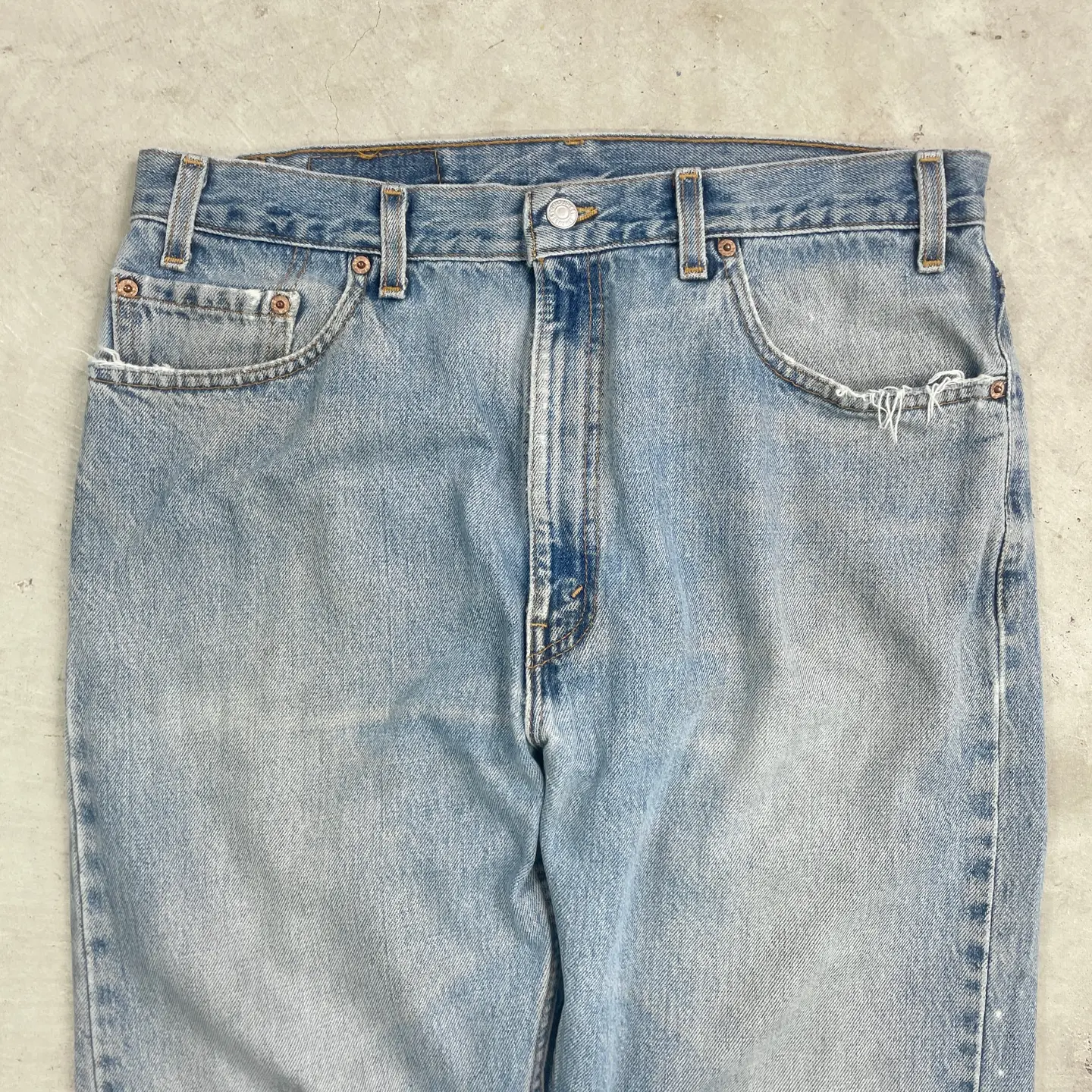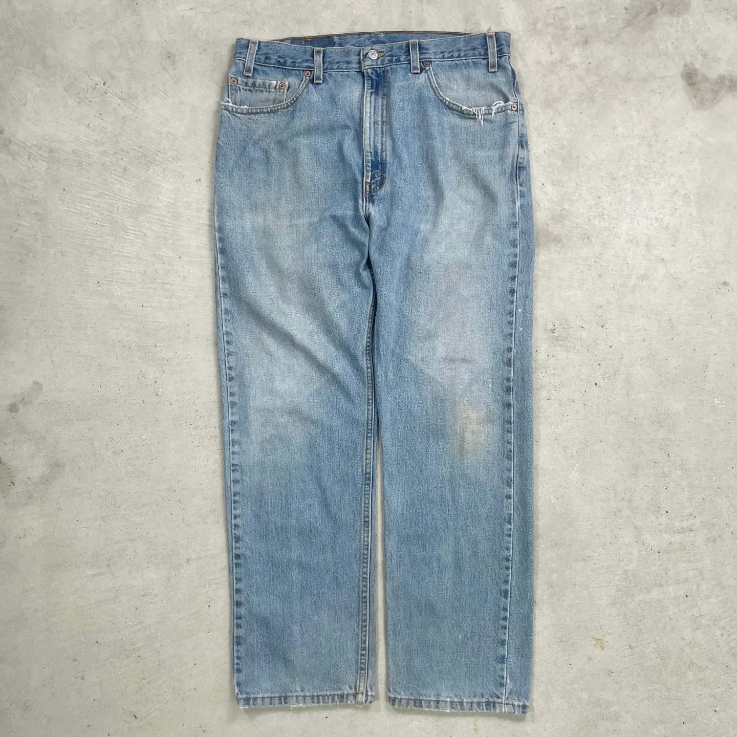 ■00年代 USA製 Levi's リーバイス 505 デニムパンツ メンズW38 古着 アメカジ 00s Y2K ヴィンテージ VINTAGE ジーンズ 大きいサイズ BIGSIZE【デニムパンツ】/ブルー 【ブランド】Levi's リーバイス ボタン裏刻印:5HM 【サイズ】表記 W38 L30 ※計測値をご確認ください。 ウエスト(平置き×2)…88 ワタリ幅…35 股上…34.5 股下...78 裾幅…21.5 【生産国】USA製 【素材】コットン100% 【状態】全体的に汚れが御座います。また正面膝付近にタタキによるリペア跡が御座います。 ポケットや裾などにも多少のダメージが御座います。 画像にてご確認ください。 【c241125107】 ※古着は洗濯、検品などのケアを行っております。(新品・デッドストックは洗濯していません。) ※モニターの発色により実物と異なる場合がございます。予めご了承ください。 ※ 海外直輸入USED品になります。
