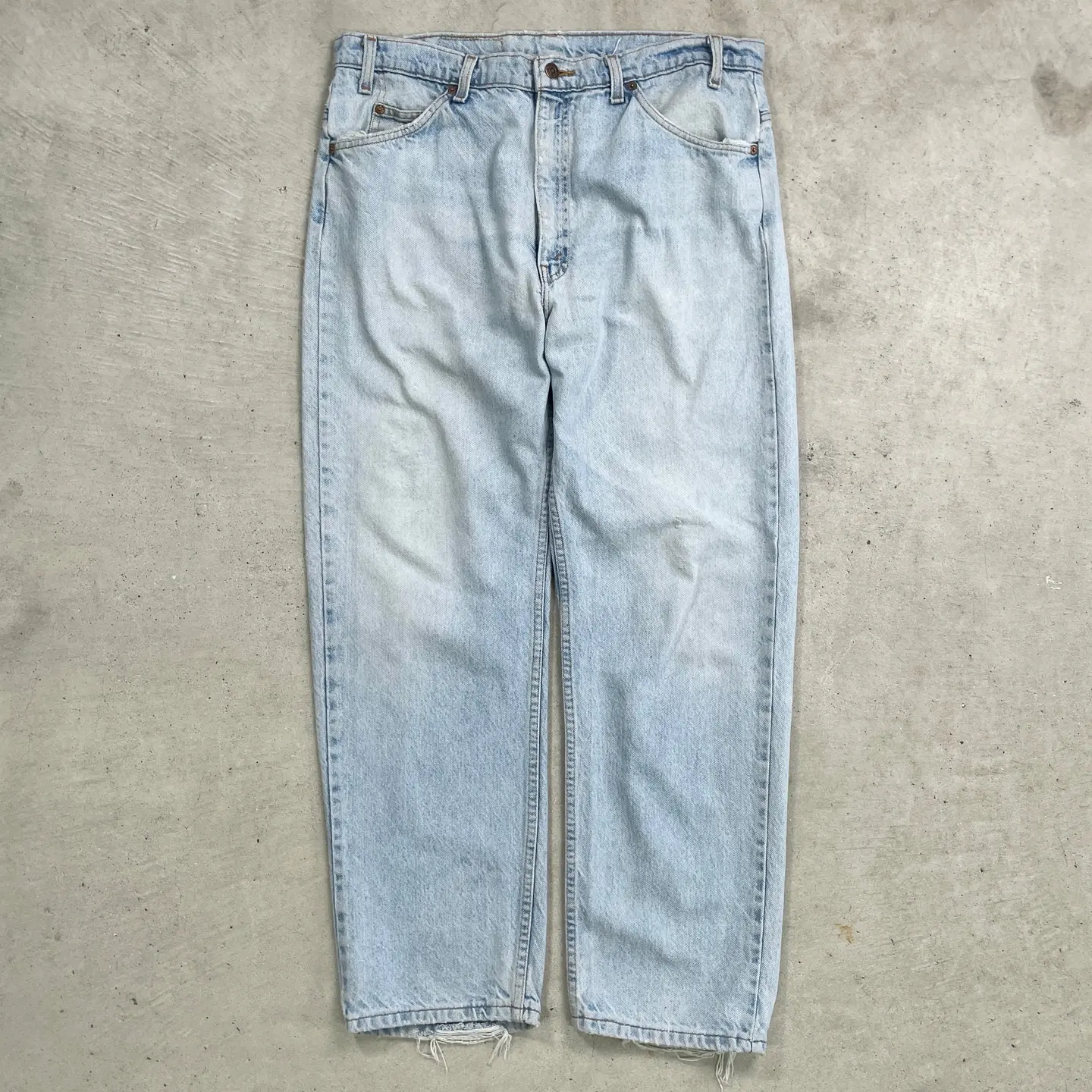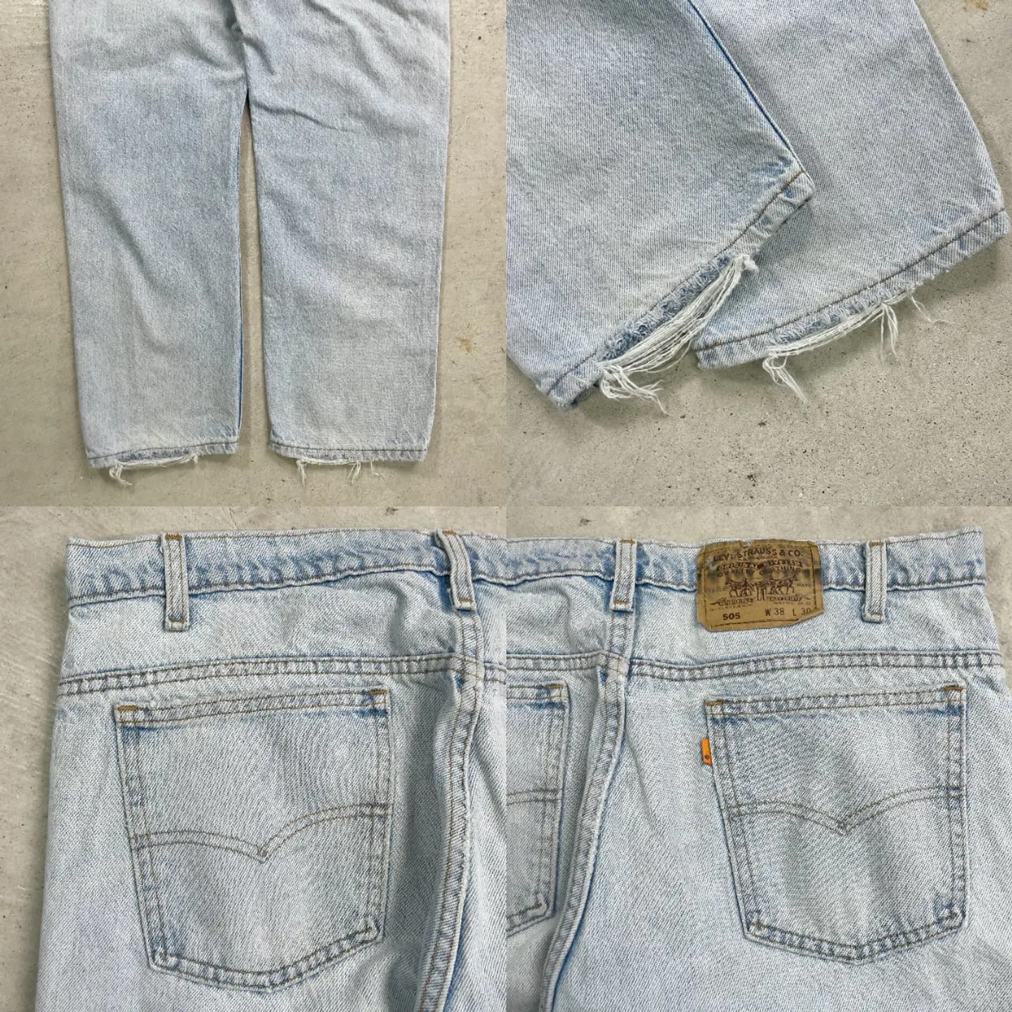 ■80~90年代 USA製 Levi's リーバイス 505 テーパード デニムパンツ オレンジタブ メンズW38 古着 80s ヴィンテージ VINTAGE アメカジ ジーンズ ビッグサイズ 大きいサイズ【デニムパンツ】/ブルー 【ブランド】Levi's リーバイス ◎内タグの表記は御座いいませんが、紙パッチやボタン裏刻印、ジップから年代を判別しております。 【サイズ】表記 W38 L30 ボタン裏刻印:968 裾上げされております。 ※計測値をご確認ください。 ウエスト(平置き×2)…92 ワタリ幅…32.5 股上…30.5 股下…75.5 裾幅…20 【生産国】USA製 【素材】コットン100% 【状態】全体的に色あせが御座います。また膝や股下、ポケット、裾部分などに多少のダメージが御座います。 画像にてご確認ください。 【c241125105】 ※古着は洗濯、検品などのケアを行っております。(新品・デッドストックは洗濯していません。) ※モニターの発色により実物と異なる場合がございます。予めご了承ください。 ※ 海外直輸入USED品になります。