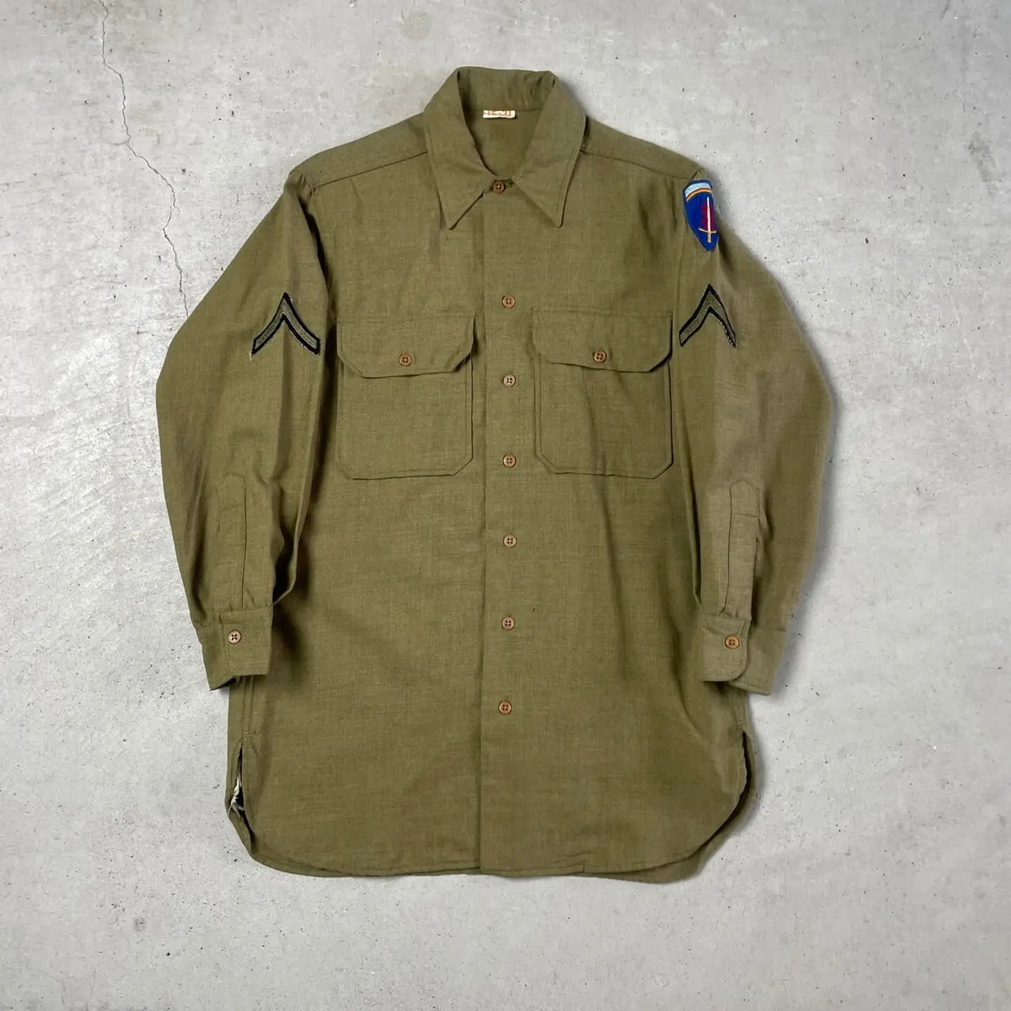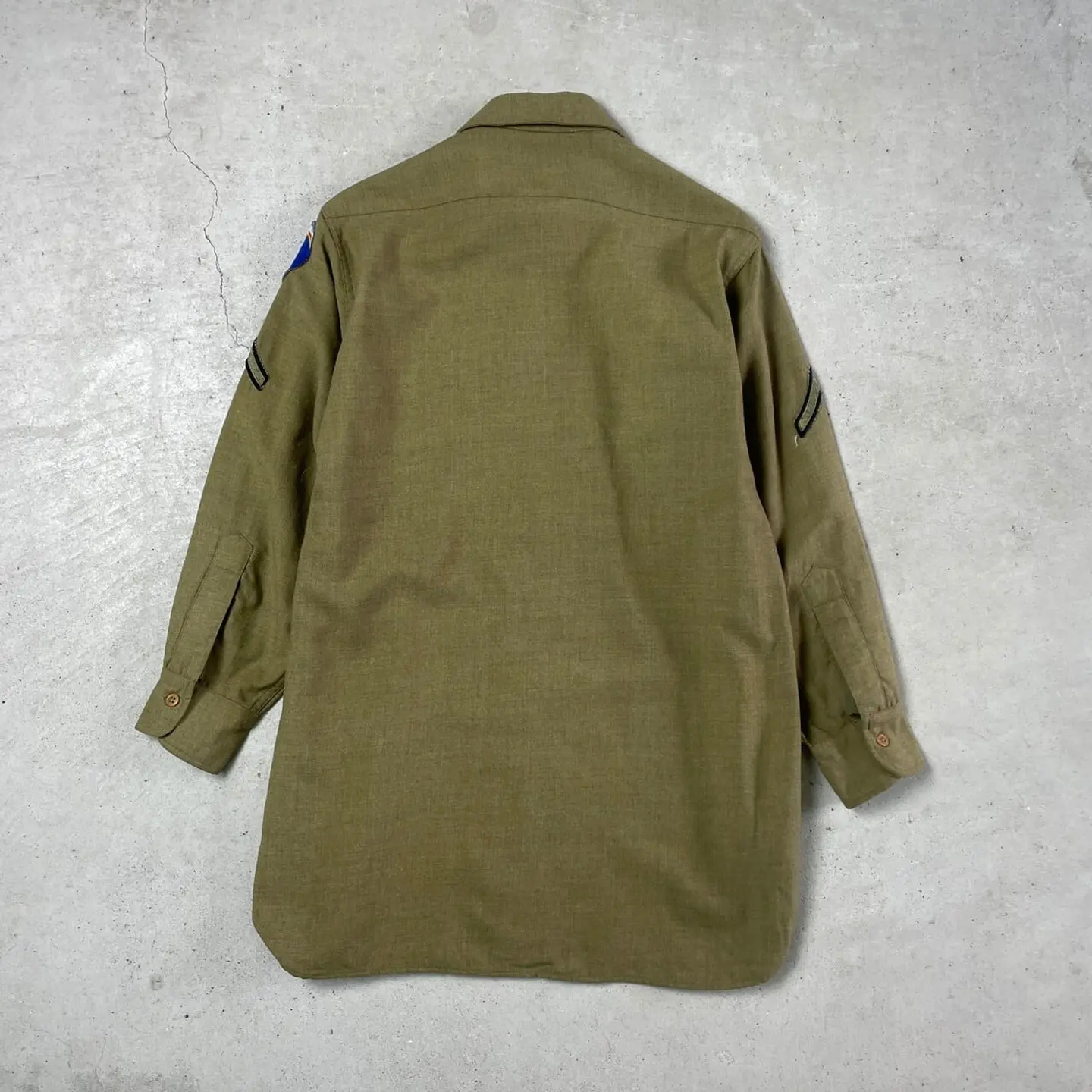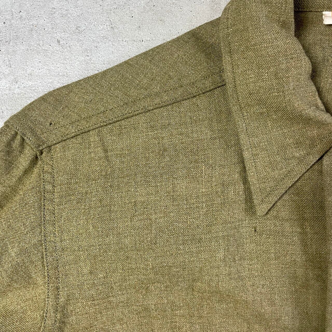 ■40年代 U.S.ARMY 米軍実品 ウール ミリタリーシャツ マスタードシャツ ガスフラップ マチ付き メンズM相当 古着 40s ヴィンテージ VINTAGE ワッペン カーキグリーン ブラウン 【長袖シャツ】/ブラウン 【サイズ】 表記 15-31 袖のマチは御座いますが、裾のマチは御座いません。 ※計測値をご確認ください。 着丈…81 身幅…55 肩幅…45 袖丈…53.5 【素材】不明(おそらくウールかと思われます。) 【状態】裾や肩に小穴が御座います。また多少の色あせや毛玉、シミが御座います。 ガスフラップは取り外されております。 画像にてご確認ください。 【c241125042】 ※古着は洗濯、検品などのケアを行っております。(新品・デッドストックは洗濯していません。) ※モニターの発色により実物と異なる場合がございます。予めご了承ください。 ※ 海外直輸入USED品になります。