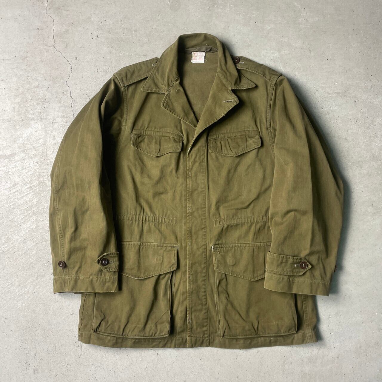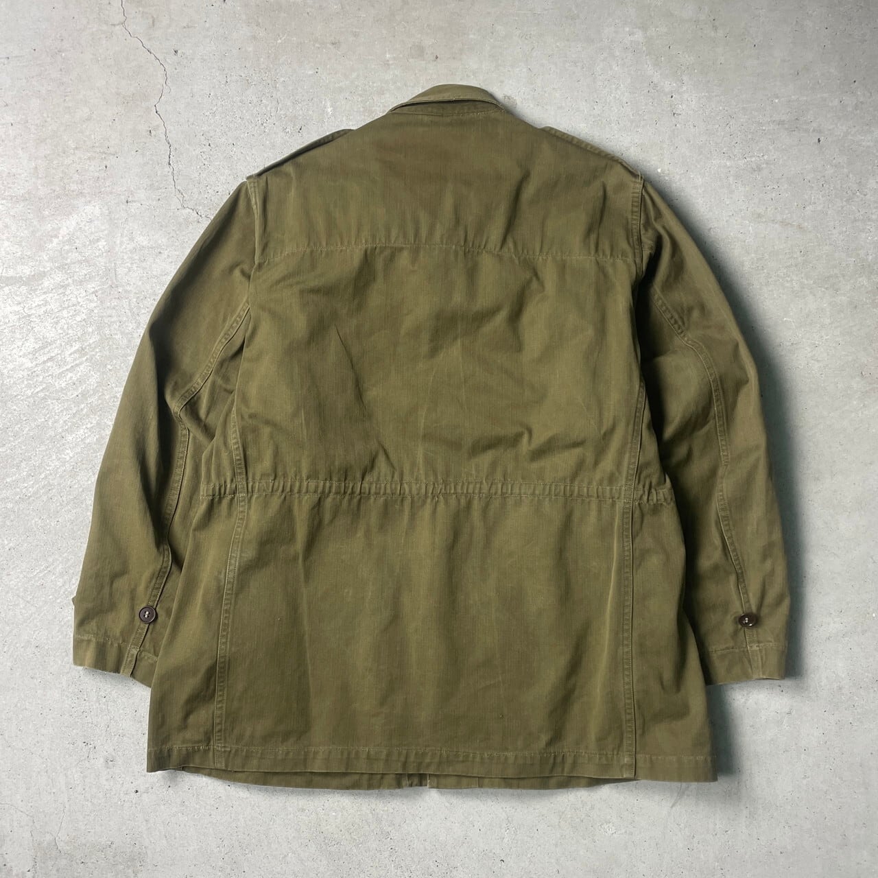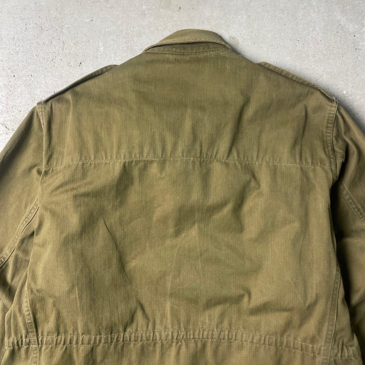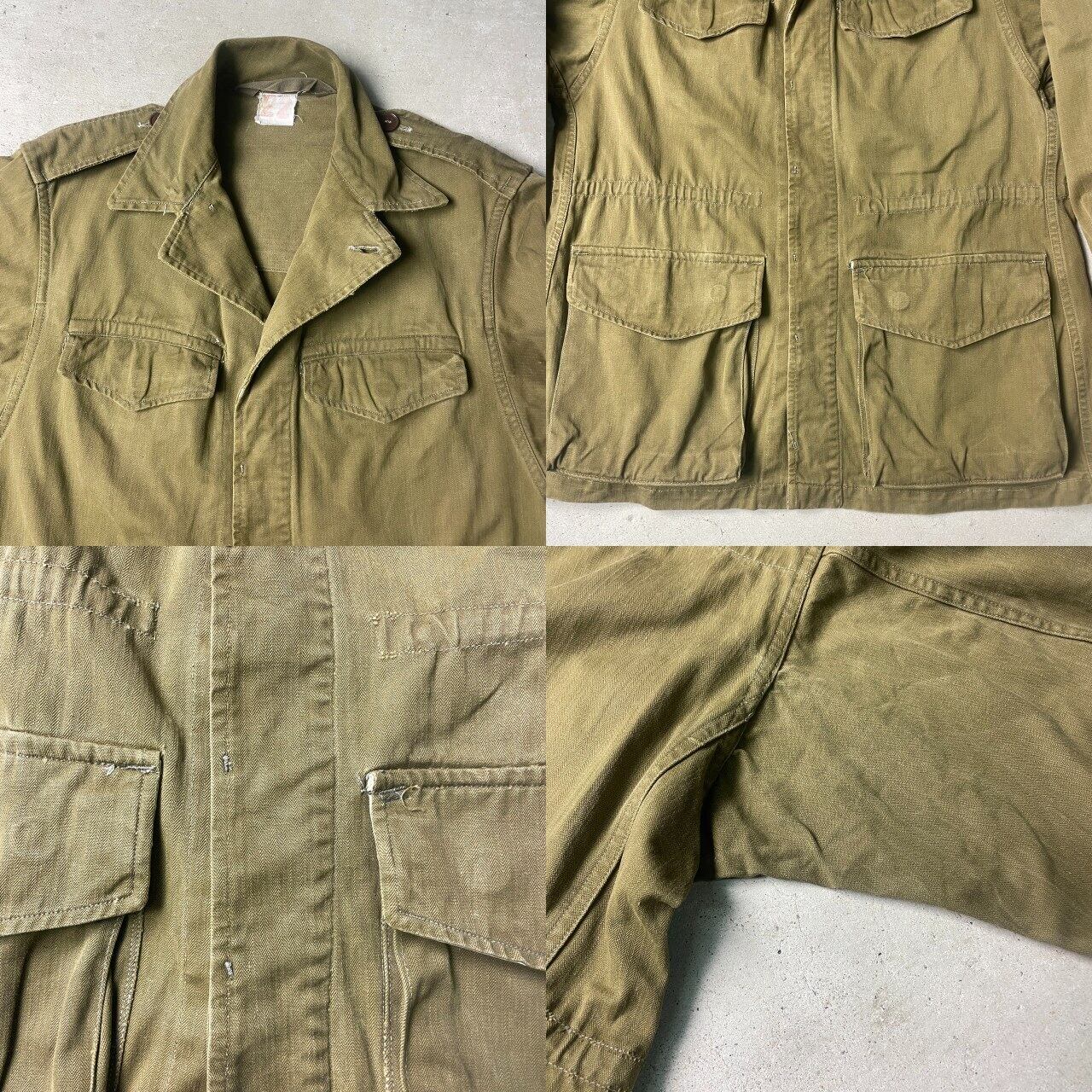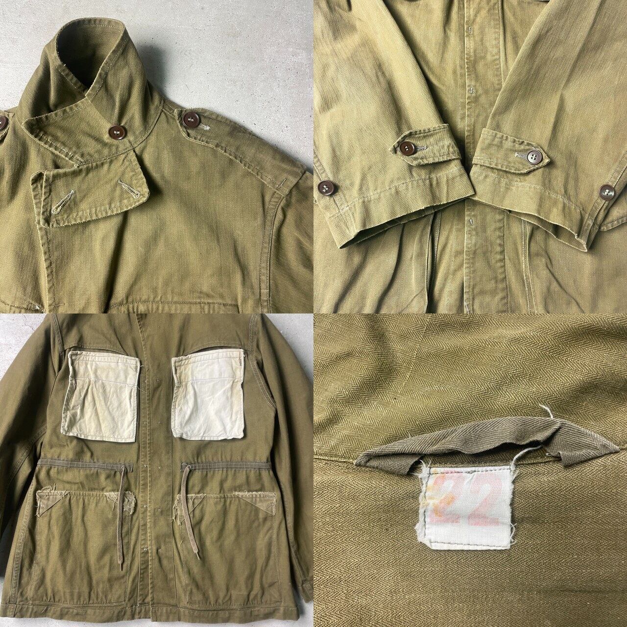■50年代 フランス軍 M-47 フィールドジャケット 後期型 HBT ユーロミリタリージャケット メンズS-M相当 古着 50s ヘリンボーンツイル ヴィンテージ VINTAGE ブラウン系 ブラウンカーキ 【ミリタリージャケット】/ブラウン 【サイズ】表記 22(着用感メンズM相当) ※計測値をご確認ください。 着丈…73 身幅…56.5 肩幅…45 袖丈...56 【生産国】不明 【素材】不明(おそらくコットンかと思われます。) 【状態】全体的に擦れや色あせが御座います。 右下ポケットのボタンが変更されております。 画像にてご確認ください。 【c241125034】 ※古着は洗濯、検品などのケアを行っております。(新品・デッドストックは洗濯していません。) ※モニターの発色により実物と異なる場合がございます。予めご了承ください。 ※ 海外直輸入USED品になります。