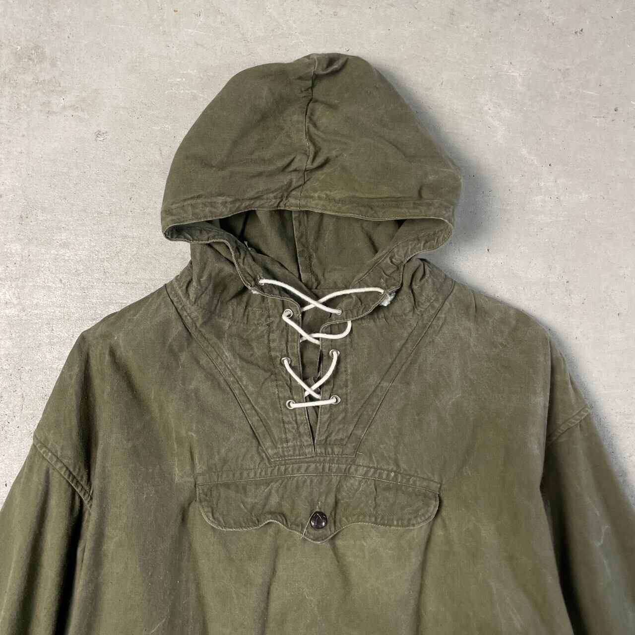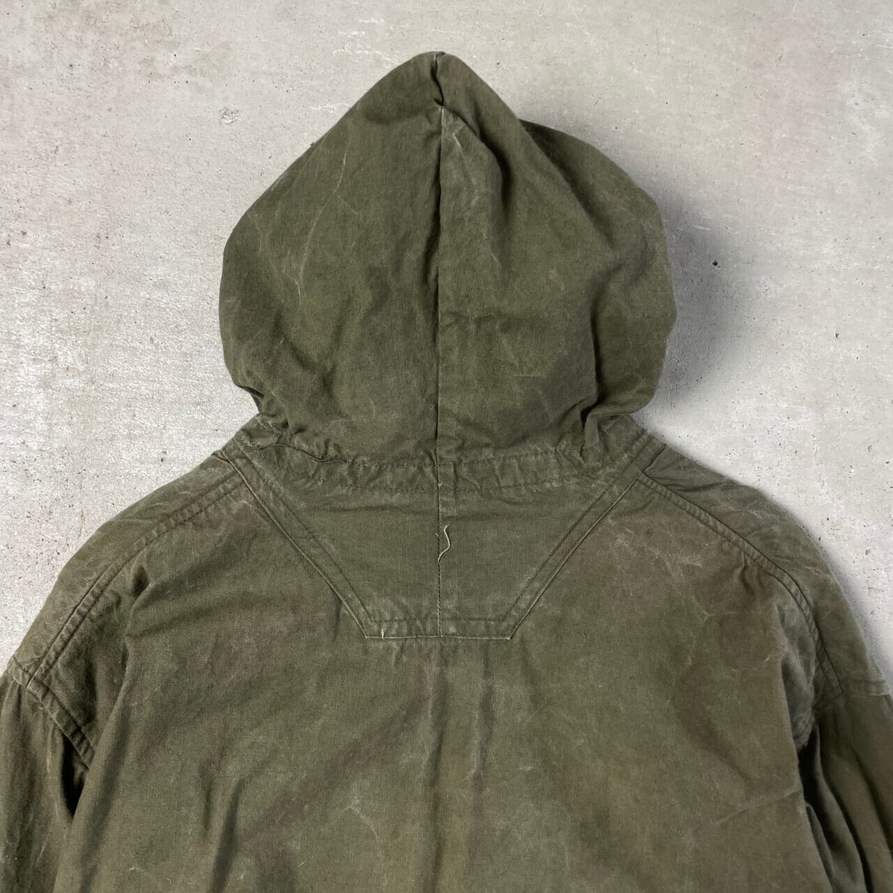 ■~50年代 ブルガリア軍 コットンアノラックパーカー ハイキングスモック 山岳部隊 メンズM-L相当 古着 40s 50s ヴィンテージ VINTAGE ユーロミリタリージャケット スモックパーカー カーキグリーン 【ミリタリージャケット】/カーキグリーン 【サイズ】表記 60 Ⅳ(計測値メンズM-L相当) ※計測値をご確認ください。 着丈…74.5 身幅…59.5 肩幅…54.5 袖丈…57.5 【生産国】不明 【素材】不明(おそらくコットンかと思われます。) 【状態】袖口にリペア痕が御座います。 またシミ汚れ、裾付近や袖に毛玉や擦れによるダメージが御座います。 画像にてご確認ください。 【c241125033】 ※古着は洗濯、検品などのケアを行っております。(新品・デッドストックは洗濯していません。) ※モニターの発色により実物と異なる場合がございます。予めご了承ください。 ※ 海外直輸入USED品になります。