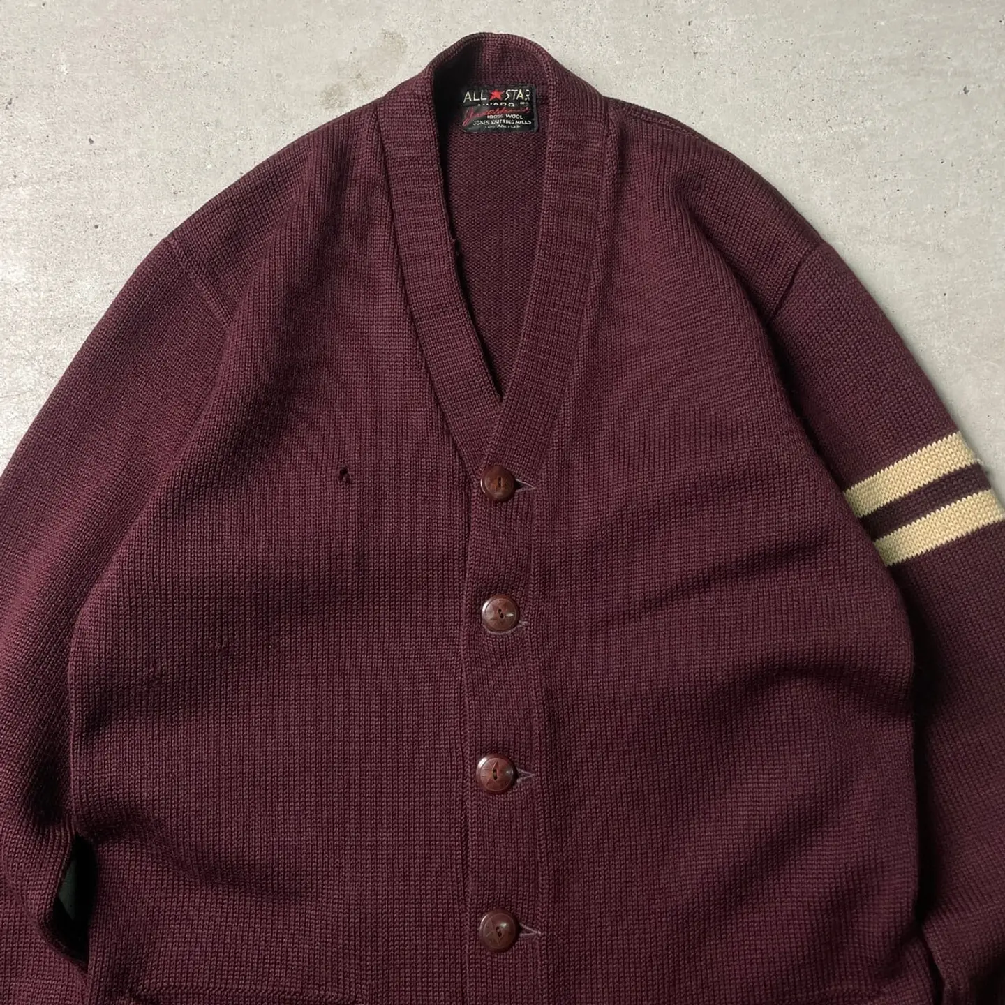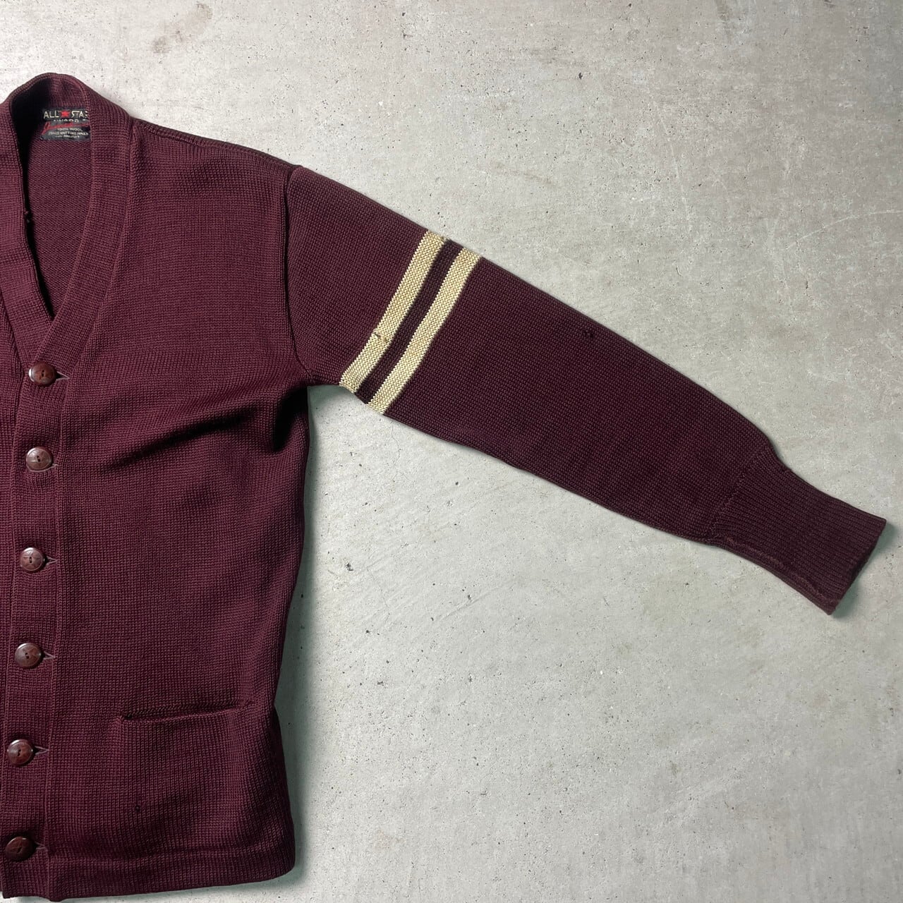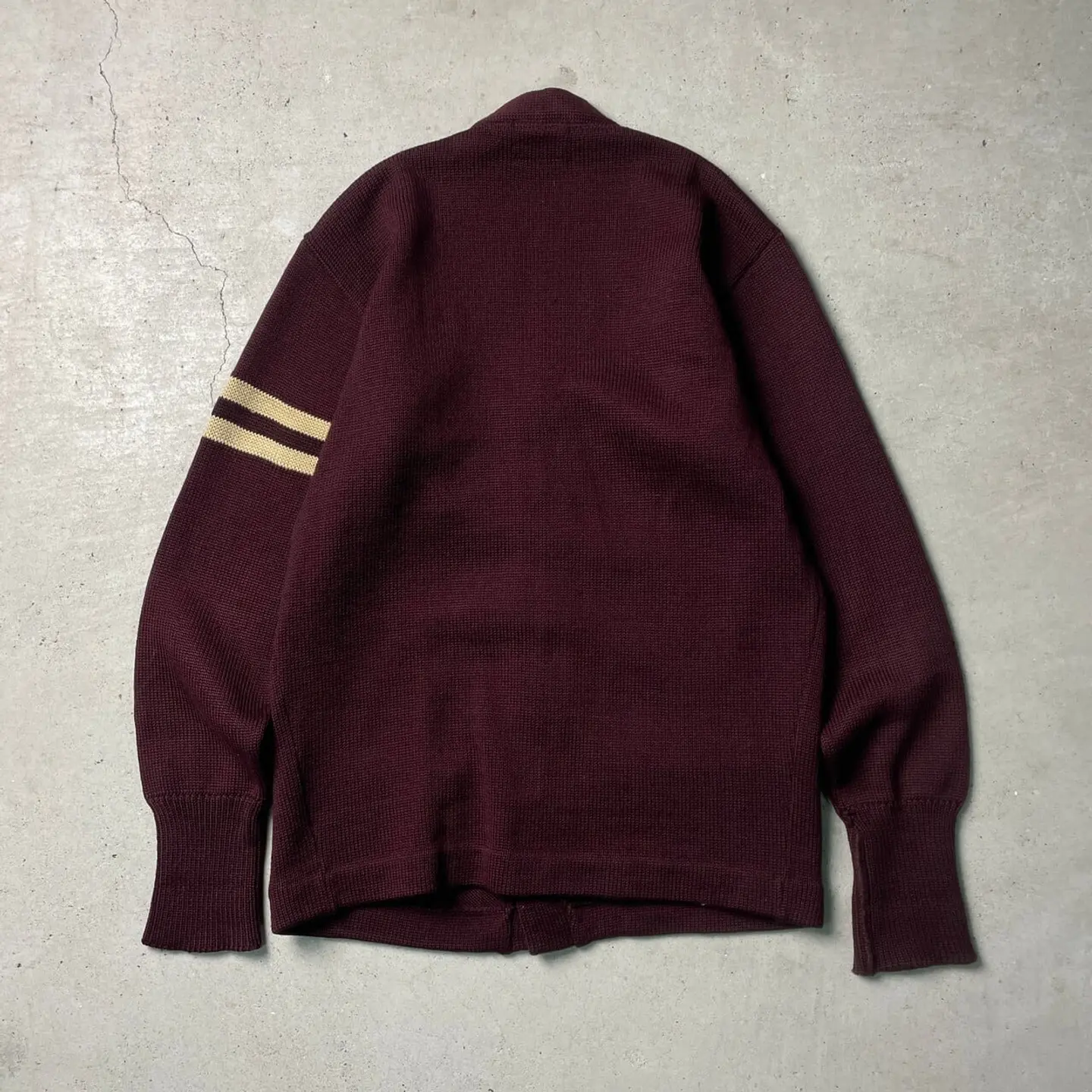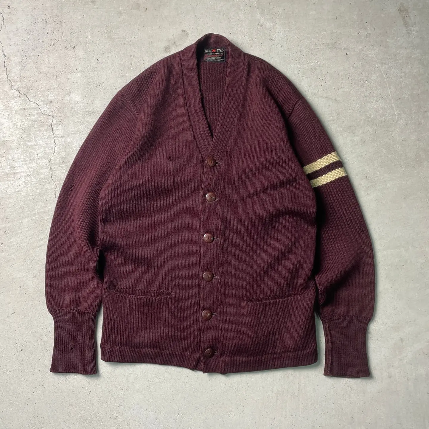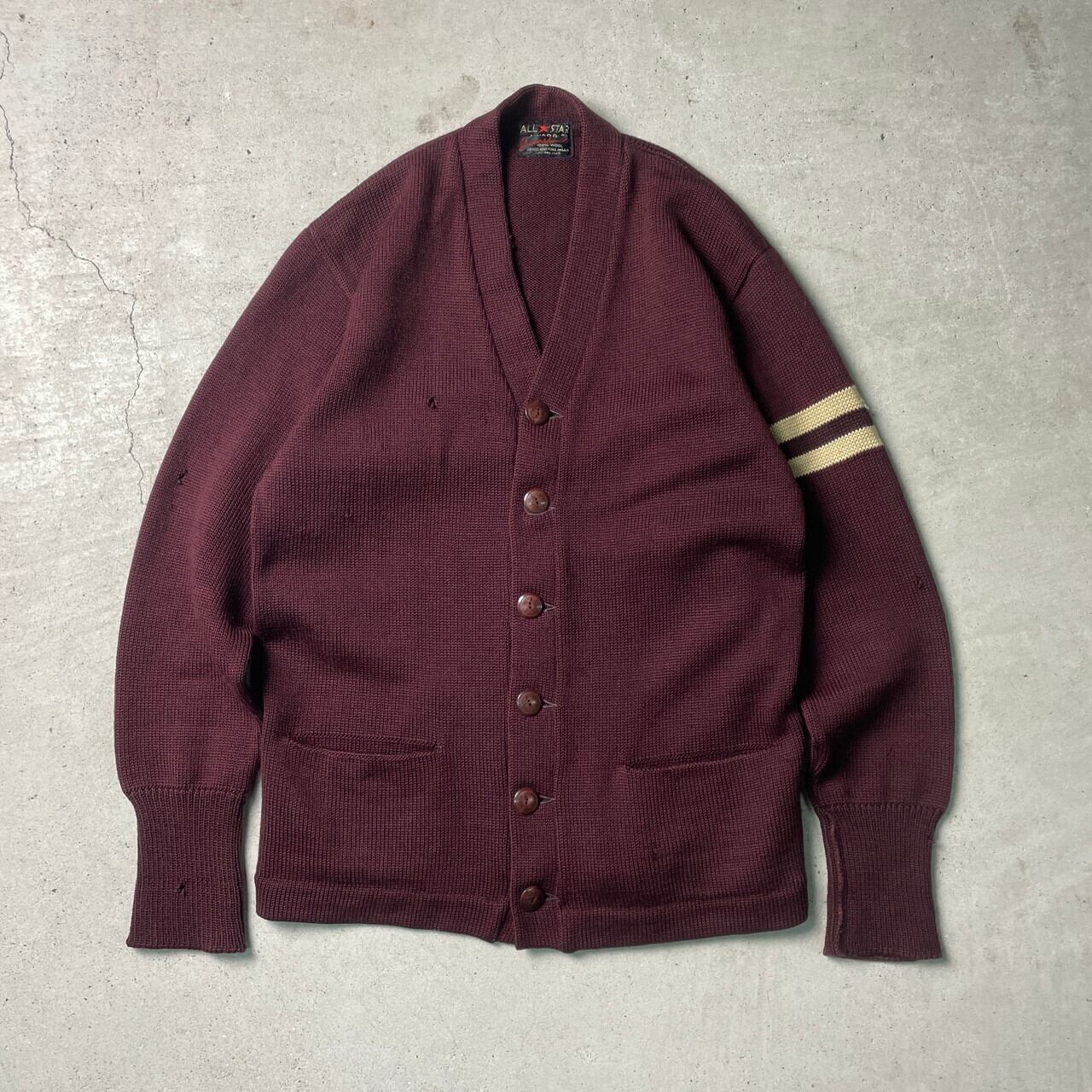 ■50年代 ALL STAR AWARD ウール レタードカーディガン メンズM相当 古着 50s ヴィンテージ VINTAGE バーガンディー ボルドー エンジ色【ニットセーター】/ワインレッド 【ブランド】ALL STAR AWARD 【サイズ】表記 不明 着用感メンズM相当 ※計測値をご確認ください。 着丈…67 身幅…53 肩幅…47 袖丈…60(リブ含む12㎝) 【生産国】USA製 【素材】ウール100% 【状態】右胸、右脇腹、右腕、右リブ、左腕ライン箇所にダメージが御座います。 画像にてご確認ください。 【c241125006】 ※古着は洗濯、検品などのケアを行っております。(新品・デッドストックは洗濯していません。) ※モニターの発色により実物と異なる場合がございます。予めご了承ください。 ※ 海外直輸入USED品になります。