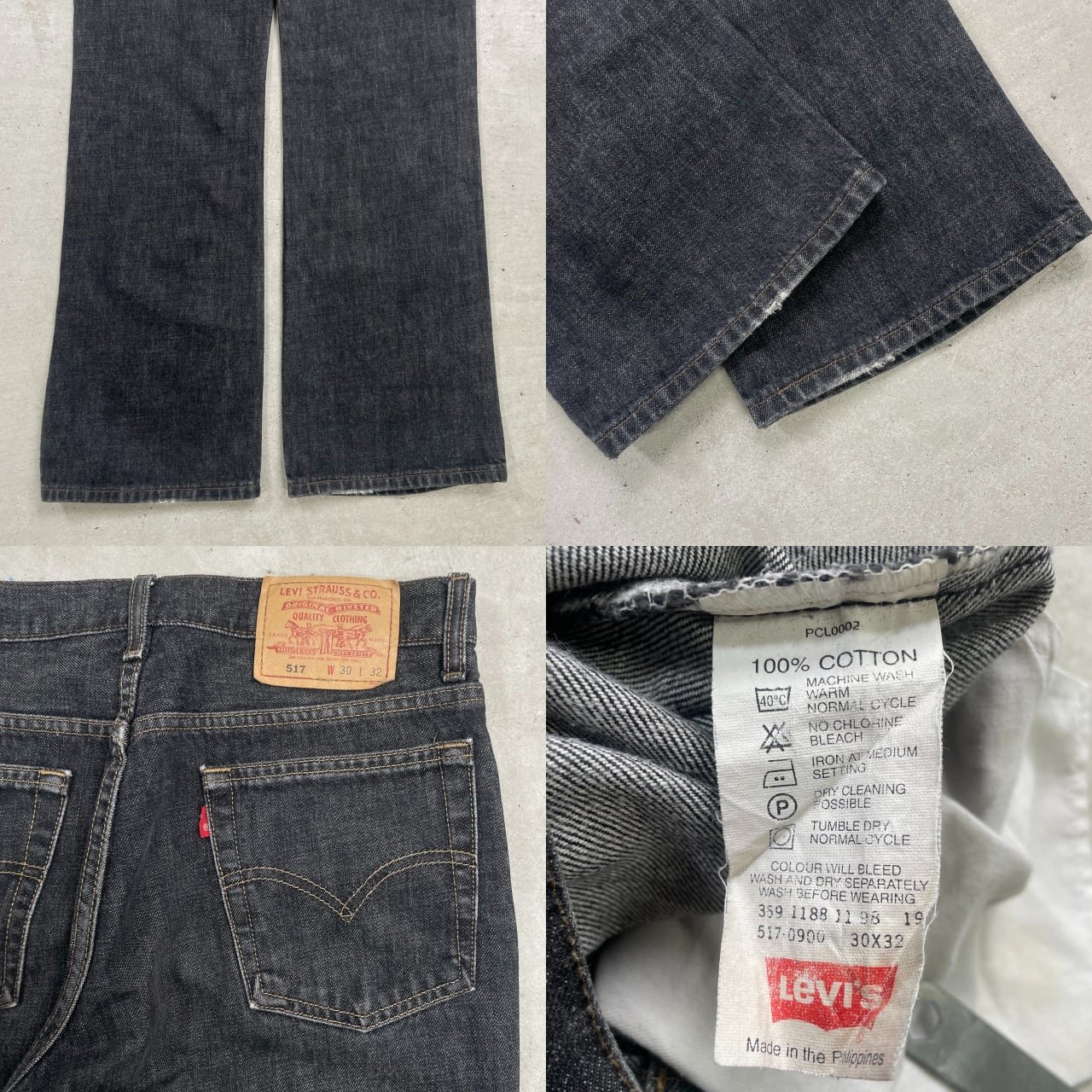 ■ 90年代 Levi's リーバイス 517 0900 ブラックデニムパンツ フレアデニムパンツ メンズW30 古着 90s ヴィンテージ VINTAGE アメカジ ブーツカット 先染め ジーンズ 黒 【デニムパンツ】/ブラック 【ブランド】Levi's リーバイス ボタン裏刻印:359 【サイズ】表記 W30 L32 ※計測値をご確認ください。 ウエスト(平置き×2)…74 ワタリ幅…29.5 股上…28 股下…79 裾幅…21.5 【生産国】フィリピン製 【素材】コットン100% 【状態】股下付近に若干の擦れがあります。 画像にてご確認ください。 【c241123219】 ※古着は洗濯、検品などのケアを行っております。(新品・デッドストックは洗濯していません。) ※モニターの発色により実物と異なる場合がございます。予めご了承ください。 ※ 海外直輸入USED品になります。