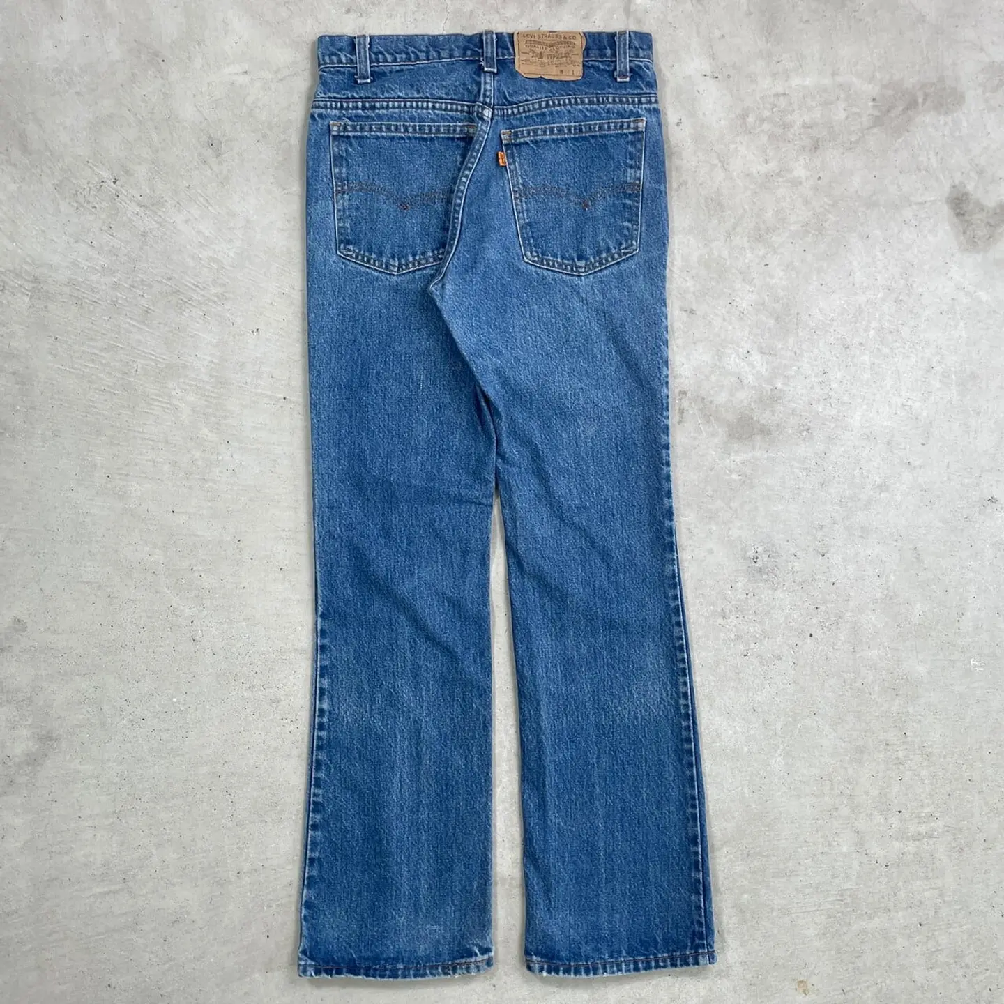 ■ 80年代 USA製 Levi's リーバイス 20517-0217 BOOT CUT ブーツカット フレアデニムパンツ メンズW30 メンズ 古着 80s ヴィンテージ VINTAGE アメカジ オレンジタブ ジーンズ 青【デニムパンツ】/ブルー 【ブランド】Levi's リーバイス 【サイズ】表記 W30 L33(実寸約L31) ※裾上げされています。 ※計測値をご確認ください。 ウエスト(平置き×2)…74 ワタリ幅…27.5 股上…27 股下...79 裾幅…21 【生産国】USA製 【素材】コットン100% 【状態】全体的に使用感による色あせや擦れがございます。 フロント左ひざにシミ汚れがあります。 画像にてご確認ください。 【c241123217】 ※古着は洗濯、検品などのケアを行っております。(新品・デッドストックは洗濯していません。) ※モニターの発色により実物と異なる場合がございます。予めご了承ください。 ※ 海外直輸入USED品になります。