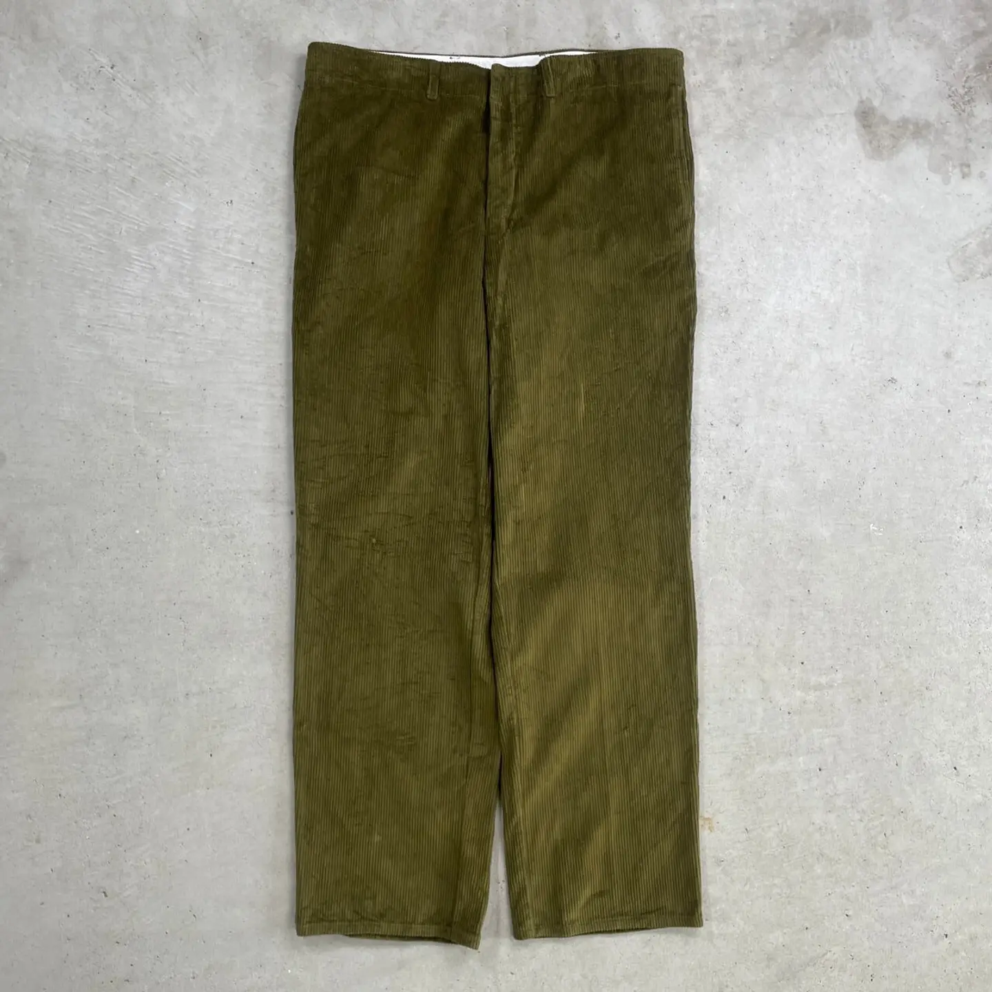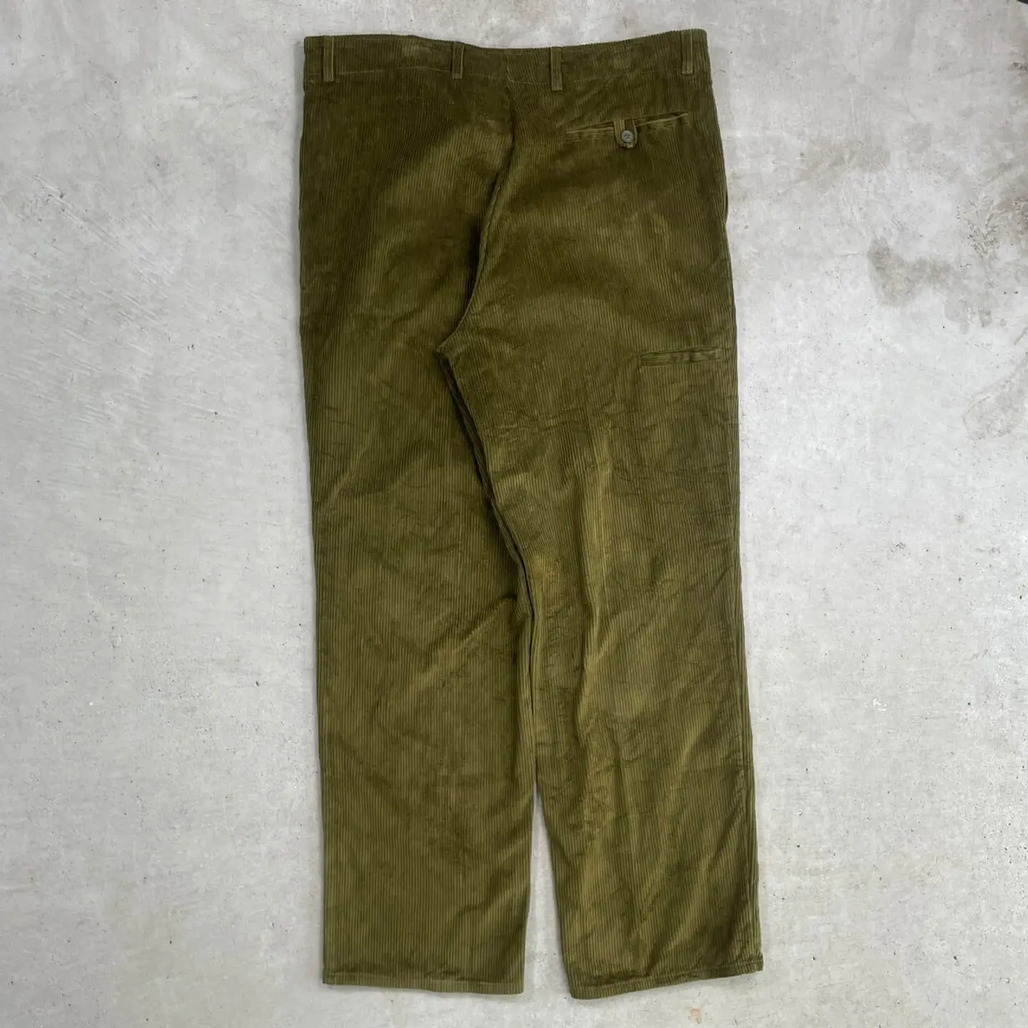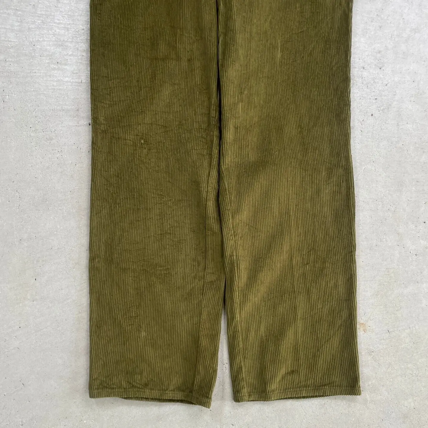 ■ UNKNOWN ユーロ 太畝 ワイド コーデュロイパンツ メンズW38相当 古着 ボタンフライ オリーブグリーン【コーデュロイパンツ】/グリーン 【サイズ】ユーロ表記 52 (計測値W38 L30) ※計測値をご確認ください。 ウエスト(平置き×2)…96 ワタリ幅…34 股上…31.5 股下…76 裾幅…23 【生産国】不明 【素材】コットン89% ポリエステル11% 【状態】全体的に使用感による色あせや擦れがございます。 フロント膝付近に若干のダメージがあります。 画像にてご確認ください。 【c241121204】 ※古着は洗濯、検品などのケアを行っております。(新品・デッドストックは洗濯していません。) ※モニターの発色により実物と異なる場合がございます。予めご了承ください。 ※ 海外直輸入USED品になります。