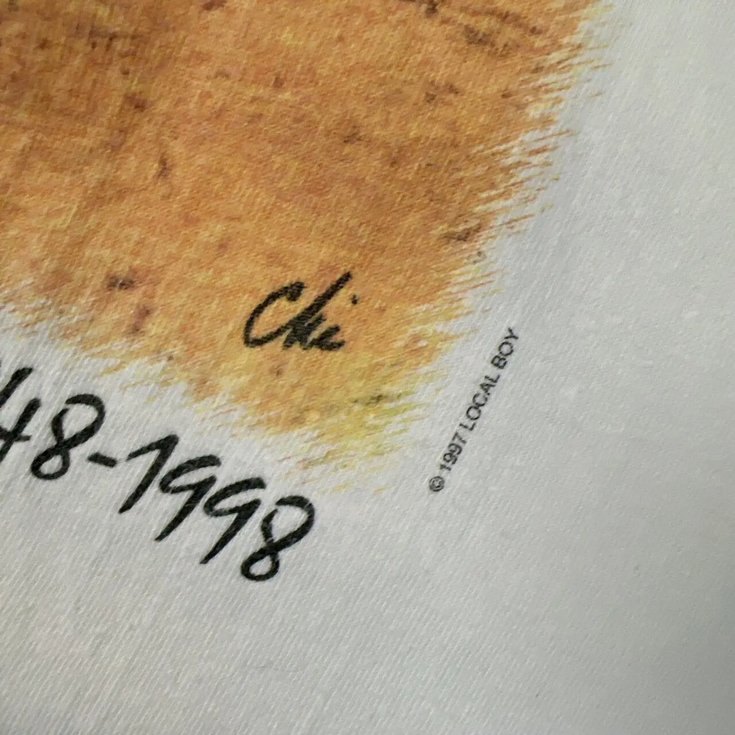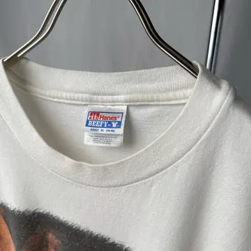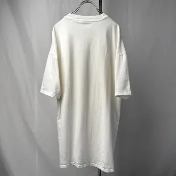 ブランド【Hanes】 ● 商品説明 このヘインズのビンテージ古着Tシャツは、レトロスタイルなアイテムです。白いベースカラーに、90年代のプリントが施されています。 ● 商品サイズ ・ 表記サイズ : XL ・ 参考サイズ メンズ : XL レディース : 4XL ・ 実寸(単位:cm) 肩幅 : 56 身幅 : 58 着丈 : 73 袖丈 : 21 裄丈 : ※参考サイズは、当店設定の日本人向けサイズです。 ● 素材 綿 100% ● カラー 白 ● 商品状態ランク:B★ 【 追記 】 : 着用感・前面に擦れ穴と若干の汚れ・画像参照