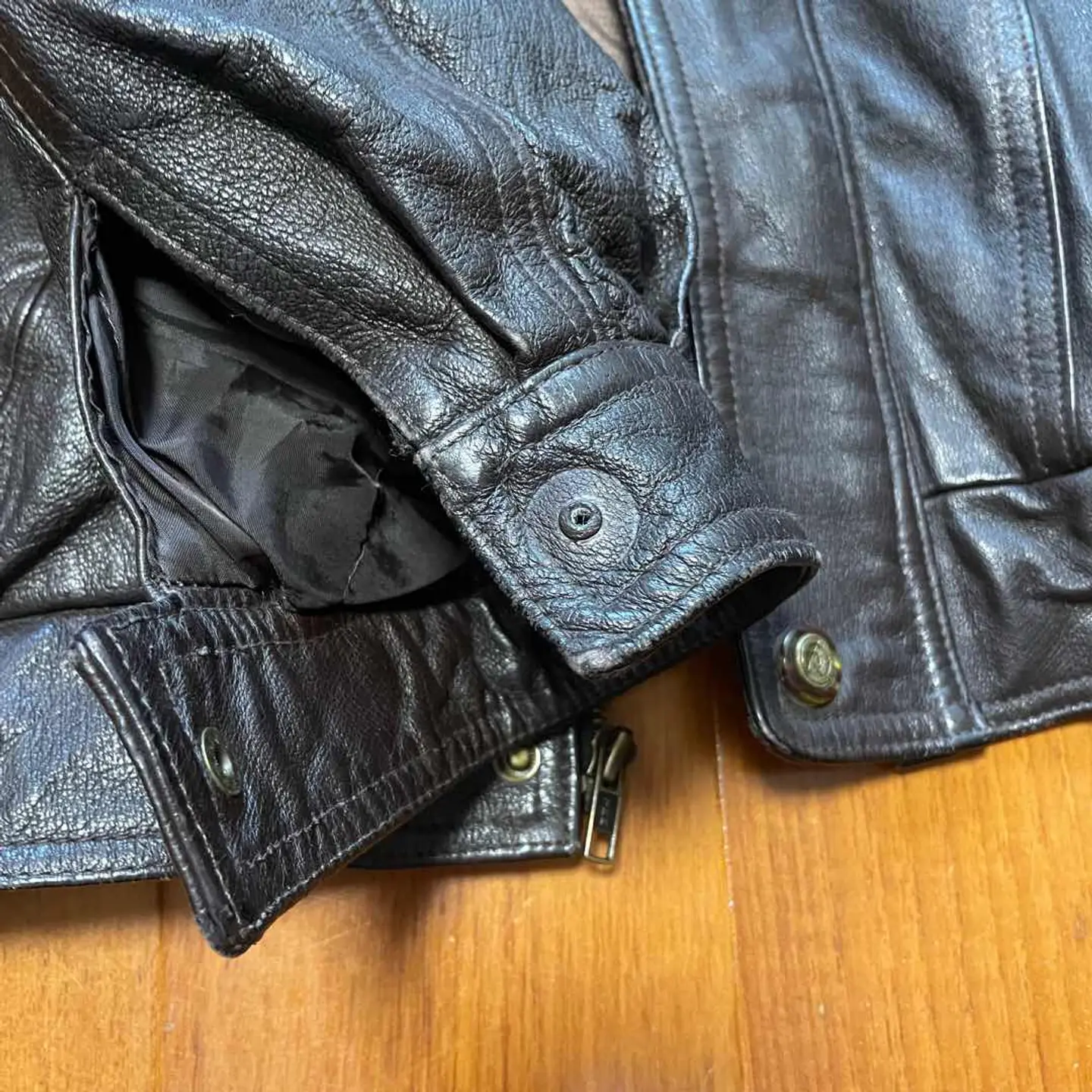 着丈65センチ 写真よりもう少しブラウンです。 右手のボタンが片方取れています。