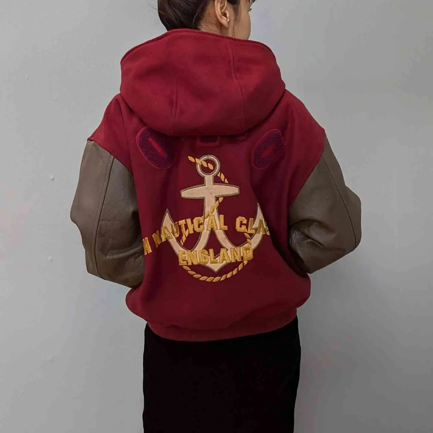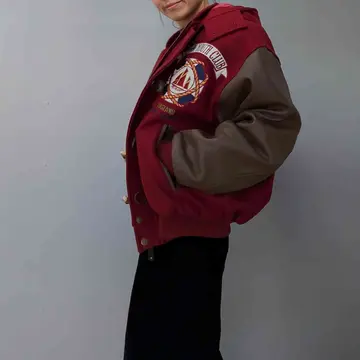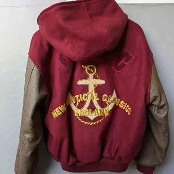 フロントとバッグデザインの大きなワッペンがかっこいいStadiumJanper。表面はしっかりとしたウールとアーム部分は上品なレザーの組み合わせが魅力的。シンプルながらも存在感があり、オーバーサイズなシルエットがカジュアルからきれいめなコーデまでかっこよく仕上がります。 フードは取り外し可能なので、外してフード付きのスウェットとあわせたり、様々なコーデを楽しめます。 モデル身長/160cm 【素材】表面ウール90%ナイロン10% アーム牛革 【Size】着丈/62cm、身幅/62cm、裄丈/77cm 【コメント】 こちらは1点物となります。気になる点がございましたらお気軽にお問い合わせください。基本的に返品交換はおこなっておりません。