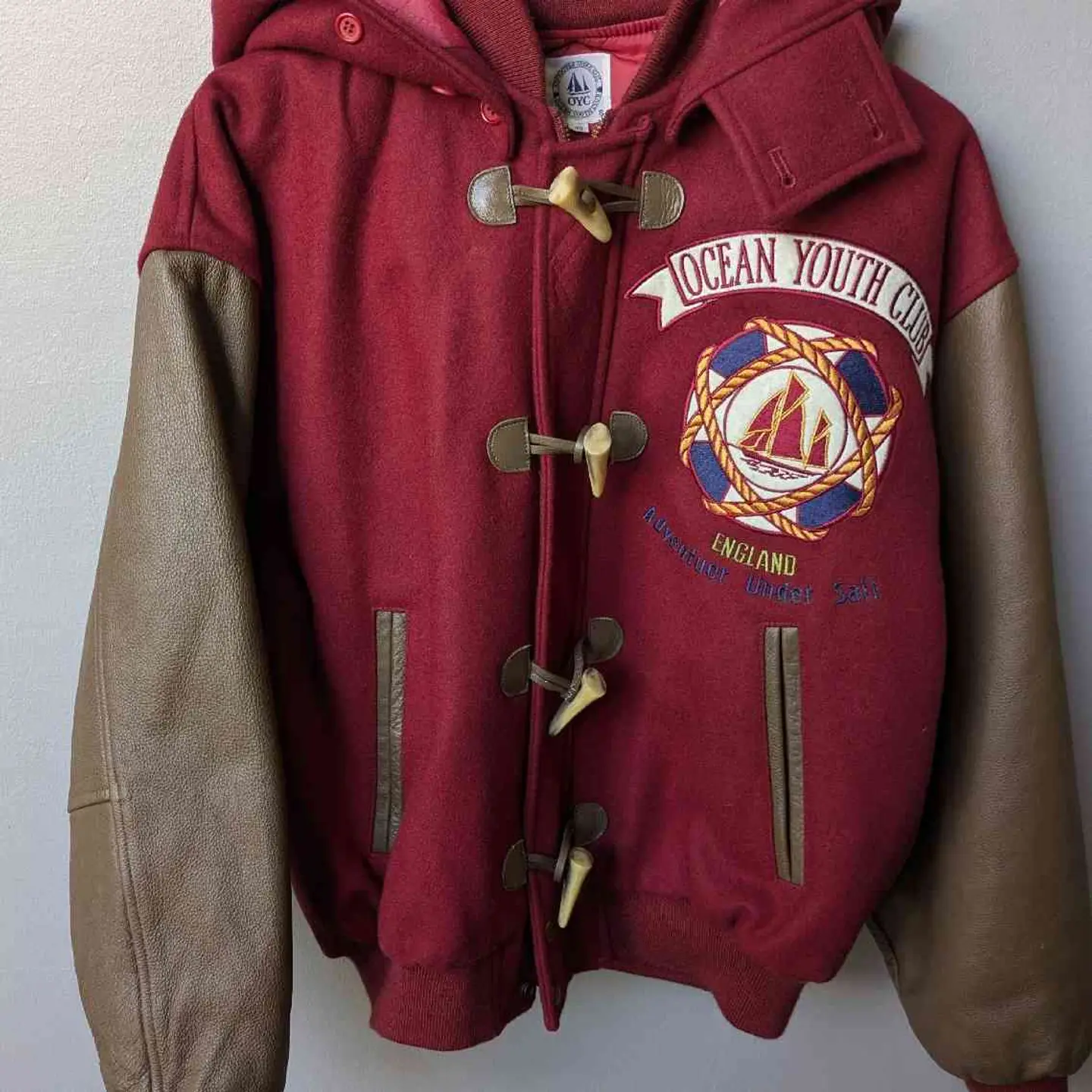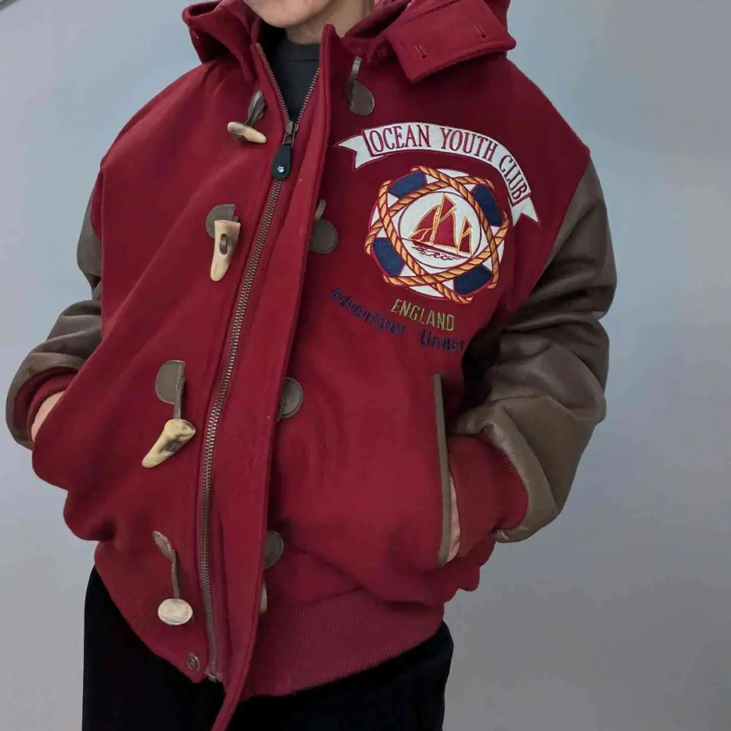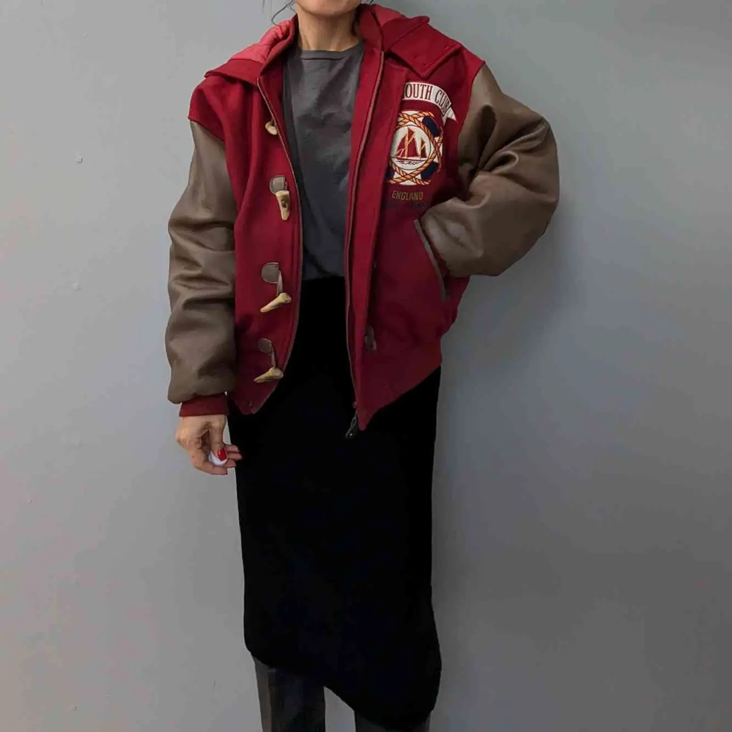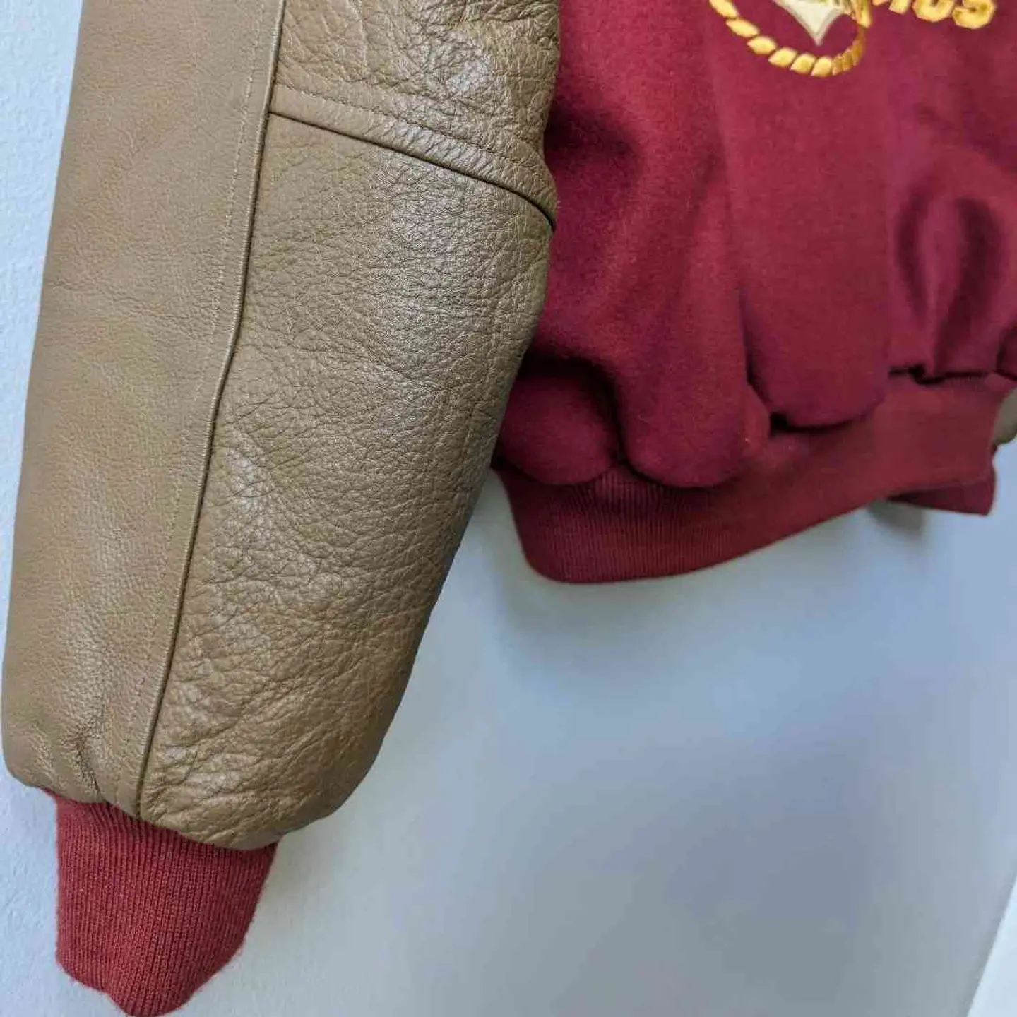 Wool×leather Patch Stadium jumper