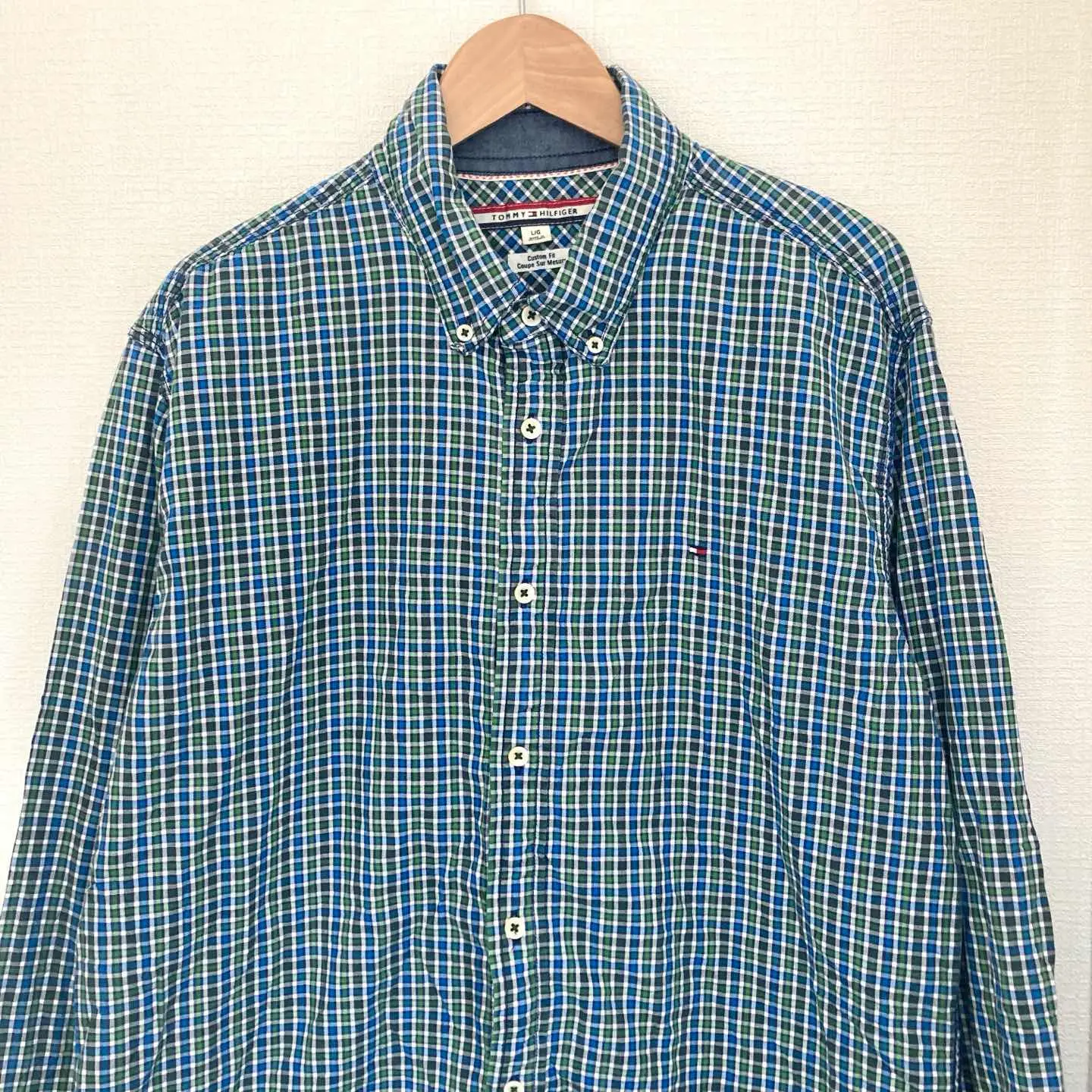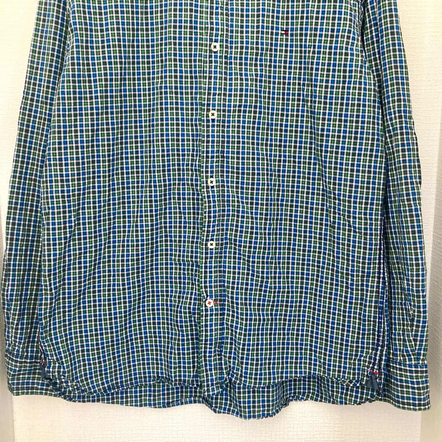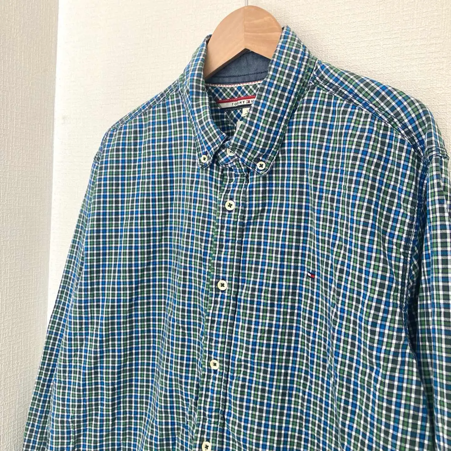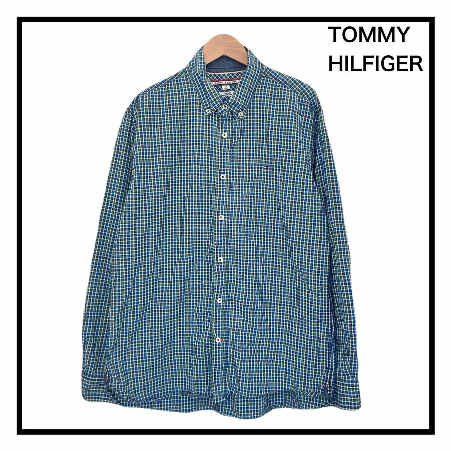ブランド TOMMY HILFIGER 商品名 TOMMY HILFIGER チェックシャツ 長袖 メンズ ダウンボタン L サイズ Lサイズ 肩幅48㎝ 身幅56㎝ 袖丈64㎝ 着丈前70㎝ 後78㎝ カラー ブルー×グリーン系 #ABY280 #ふくしるべのシャツ