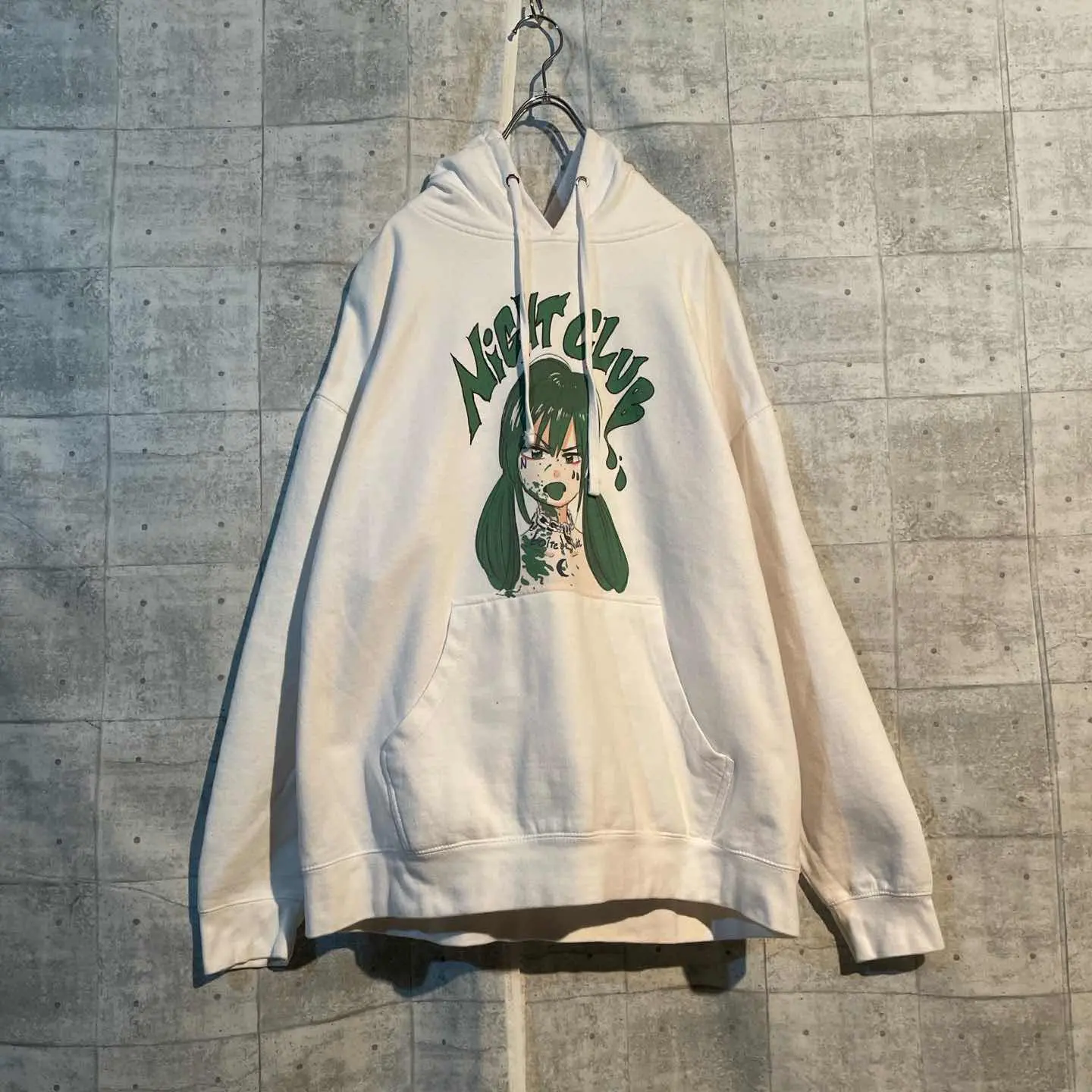 【アイテム説明】 JUN INAGAWA(ジュンイナガワ)のグラフィックパーカー。 フロントには独特のタッチで描かれた少女イラストと、「NIGHT CLUB」のロゴが大胆にプリントされた、ブランドらしいカルチャー性あふれる一着です。 アニメカルチャーとストリートファッションを掛け合わせたJUN INAGAWAらしいデザインで、アートピースのような存在感。 ゆったりとしたシルエットに厚手の生地感で、ルーズに着こなしても形が崩れにくいバランス感も魅力です。 1枚で主役になるインパクトと、どこか退廃的なムードを併せ持つ一着。 モード、ストリート、Y2Kスタイルなど、ジャンルを越えて楽しめるアイテムです。 サイズフリー 着丈約64 袖丈約51 身幅約66 肩幅約65
