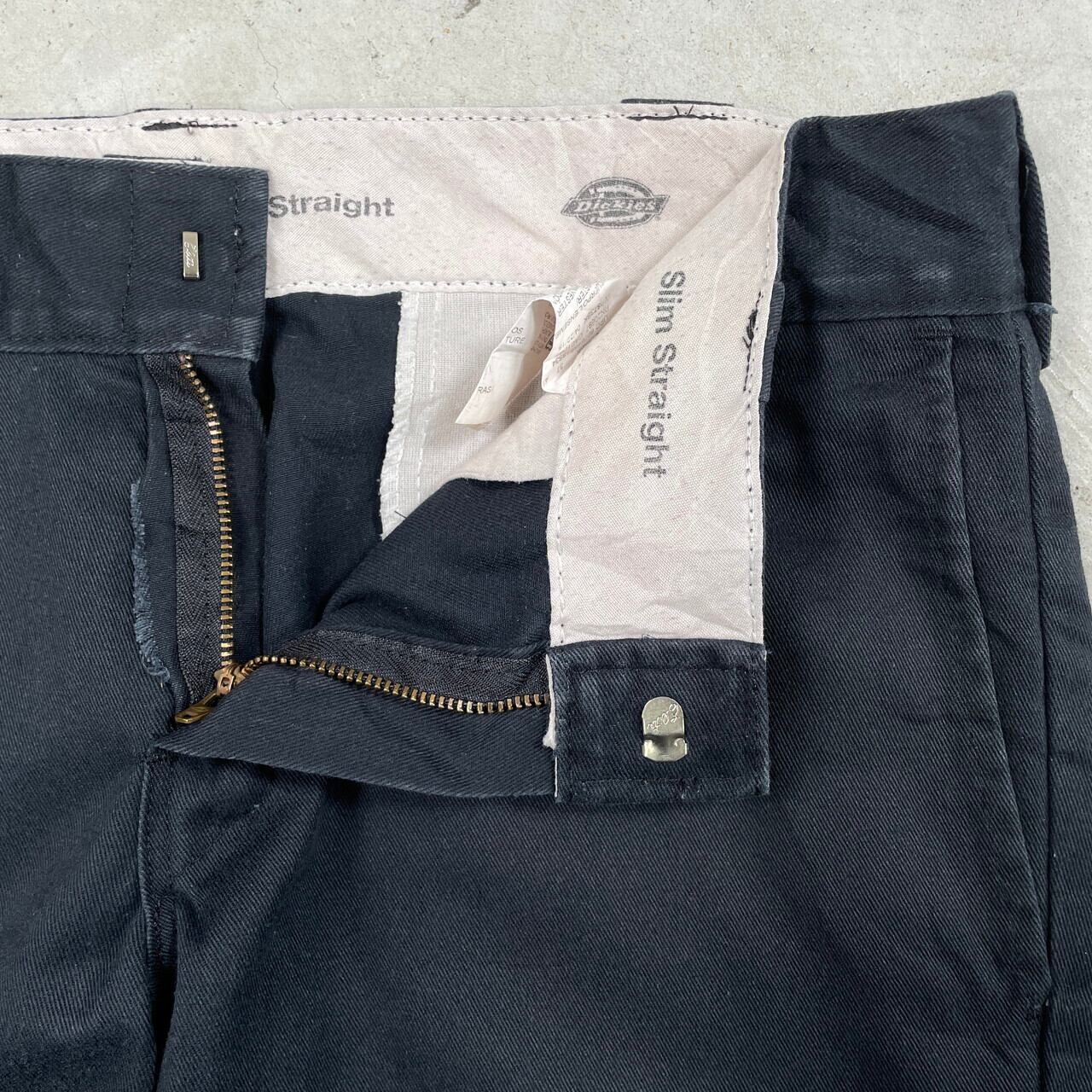 ■ Dickies ディッキーズ ワークパンツ Slim Straight メンズW32 古着 アメカジ ヴィンテージ VINTAGE 黒色【ワークパンツ】/ブラック 【ブランド】Dickies ディッキーズ 【サイズ】表記 W32 L30 ※計測値をご確認ください。 ウエスト(平置き×2)…85 ワタリ幅…30.5 股上…23.5 股下…73.5 裾幅…21 【生産国】ホンジュラス製 【素材】ポリエステル65%、コットン35% 【状態】全体的に使用感による色あせや擦れがございます。 画像にてご確認ください。 【c241210207】 ※古着は洗濯、検品などのケアを行っております。(新品・デッドストックは洗濯していません。) ※モニターの発色により実物と異なる場合がございます。予めご了承ください。 ※ 海外直輸入USED品になります。