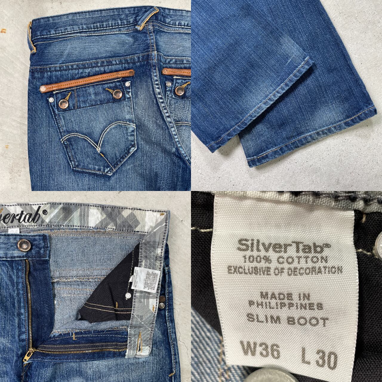 ■Levi's SILVERTAB リーバイス シルバータブ フレアデニムパンツ SLIM BOOT メンズW36 古着 Y2K アメカジ ジーンズ ブーツカット 加工デニム ワイドデニム ルーズデニム 【デニムパンツ】/ブルー ◎同じくシルバータブの別モデルLOOSEに近い太さで 裾に程よくフレアがかかった"SLIM BOOT" ストレートよりもさらにルーズ感が出て Aラインなスタイルにハマるシルエットです 【ブランド】Levi's リーバイス 【サイズ】表記 W36 L30 ※計測値をご確認ください。 ウエスト(平置き×2)…95 ワタリ幅…34 股上…28.5 股下...77.5 裾幅…25.5 【生産国】フィリピン製 【素材】コットン100% 【状態】バック革パッチした付近に擦れ等多少の使用感はございますが、 目立った汚れやダメージ等は無くまだまだ長く愛用していただけます。 画像にてご確認ください。 【c241209009】 ※古着は洗濯、検品などのケアを行っております。(新品・デッドストックは洗濯していません。) ※モニターの発色により実物と異なる場合がございます。予めご了承ください。 ※ 海外直輸入USED品になります。