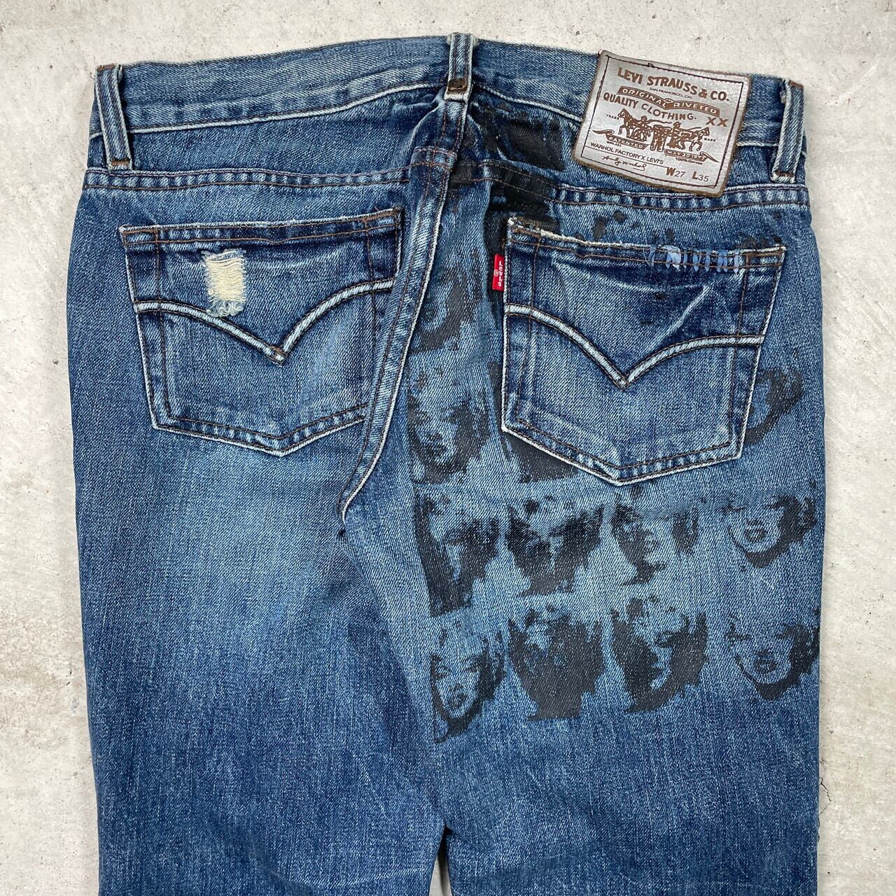 ■Levi's×Andy Warhol リーバイス アンディー・ウォーホル カスタムフレアデニムパンツ レディースW27 古着 アメカジ ジーンズ Y2K ローライズ 加工デニム ポップアート モナリザ マリリンモンロー 【デニムパンツ】/ブルー 【ブランド】Levi's リーバイス 【サイズ】表記 W27 ※計測値をご確認ください。 ウエスト(平置き×2)…78 ワタリ幅…27.5 股上…18 股下…88 裾幅…22.5 【生産国】USA製 【素材】コットン100% 【状態】多少の使用感はございますが、 目立った汚れやダメージ等は無くまだまだ長く愛用していただけます。 画像にてご確認ください。 【c241206023】 ※古着は洗濯、検品などのケアを行っております。(新品・デッドストックは洗濯していません。) ※モニターの発色により実物と異なる場合がございます。予めご了承ください。 ※ 海外直輸入USED品になります。