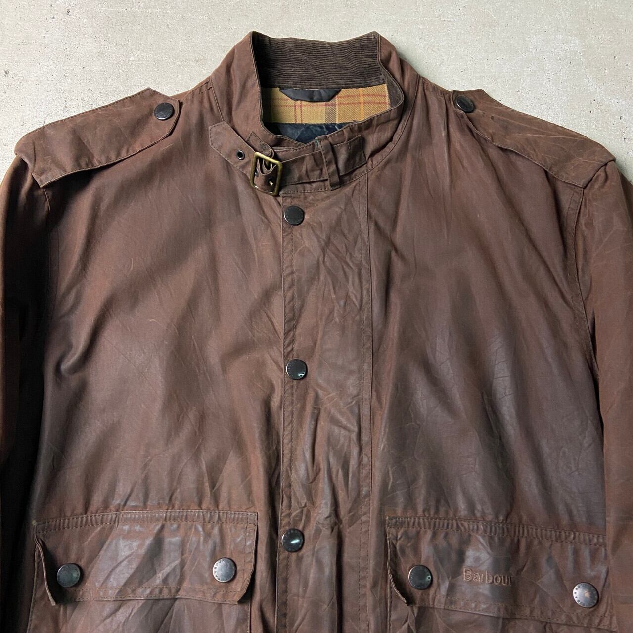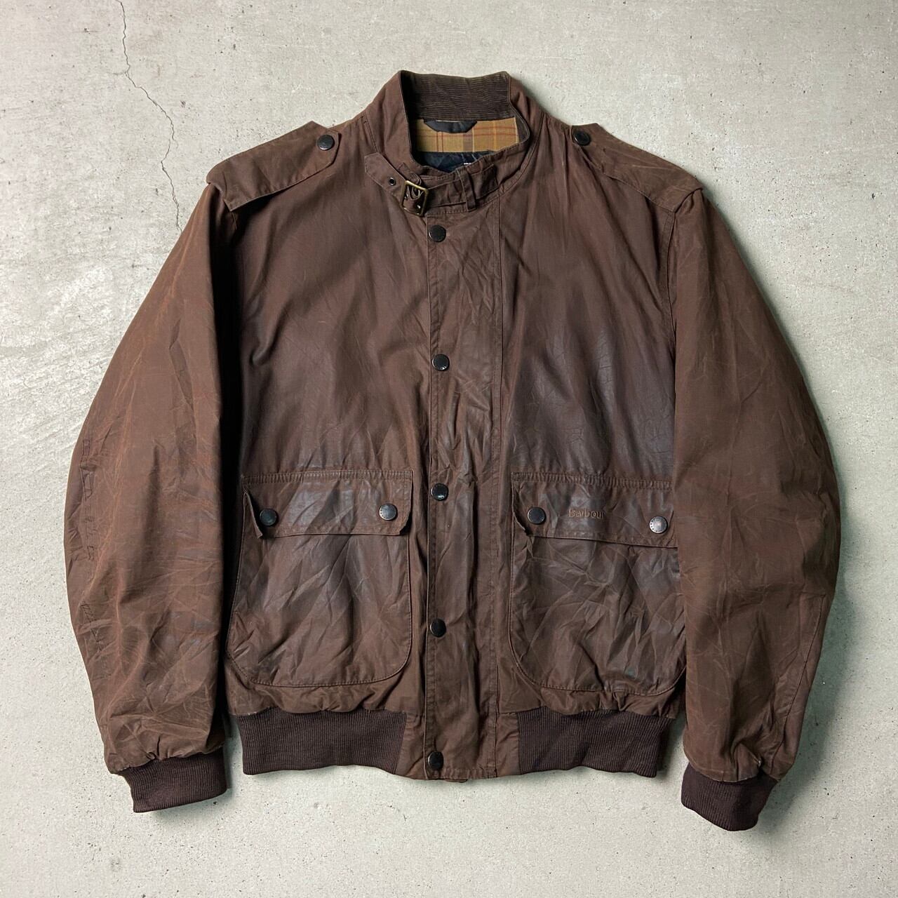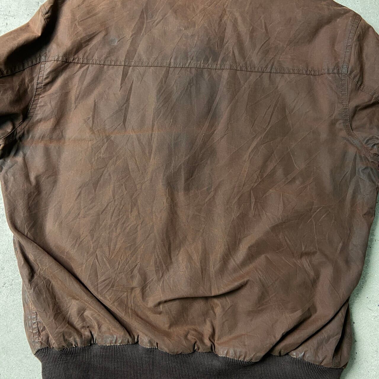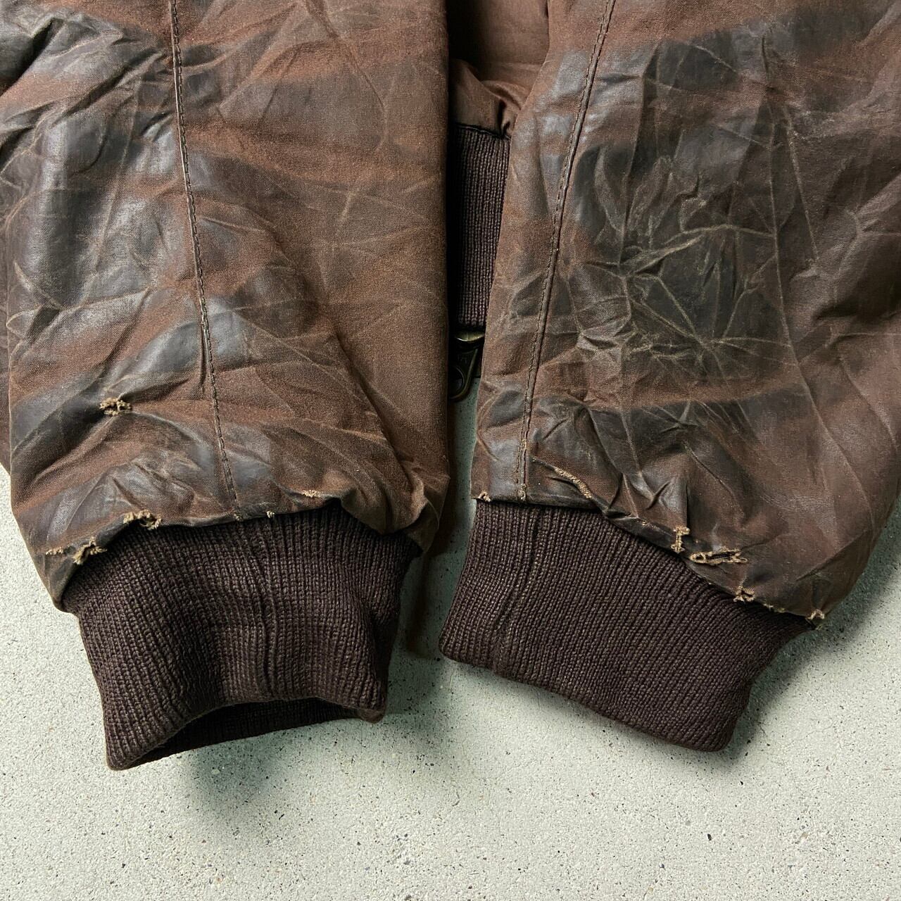 ■02年製 英国製 Barbour FLYER JACKET バブアー フライヤージャケット オイルドジャケット メンズL 古着 00s Y2K フライトジャケット ヴィンテージ VINTAGE ブラウン 茶色【ワークジャケット】/ブラウン 【ブランド】 Barbour バブアー 【サイズ】 表記 LARGE ※計測値をご確認ください。 着丈…69 身幅…63 肩幅…52.5 袖丈...64 【生産国】英国製 【素材】ワックスコットン100% 【状態】オイルが残っております。 袖にダメージが御座います。 また全体的に擦れやオイルの変色が御座います。 画像にてご確認ください。 【c241129154】 ※古着は洗濯、検品などのケアを行っております。(新品・デッドストックは洗濯していません。) ※モニターの発色により実物と異なる場合がございます。予めご了承ください。 ※ 海外直輸入USED品になります。