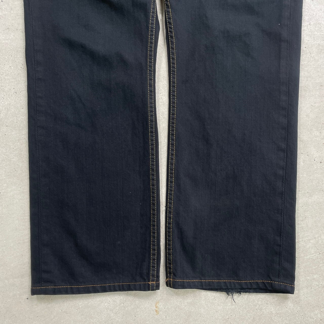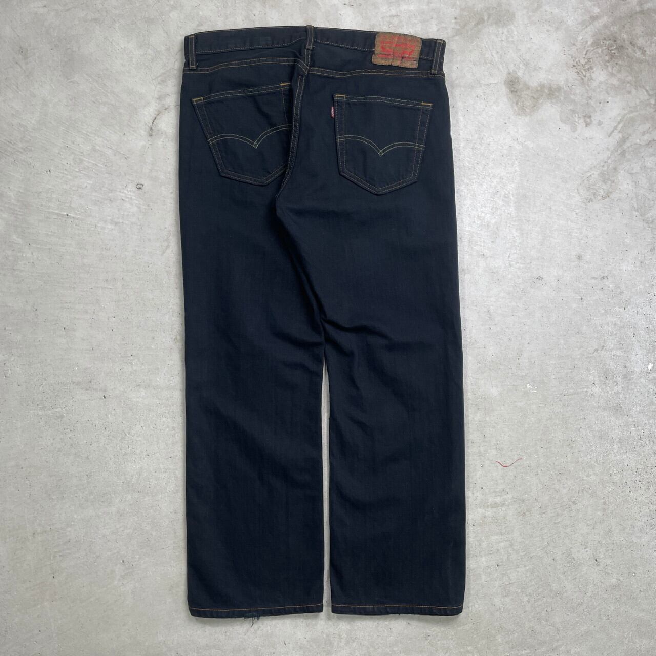 ■ Levi's リーバイス 559 ブラックデニムパンツ リラックスストレート 後染め メンズW34 古着 アメカジ ジーンズ ワイドデニム 黒色【デニムパンツ】/ブラック ◎シルバータブのLOOSEに近い 程よくバギーした太ストレートシルエット 価格的にシルバータブよりも買いやすく、 緩く履けるデニムをお探しの方にピッタリのモデル こちらはブラックに後染めを施しており、 古着で探すとなかなか無い太く履けるブラックデニムにカスタムしました 染まらずにに浮かび上がったステッチもポイントです 【ブランド】Levi's リーバイス 【サイズ】表記 W34 L30(実寸約L27) ※裾上げされています ※計測値をご確認ください。 ウエスト(平置き×2)…86 ワタリ幅…33 股上…28 股下…68.5 裾幅…22.5 【生産国】メキシコ製 【素材】コットン100% 【状態】革パッチが一部破損しています。 裾やポケットに若干のほつれがあります。 画像にてご確認ください。 【c241128224】 ※古着は洗濯、検品などのケアを行っております。(新品・デッドストックは洗濯していません。) ※モニターの発色により実物と異なる場合がございます。予めご了承ください。 ※ 海外直輸入USED品になります。