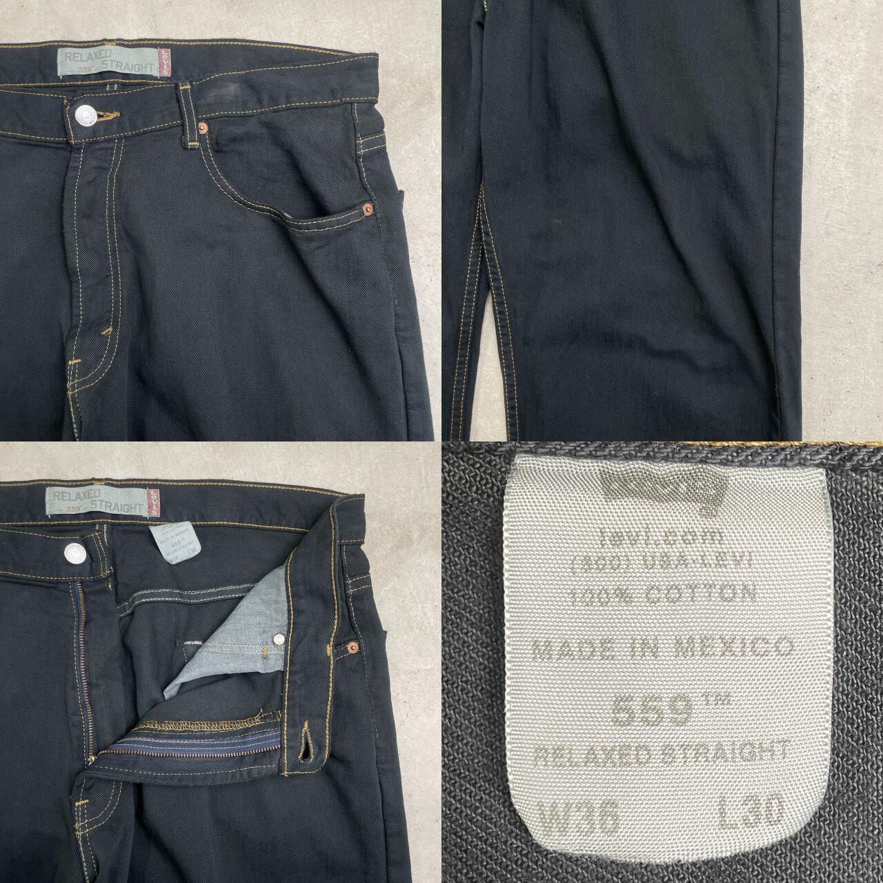 ■ 00年代 Levi's リーバイス 559 ブラックデニムパンツ リラックスストレート 後染め メンズW36 古着 00s Y2K VINTAGE ヴィンテージ アメカジ ジーンズ ワイドデニム 黒色【デニムパンツ】/ブラック ◎シルバータブのLOOSEに近い 程よくバギーした太ストレートシルエット 価格的にシルバータブよりも買いやすく、 緩く履けるデニムをお探しの方にピッタリのモデル こちらはブラックに後染めを施しており、 古着で探すとなかなか無い太く履けるブラックデニムにカスタムしました 染まらずにに浮かび上がったステッチもポイントです 【ブランド】Levi's リーバイス ボタン裏刻印:230 【サイズ】表記 W36 L30 ※計測値をご確認ください。 ウエスト(平置き×2)…90 ワタリ幅…36 股上…30.5 股下…76 裾幅…23.5 【生産国】メキシコ製 【素材】コットン100% 【状態】全体的に使用感があり、裾に擦れがございます。 画像にてご確認ください。 【c241128217】 ※古着は洗濯、検品などのケアを行っております。(新品・デッドストックは洗濯していません。) ※モニターの発色により実物と異なる場合がございます。予めご了承ください。 ※ 海外直輸入USED品になります。