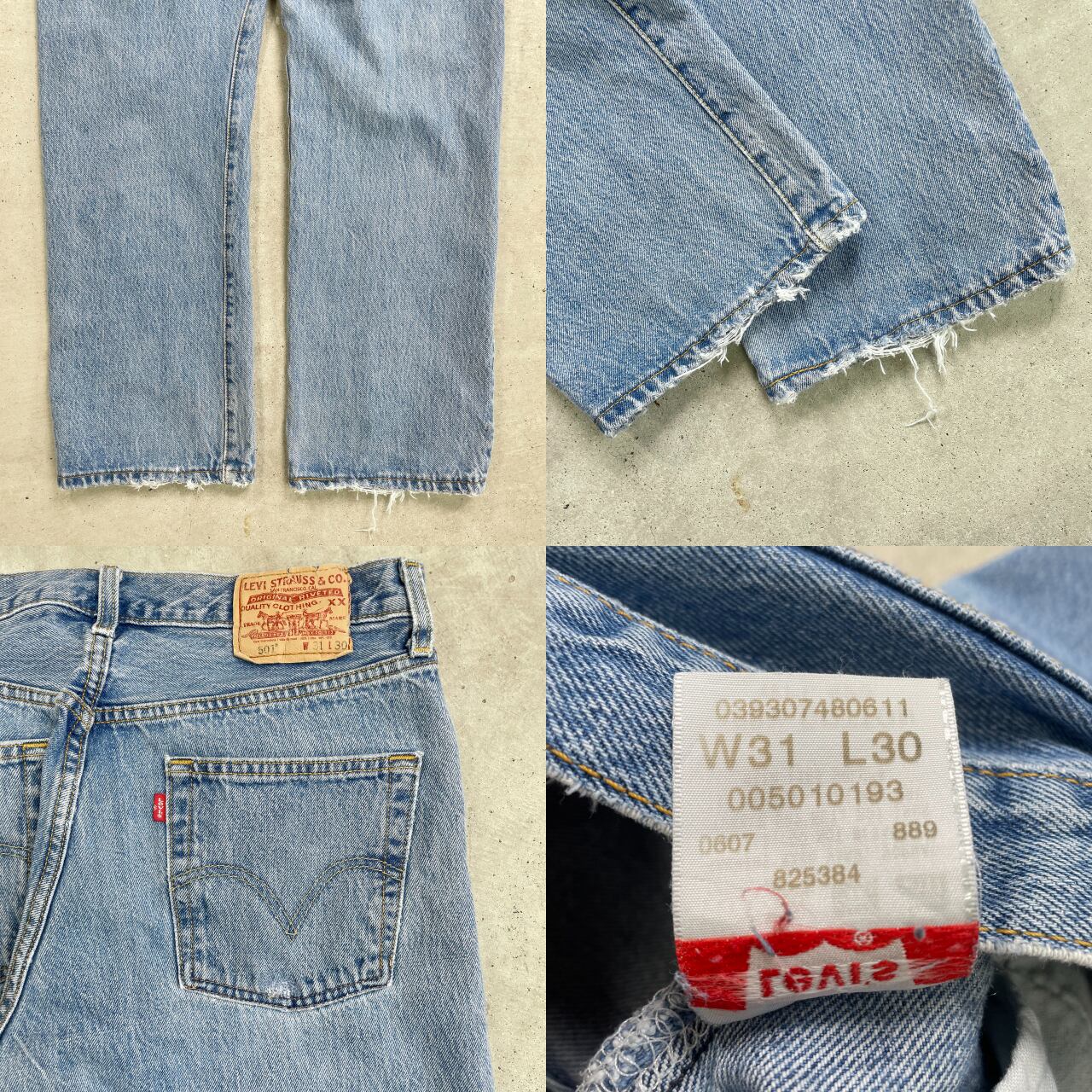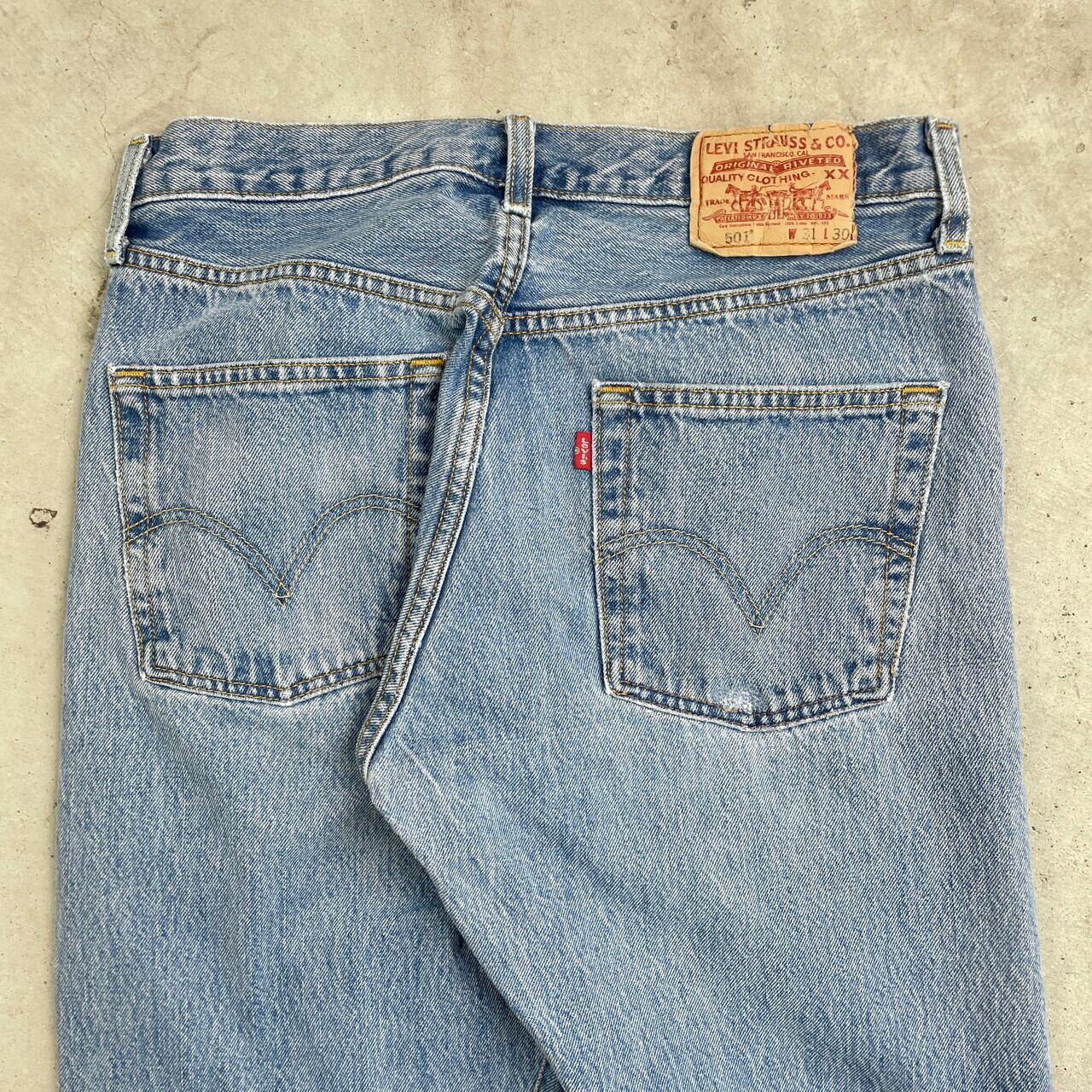 ■ 00年代 Levi's リーバイス 00501 0193 デニムパンツ ストレート メンズW31 古着 00s Y2K VINTAGE ヴィンテージ アメカジ ジーンズ 青色【デニムパンツ】/ブルー 【ブランド】Levi's リーバイス 【サイズ】表記 W31 L30 ※計測値をご確認ください。 ウエスト(平置き×2)…78 ワタリ幅…31 股上…27 股下…74.5 裾幅…20.5 【生産国】エジプト製 【素材】コットン100% 【状態】全体的に使用感による色褪せや擦れがございます。 フロントポケット、ジップ付近や裾にほつれがあります。 またバックポケット、裾部分にリペア跡があります。 画像にてご確認ください。 【c241128209】 ※古着は洗濯、検品などのケアを行っております。(新品・デッドストックは洗濯していません。) ※モニターの発色により実物と異なる場合がございます。予めご了承ください。 ※ 海外直輸入USED品になります。